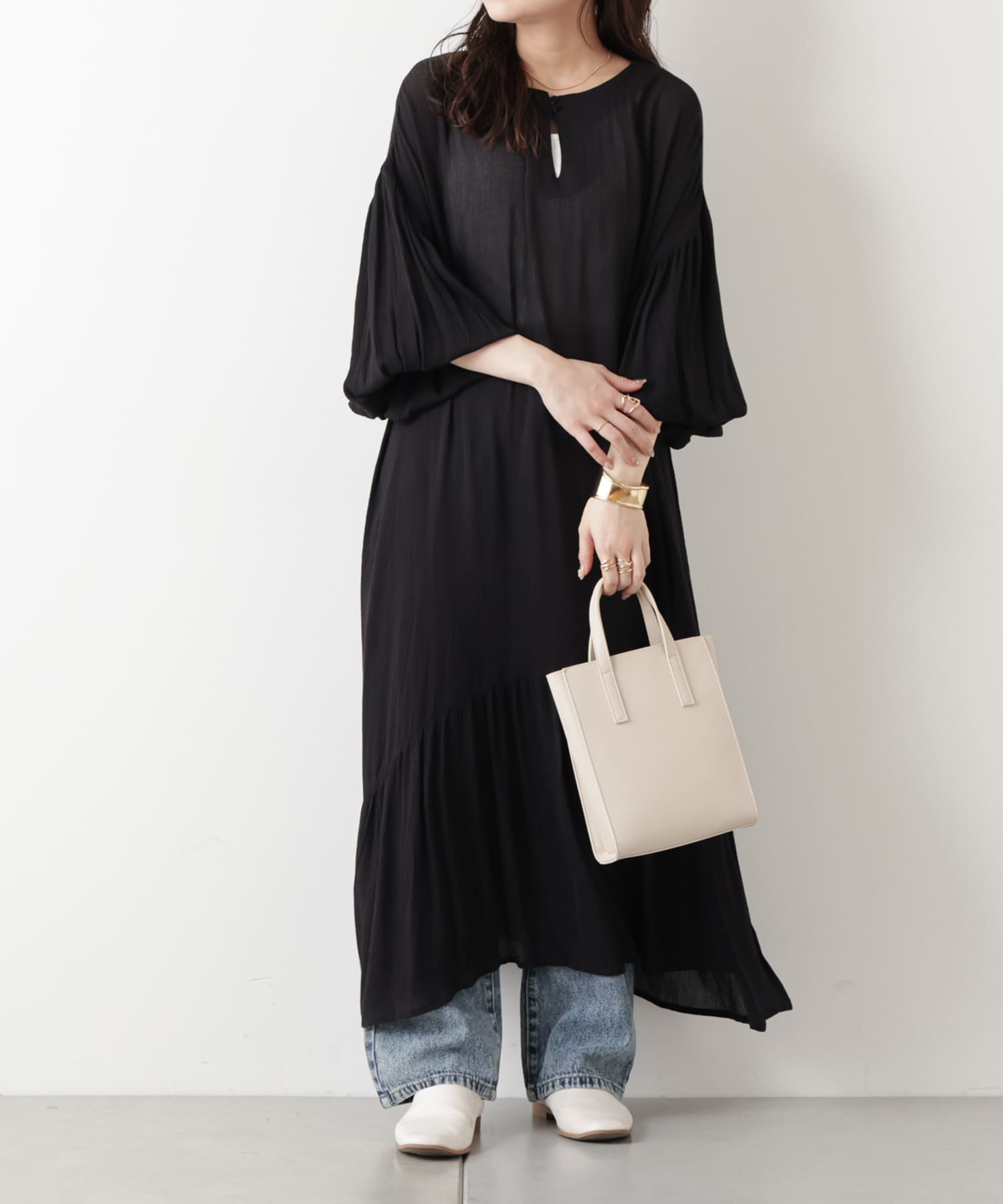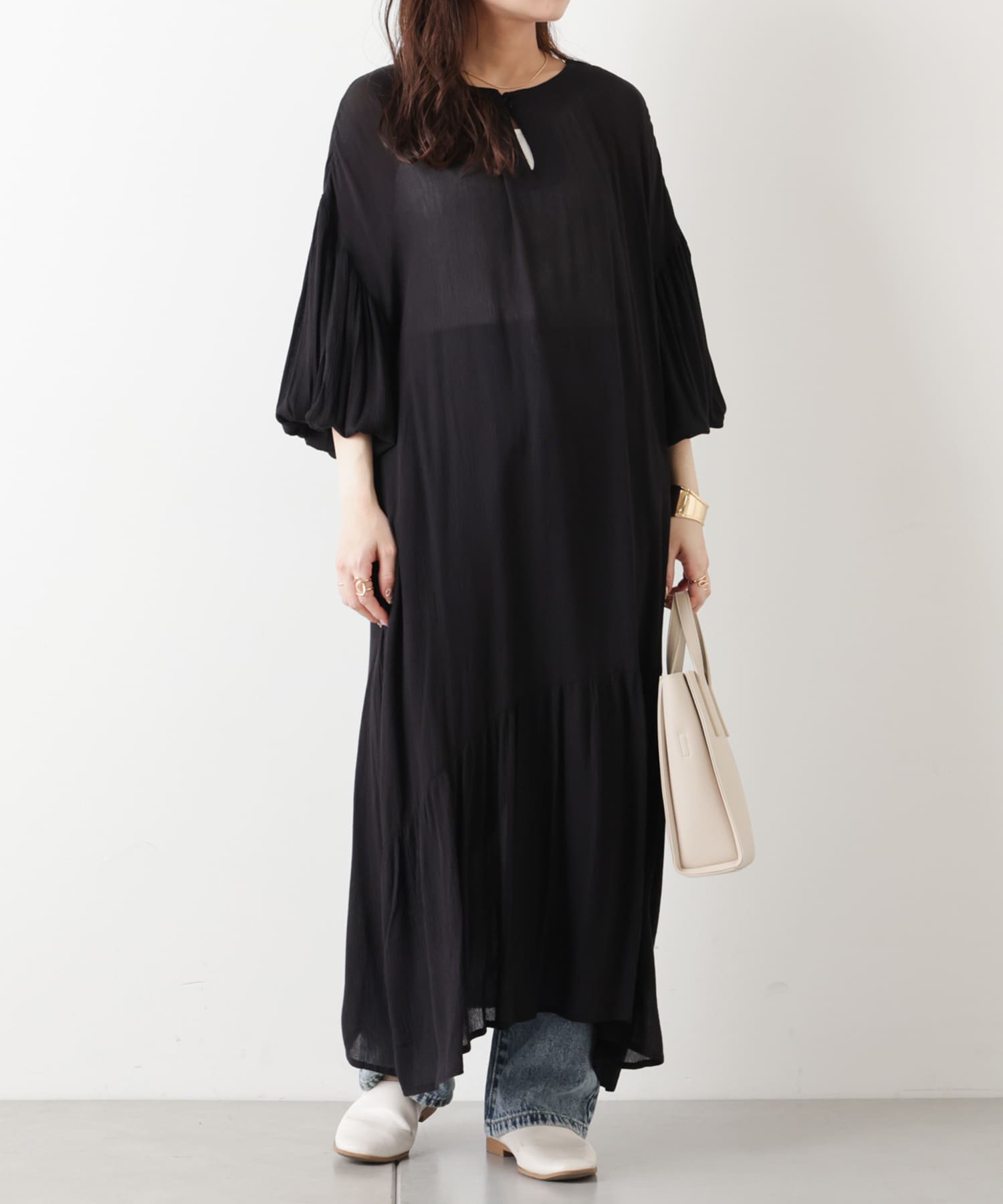 ・透け感がある生地なのでデニム合わせでカジュアルにまとめたスタイリングがおすすめ!