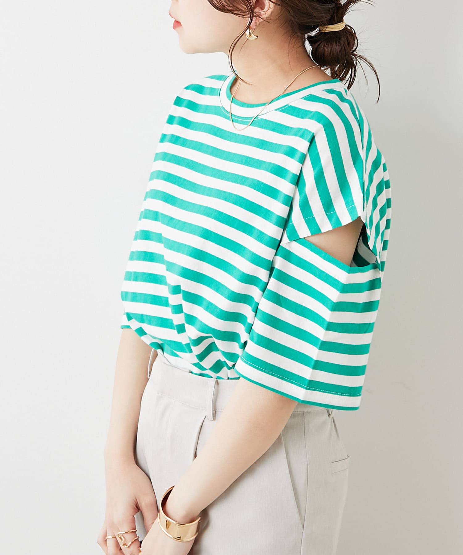 ・袖の切れ込みからさりげなく肌が見え、トレンドライクに!