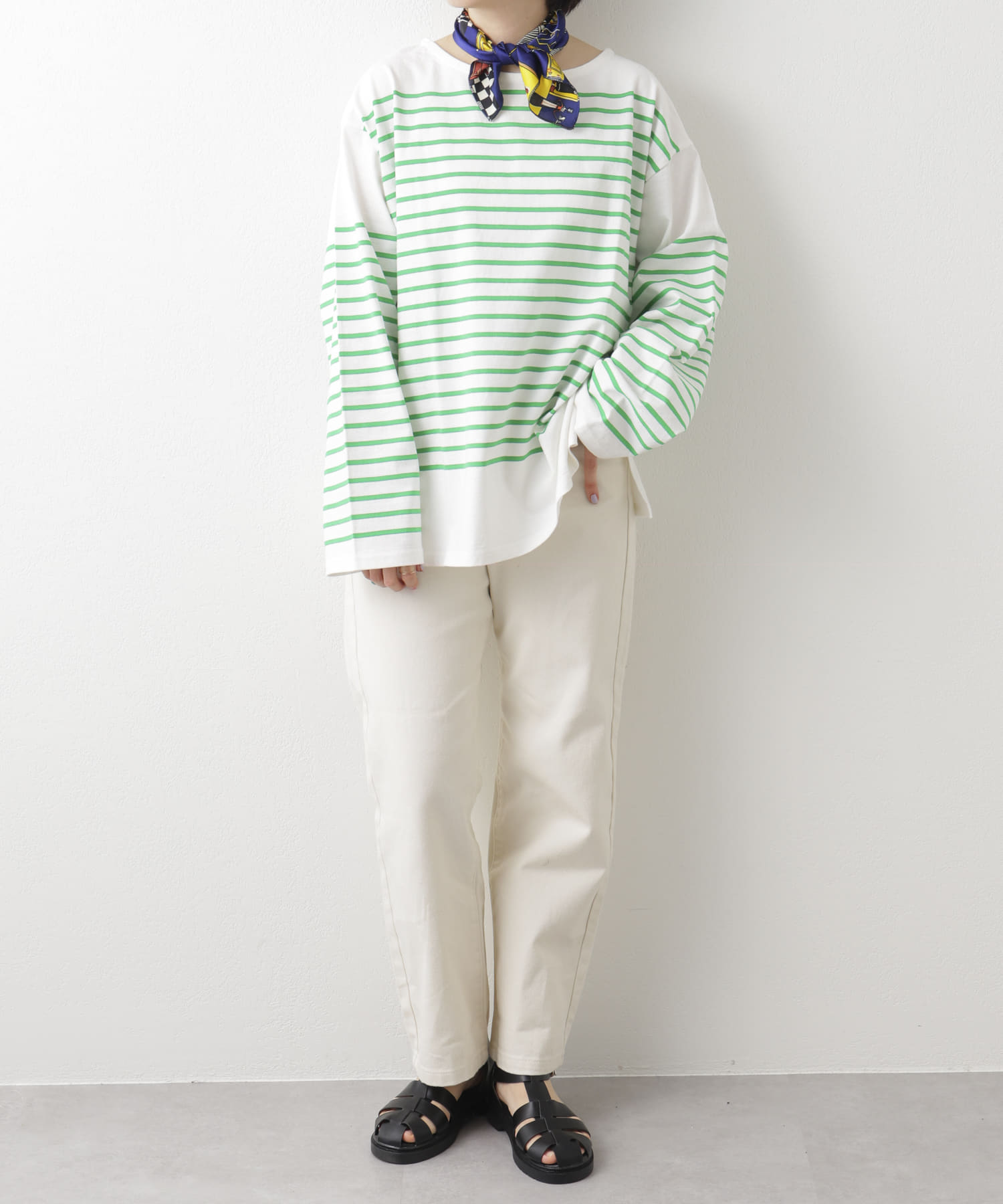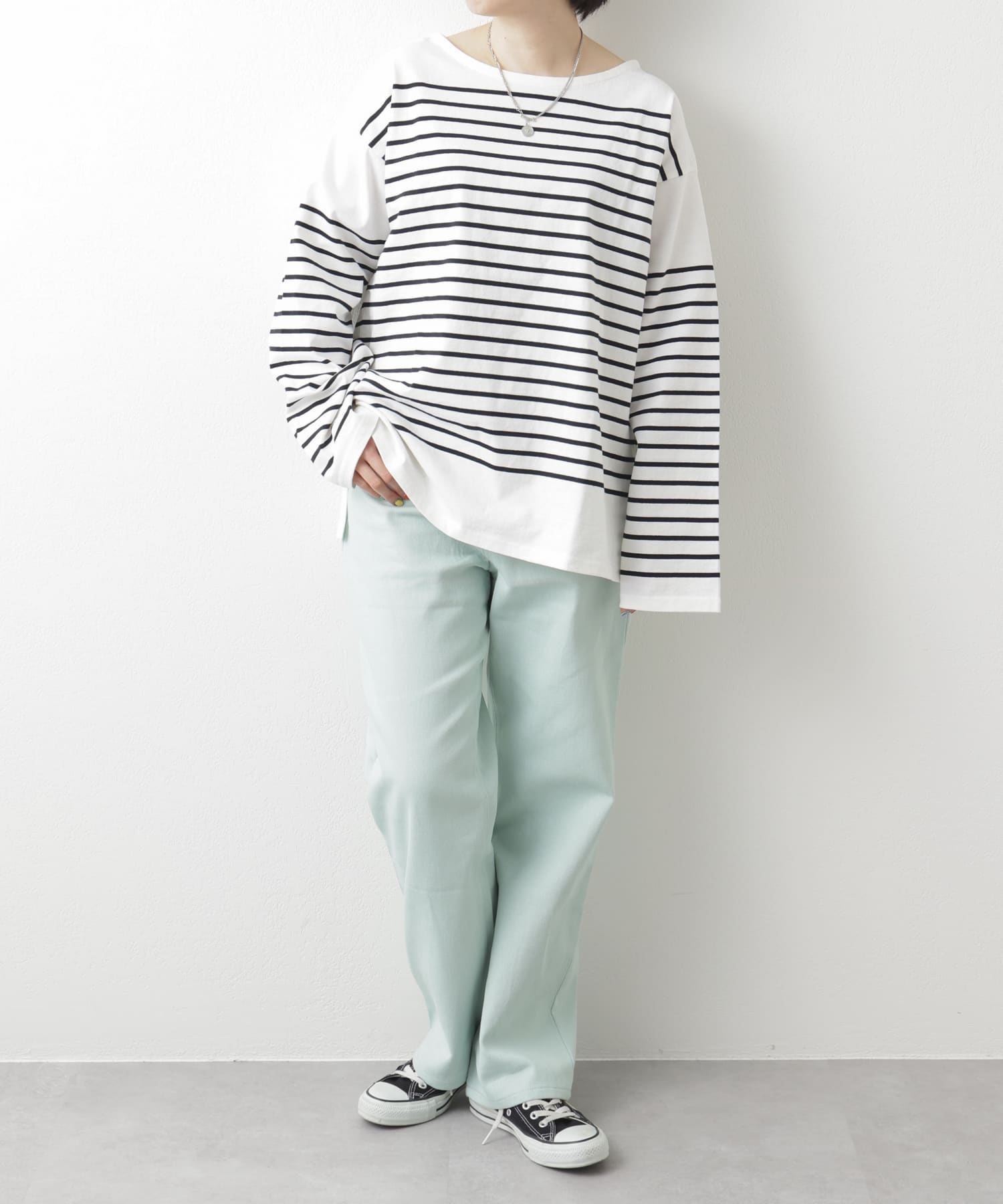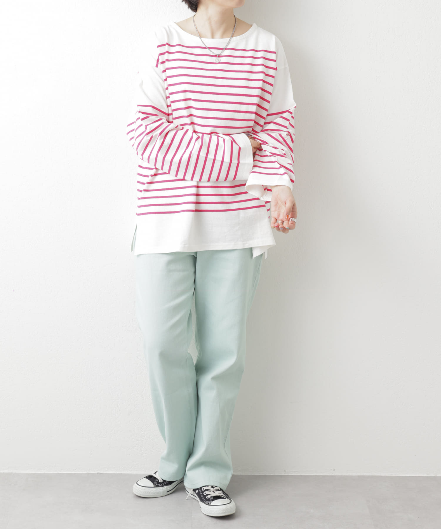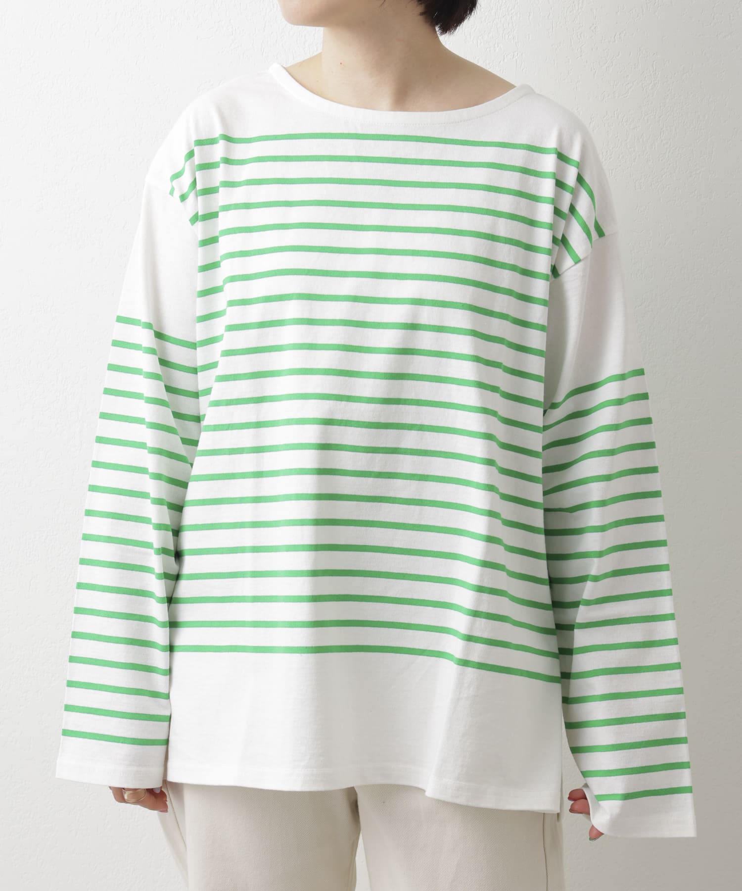 ビックシルエットのボーダーロンT。
