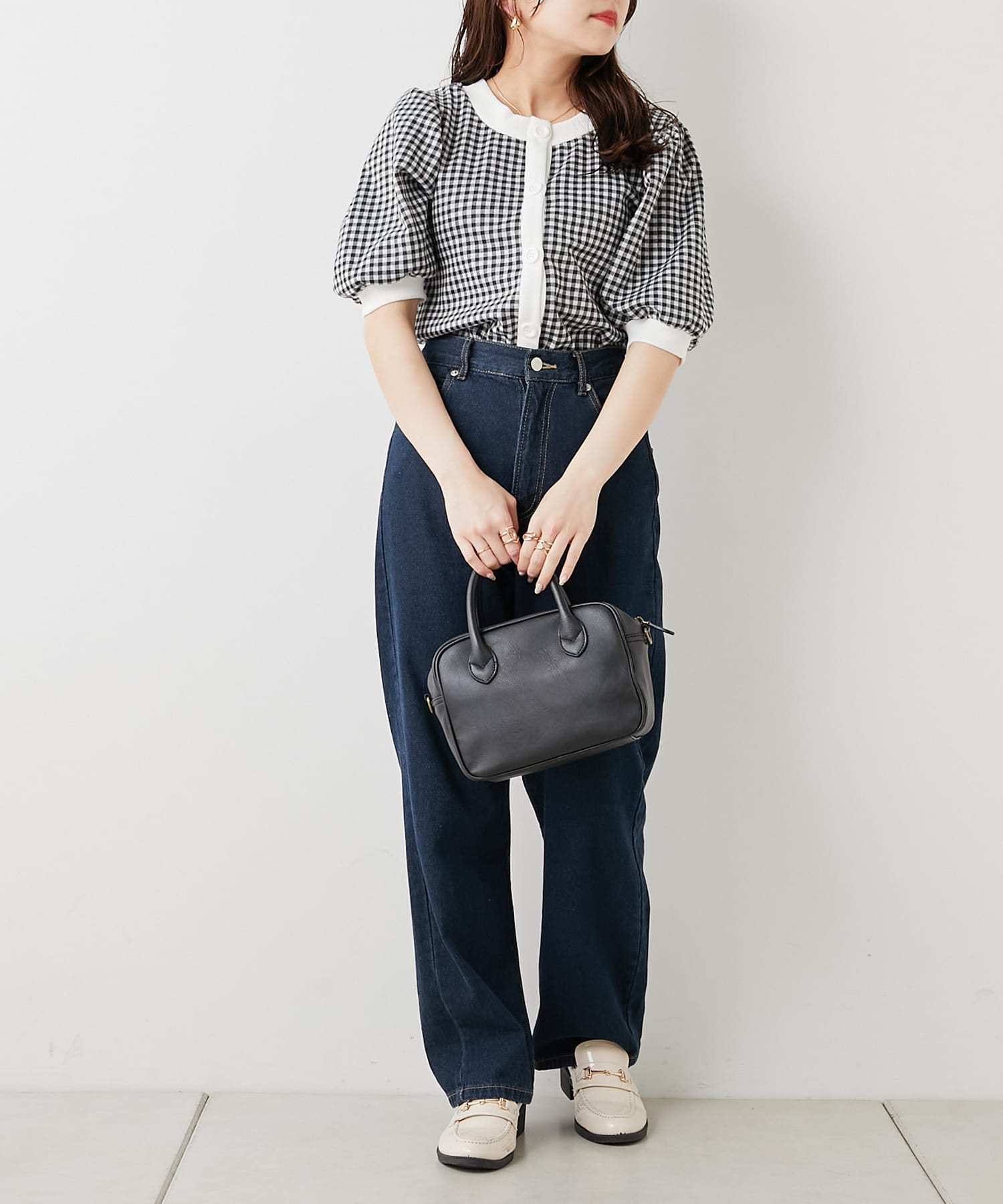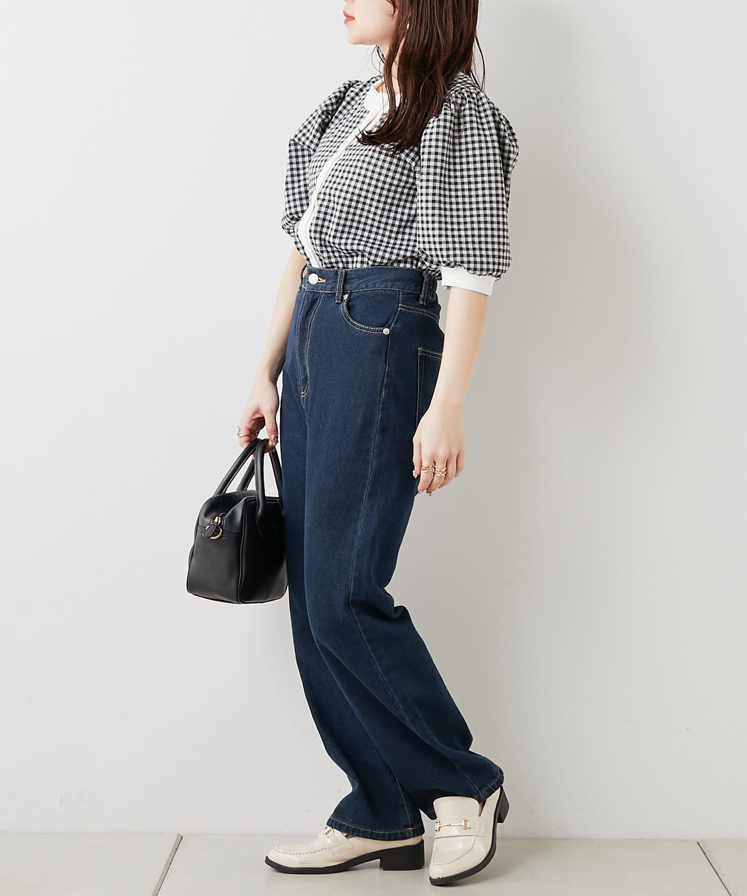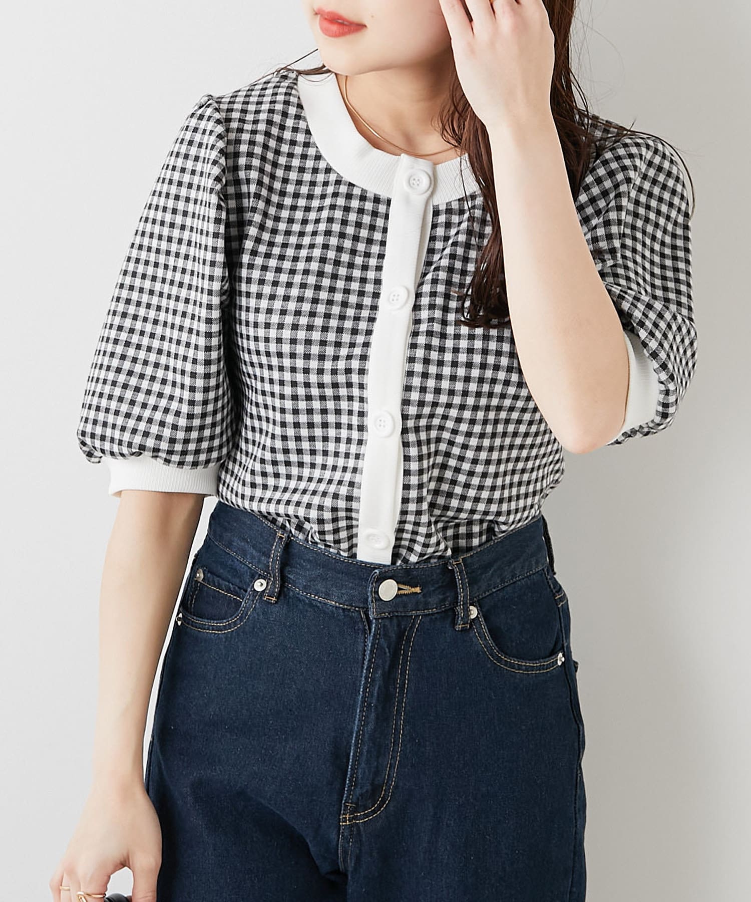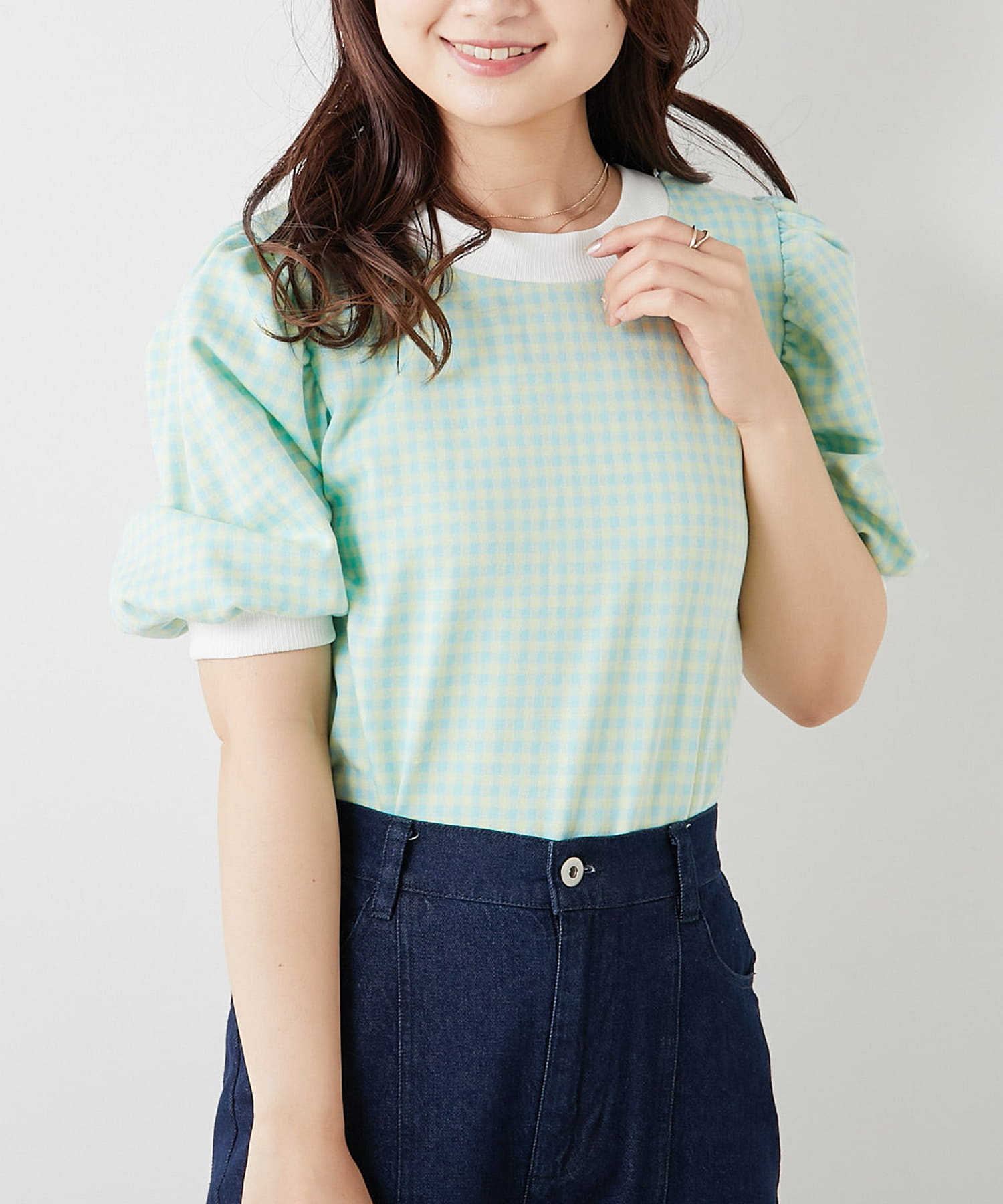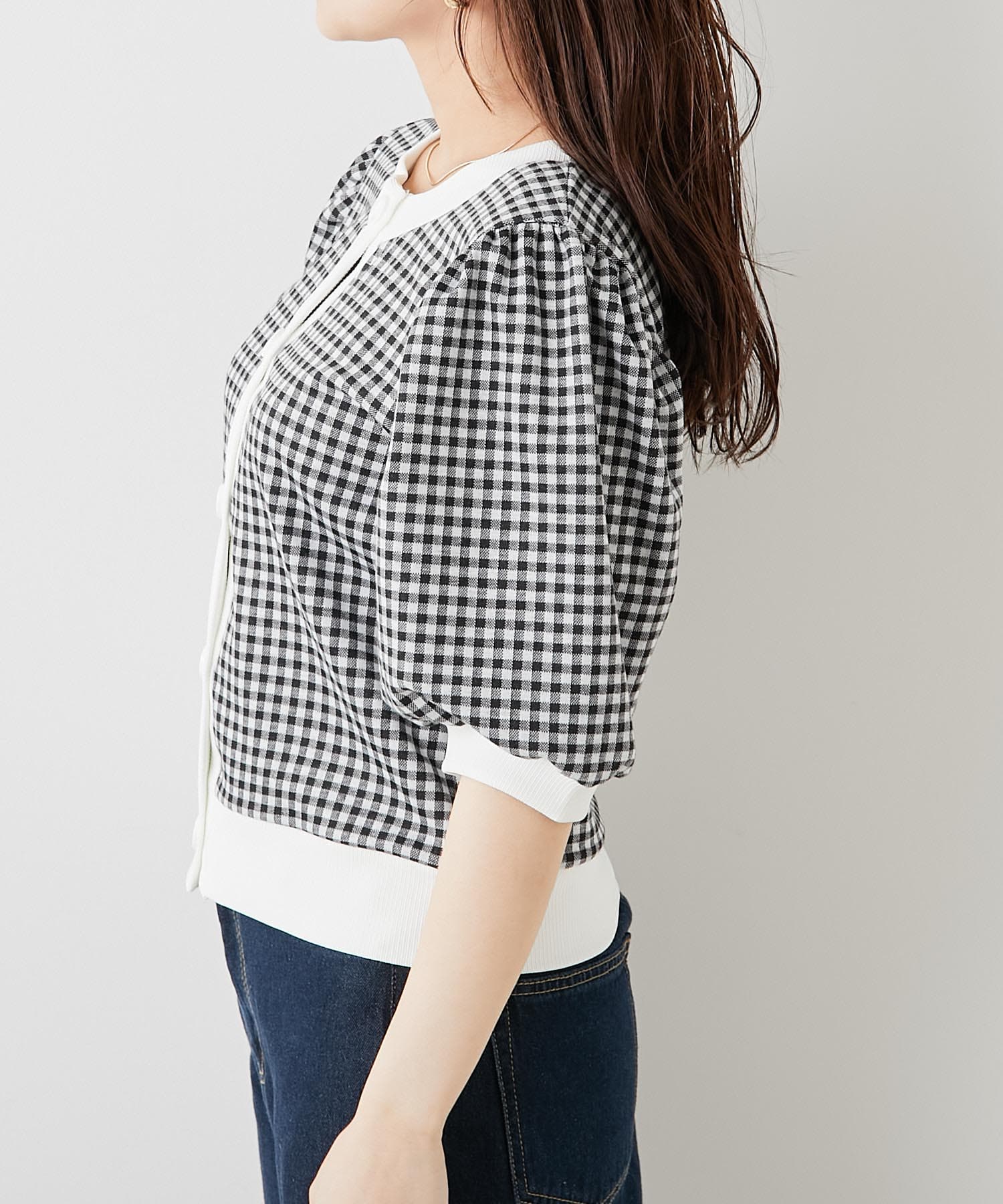 ・フェミニンなギンガムチェックなのでデニム合わせでも女性らしいコーディネートに仕上がります。