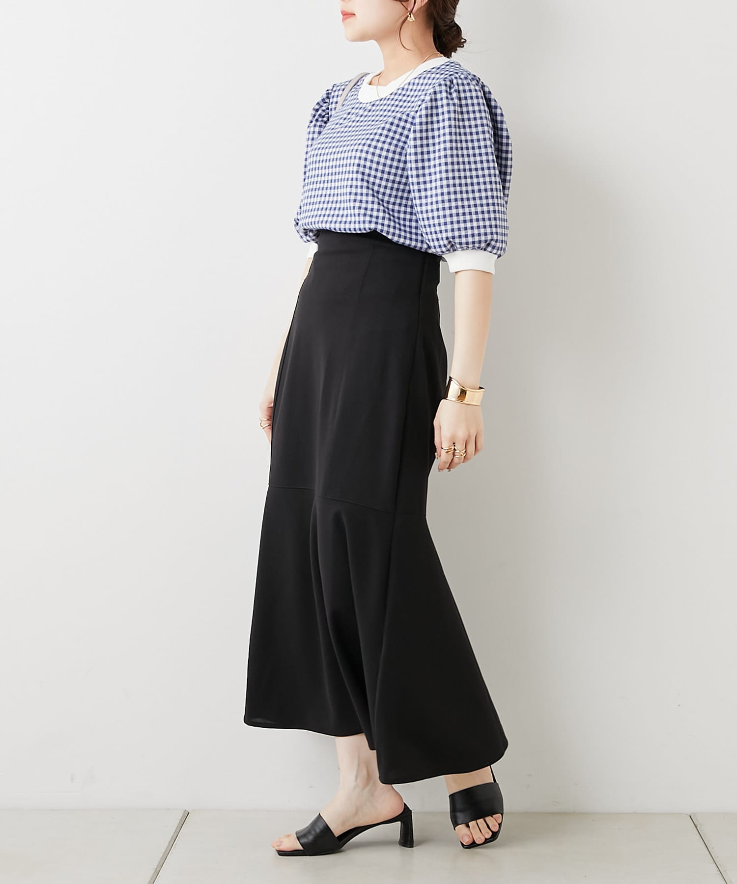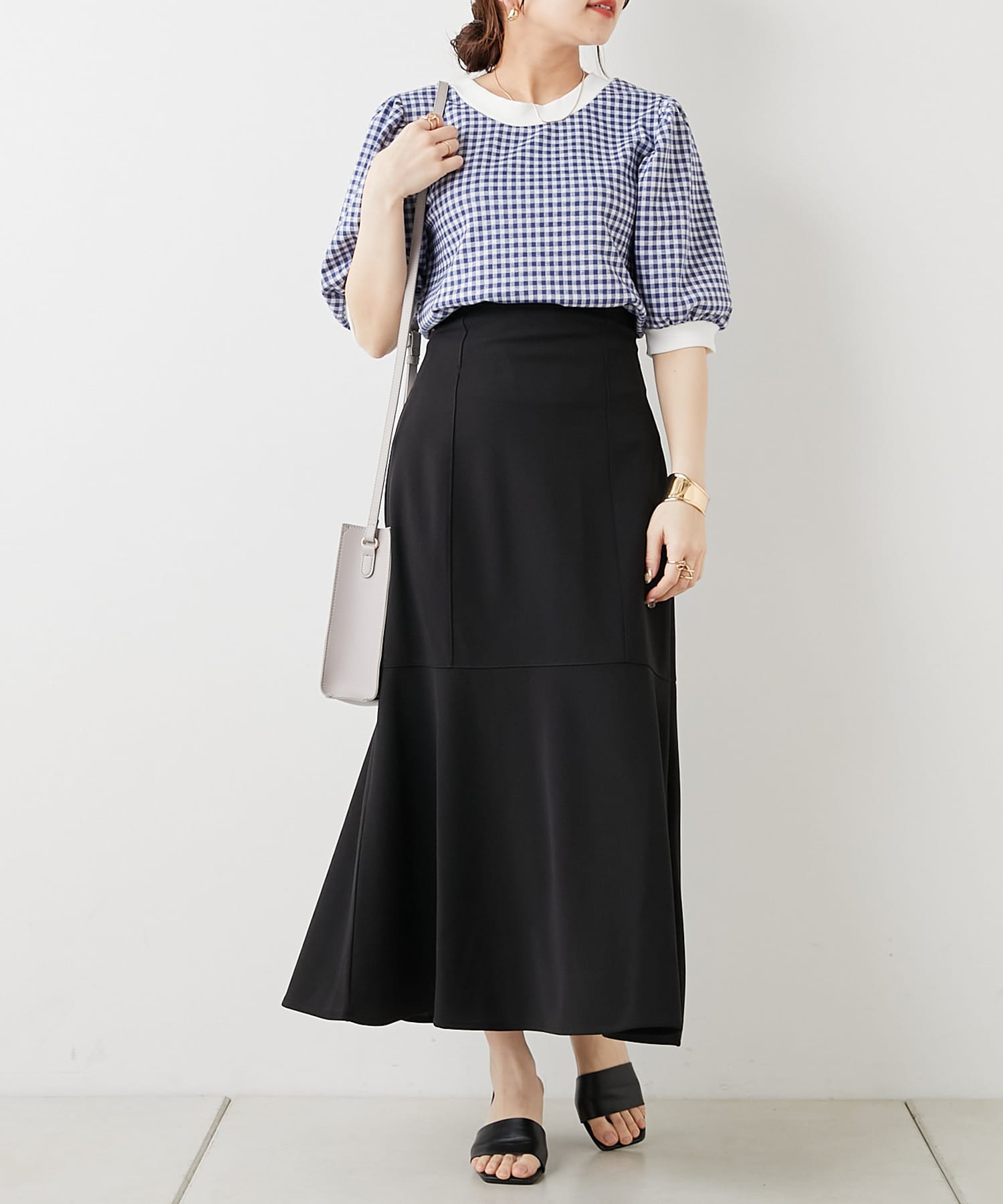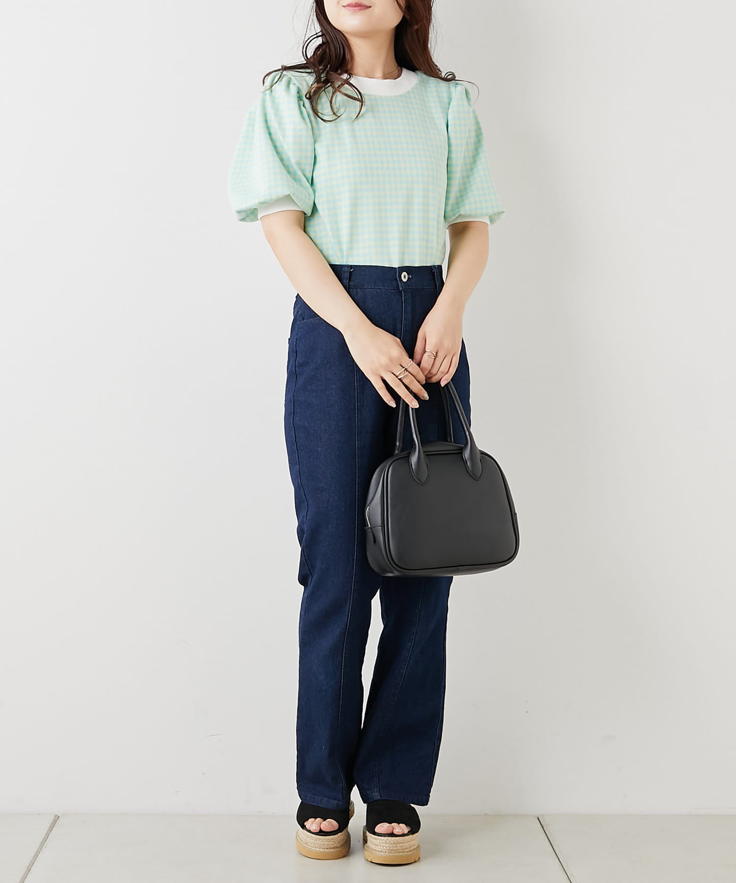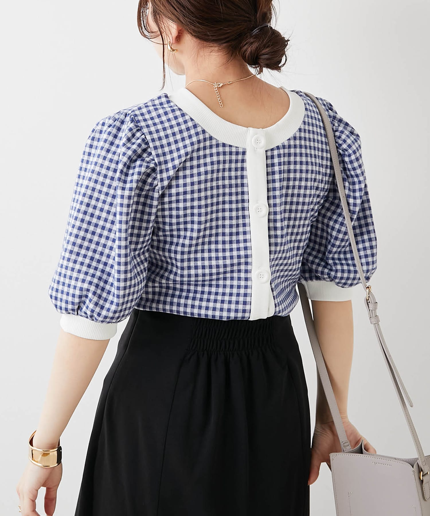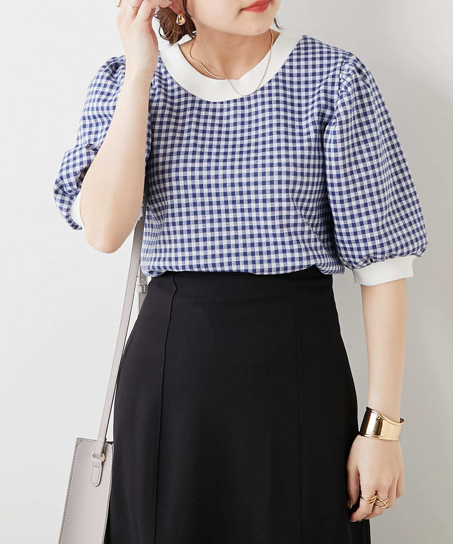 ・フェミニンなギンガムチェックなのでデニム合わせでも女性らしいコーディネートに仕上がります。