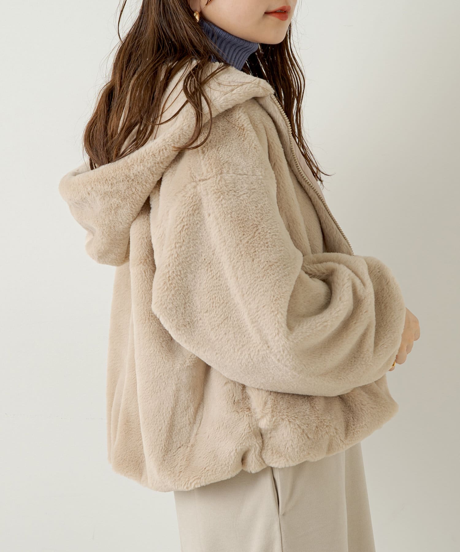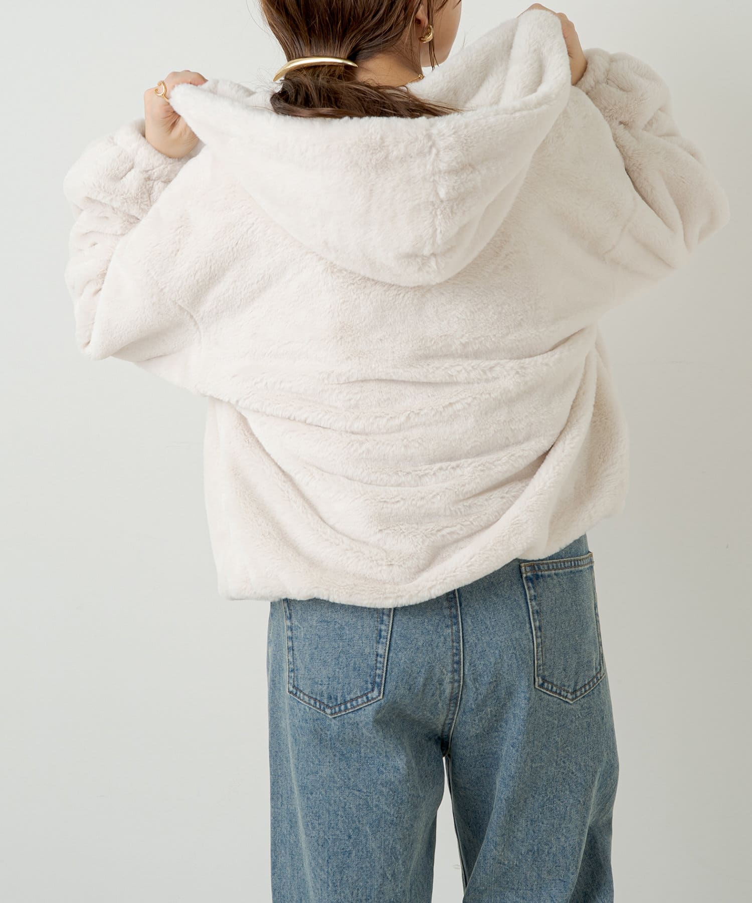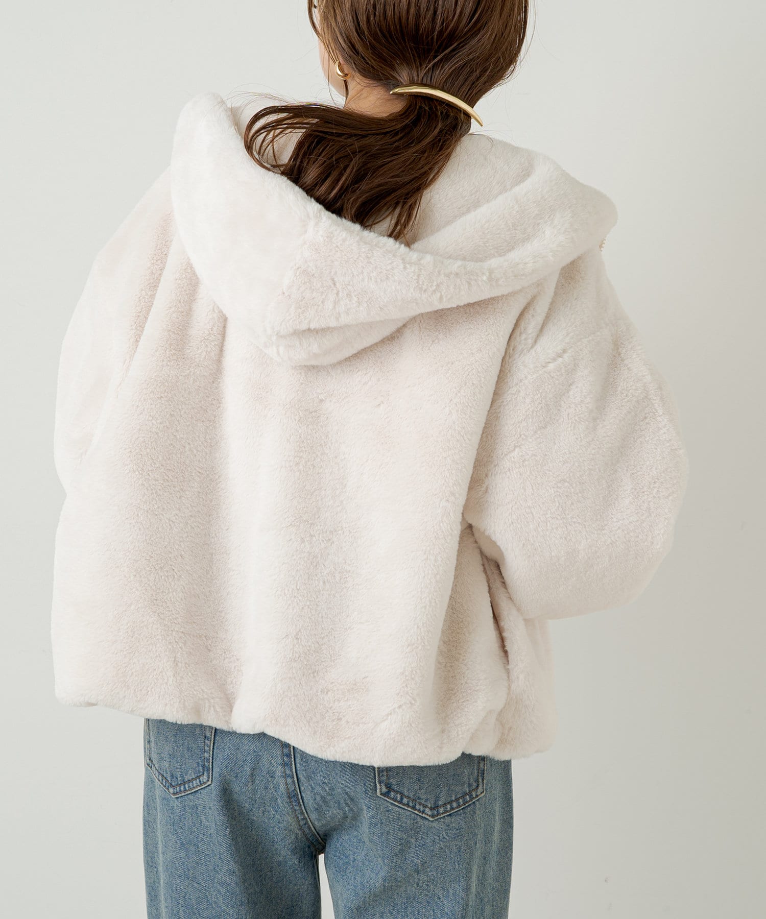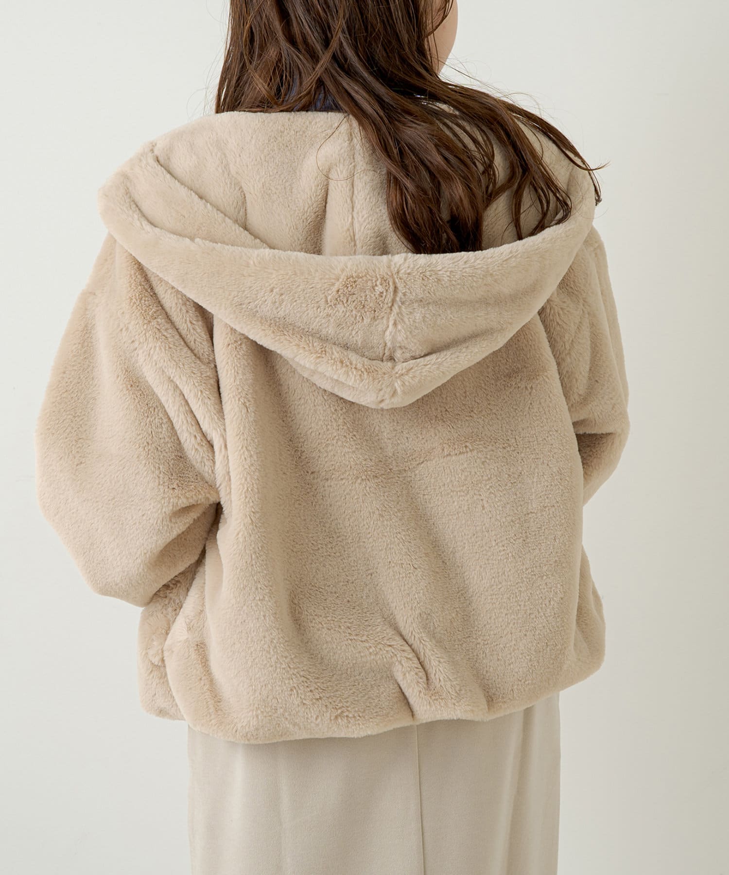 【低身長サイズシリーズ】フェイクラビファーフードジャケット