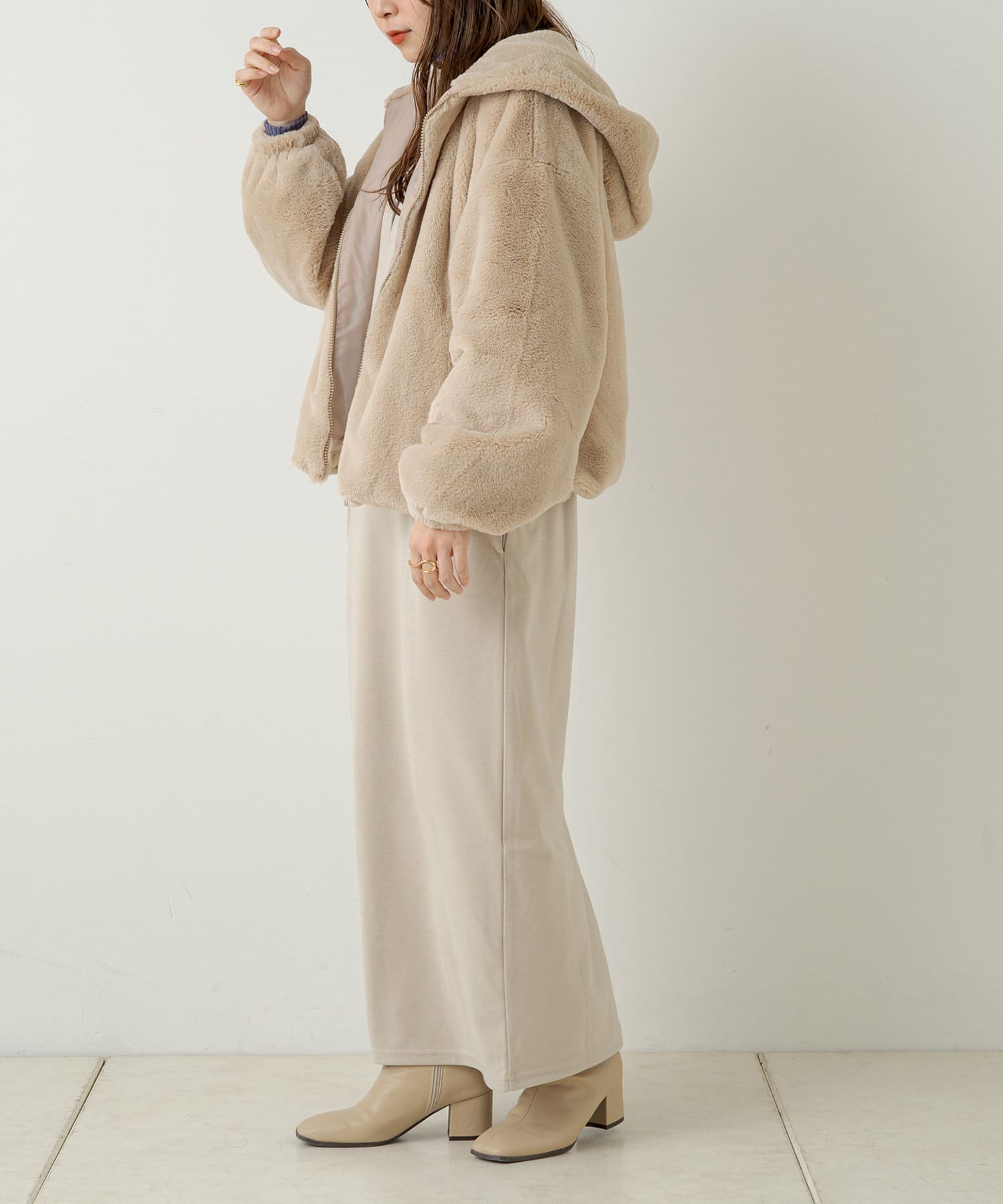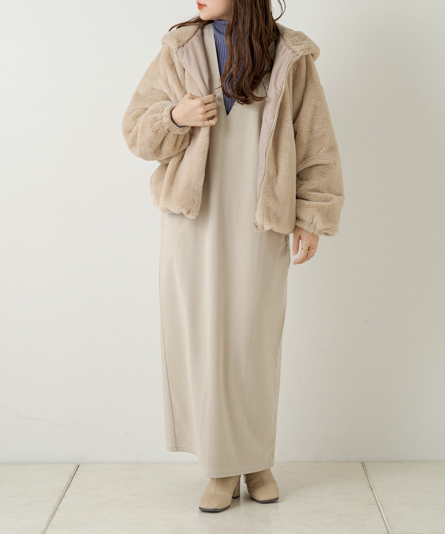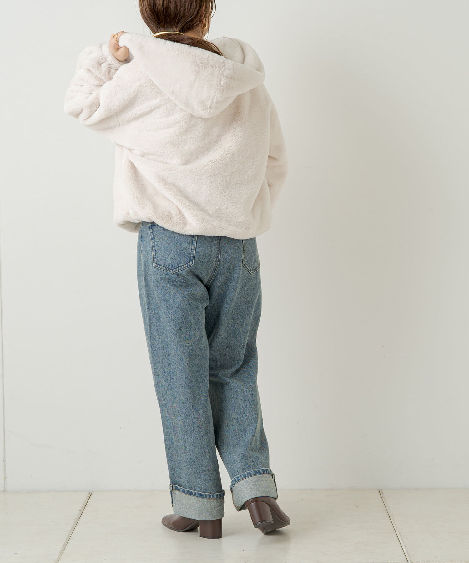 【低身長サイズシリーズ】フェイクラビファーフードジャケット