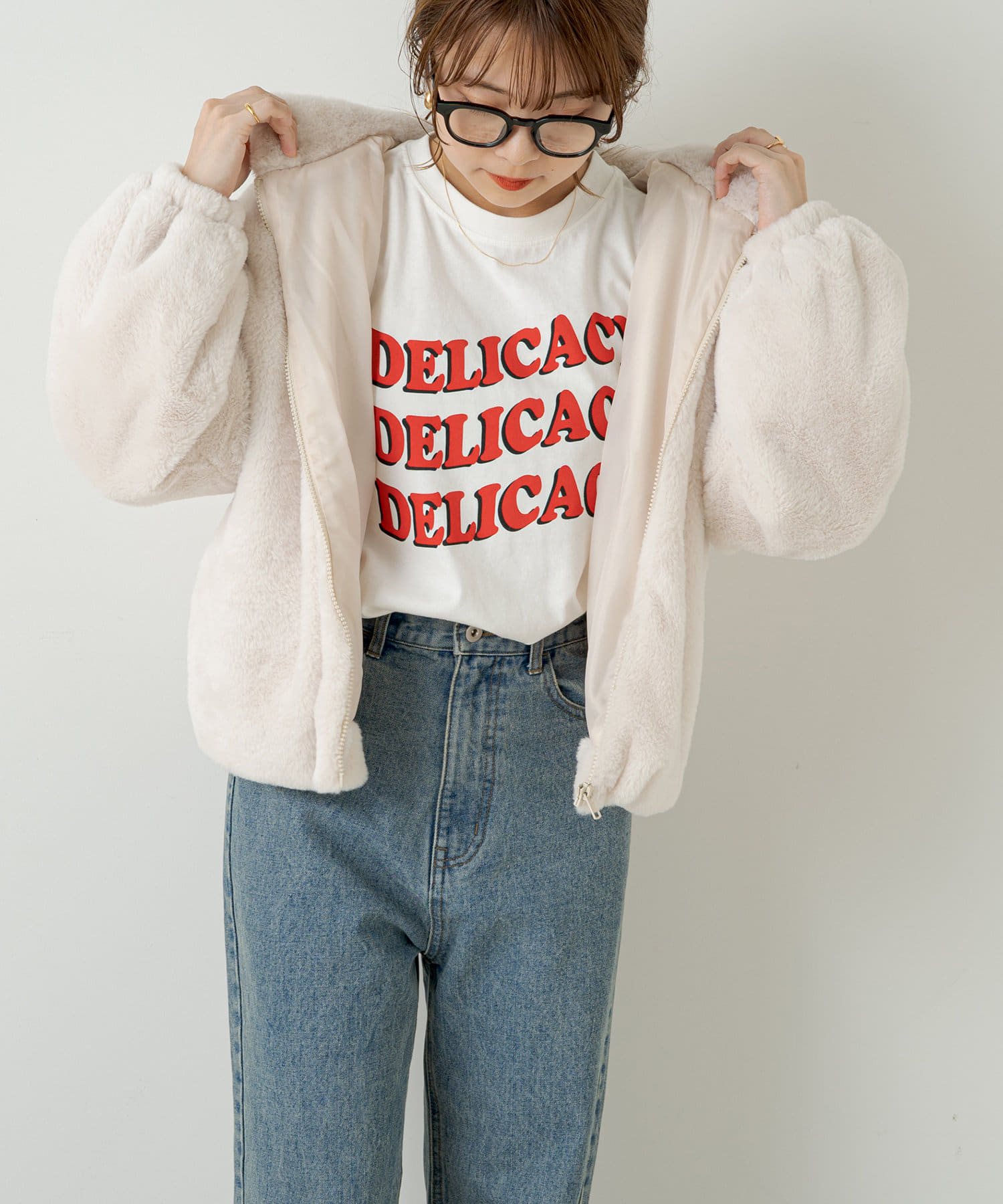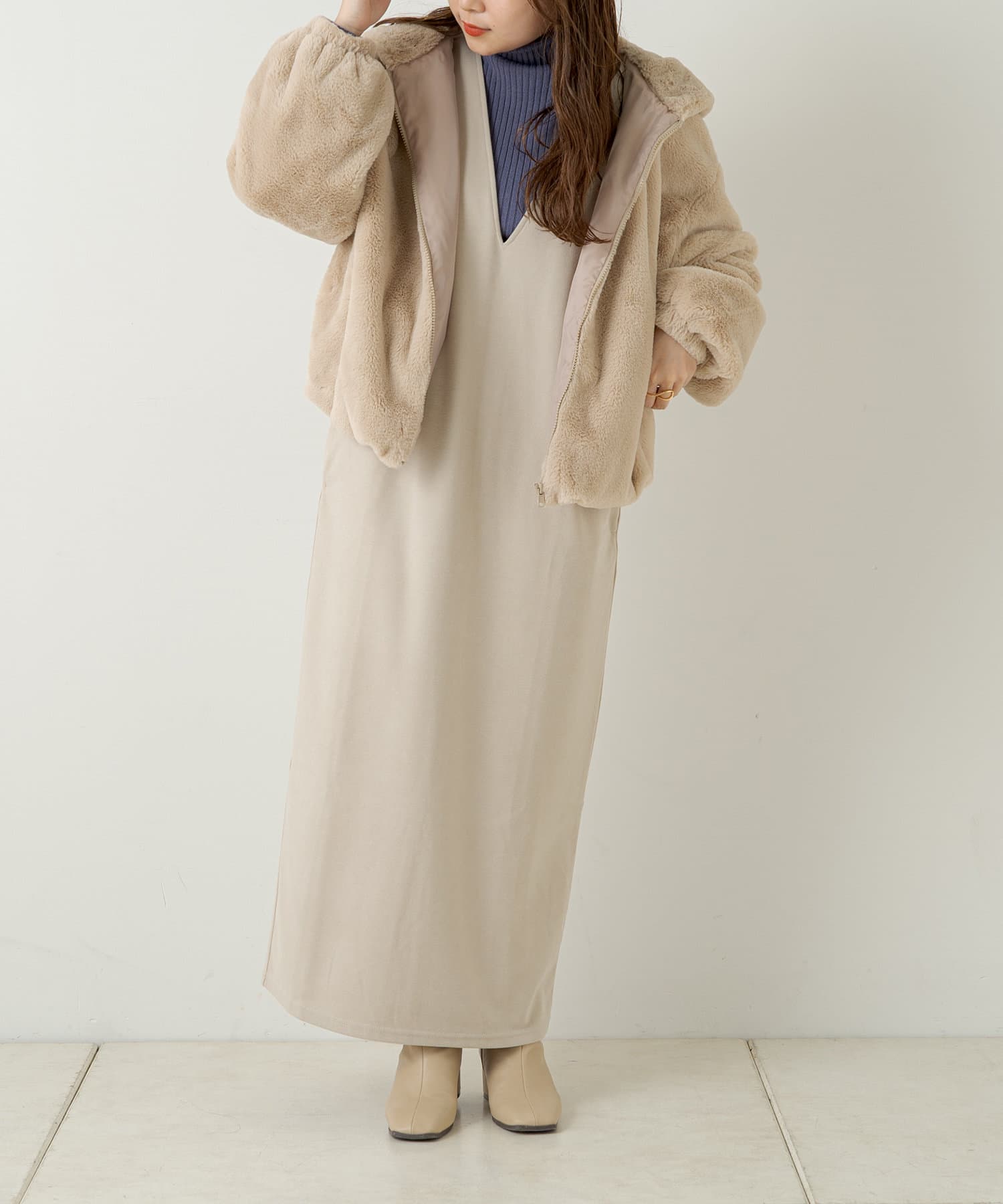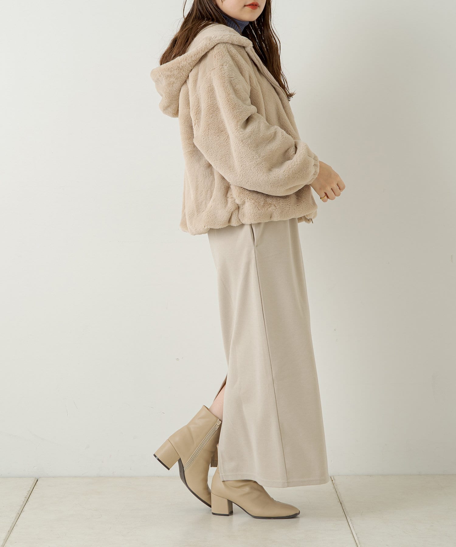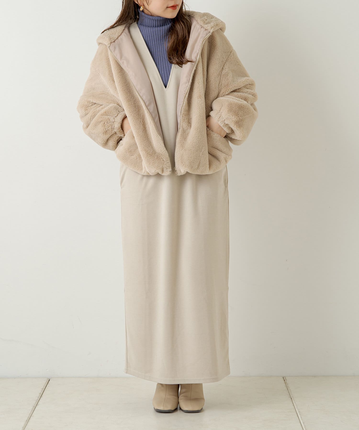 【低身長サイズシリーズ】フェイクラビファーフードジャケット