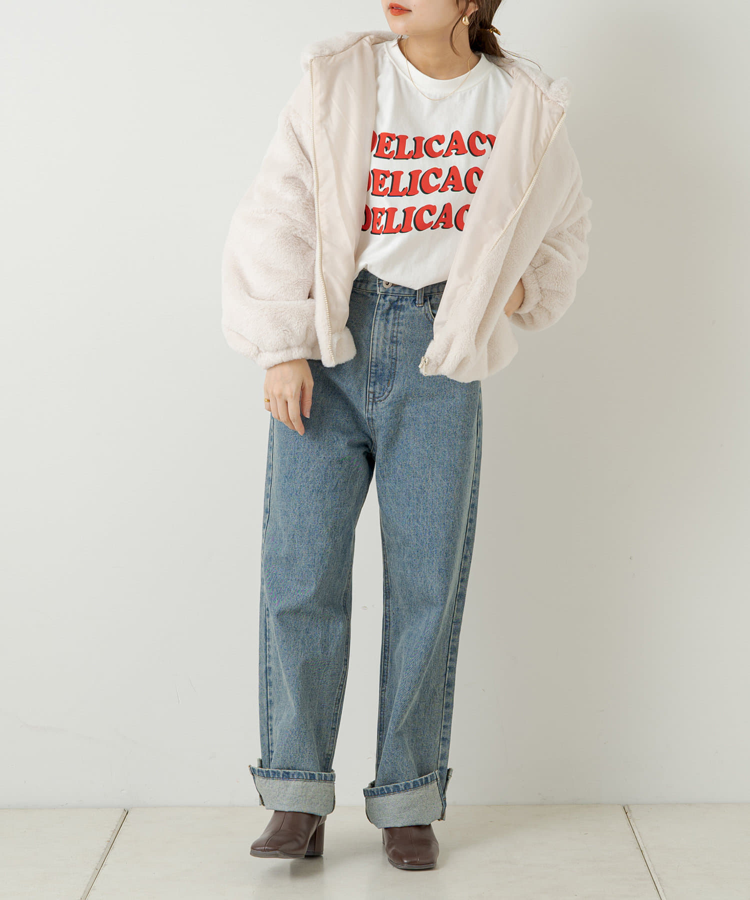 ・合わせやすい丈感なのでミニ丈でガーリーに、ロング丈ボトムでカジュアルとどちらとも相性抜群です!
