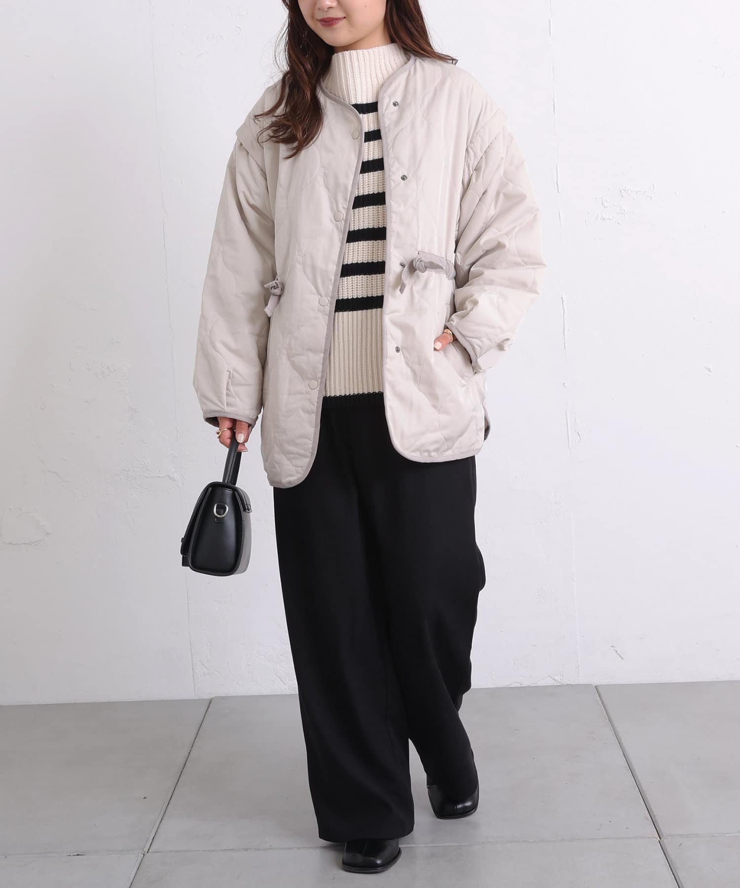 ・袖が取り外しできる仕様になっており、着回し力の高いアウター。