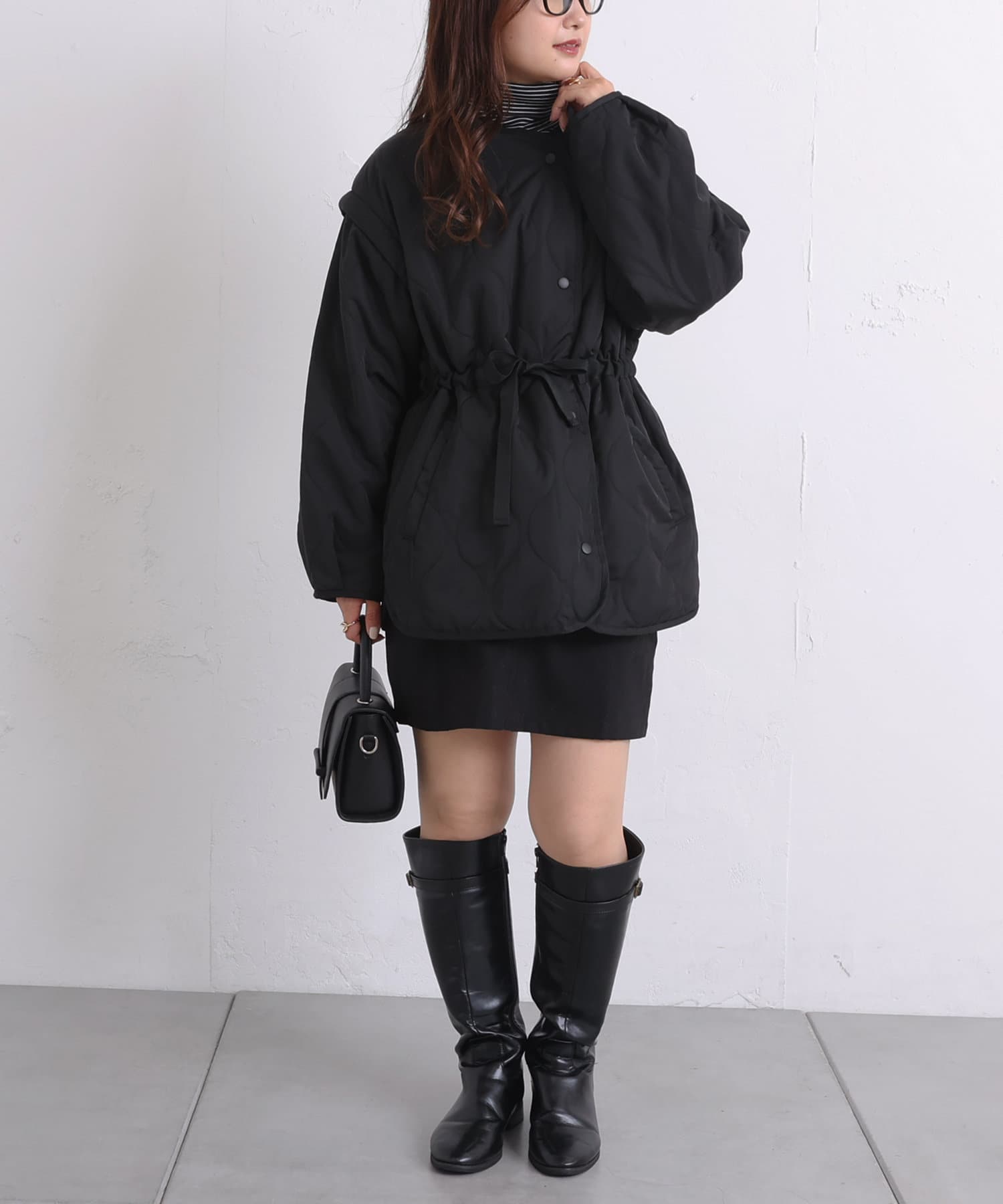 ・ウエストが絞れるようになっており、コーディネートに合わせてシルエットを変えていただけます。