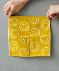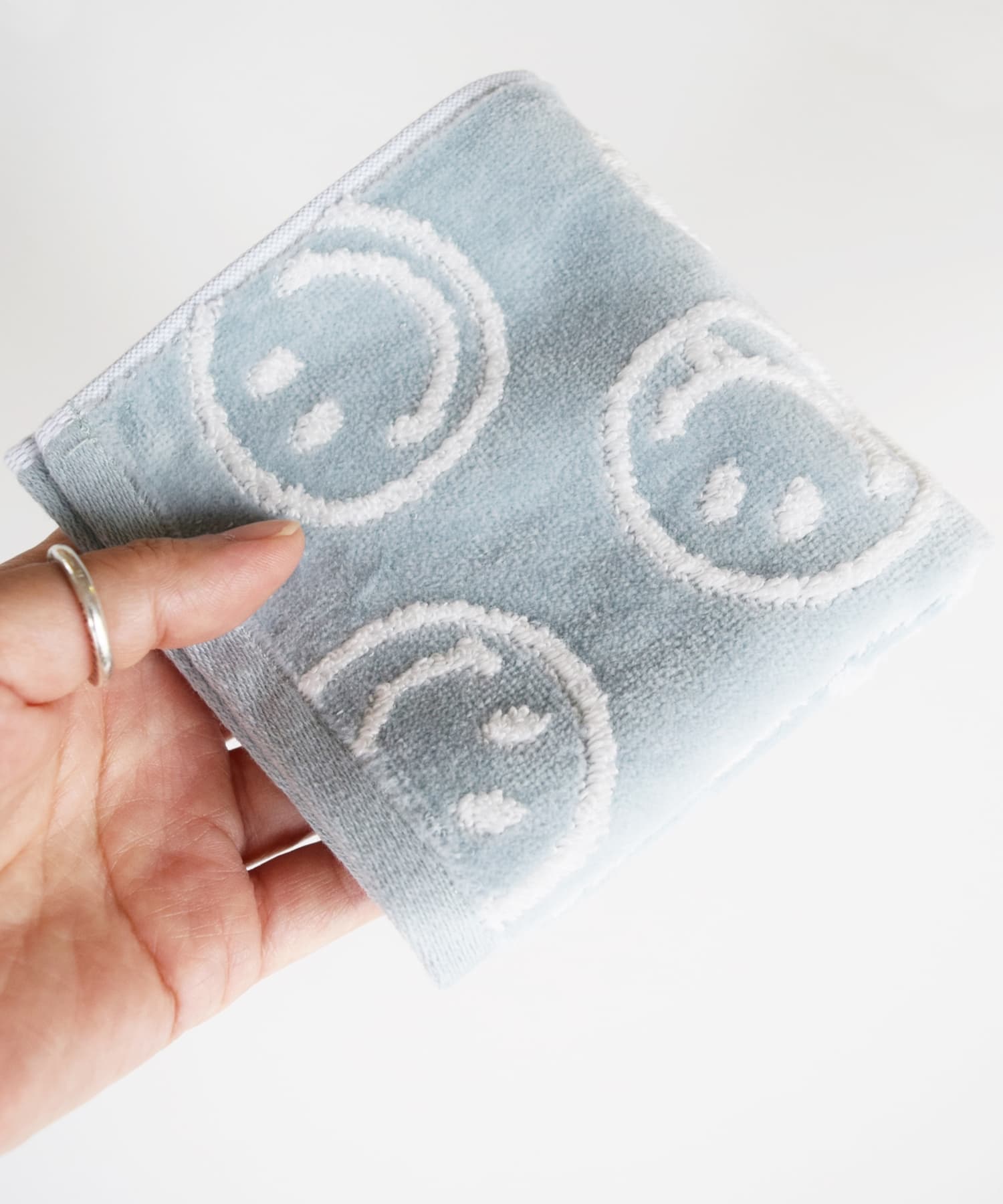 いくつあっても困らない、タオルハンカチ。その中でも圧倒的人気を誇るのがこちらのニコちゃん柄です。