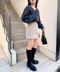 足元はロングブーツで大人っぽく締めてあげるとバランスよくまとまります◎