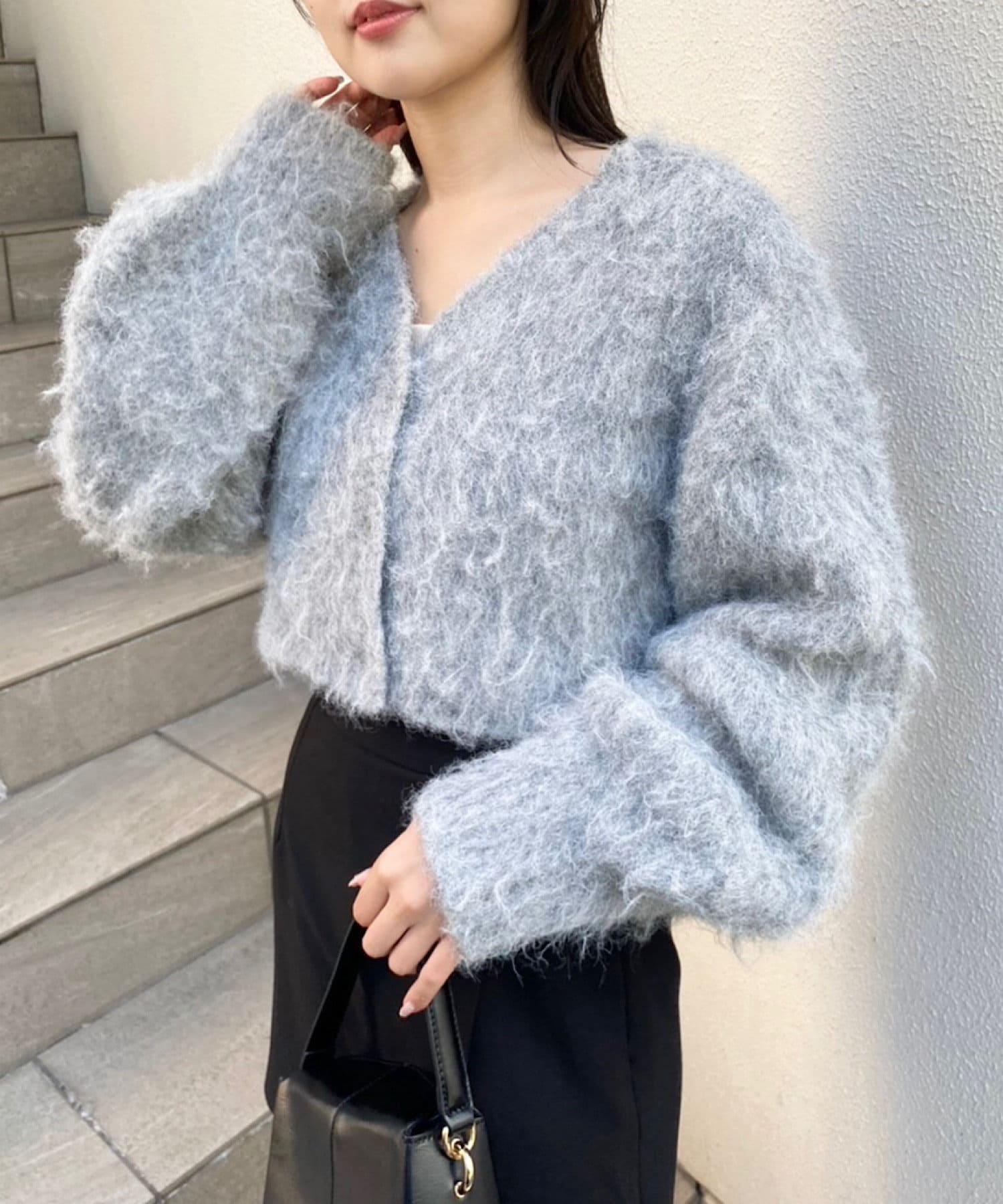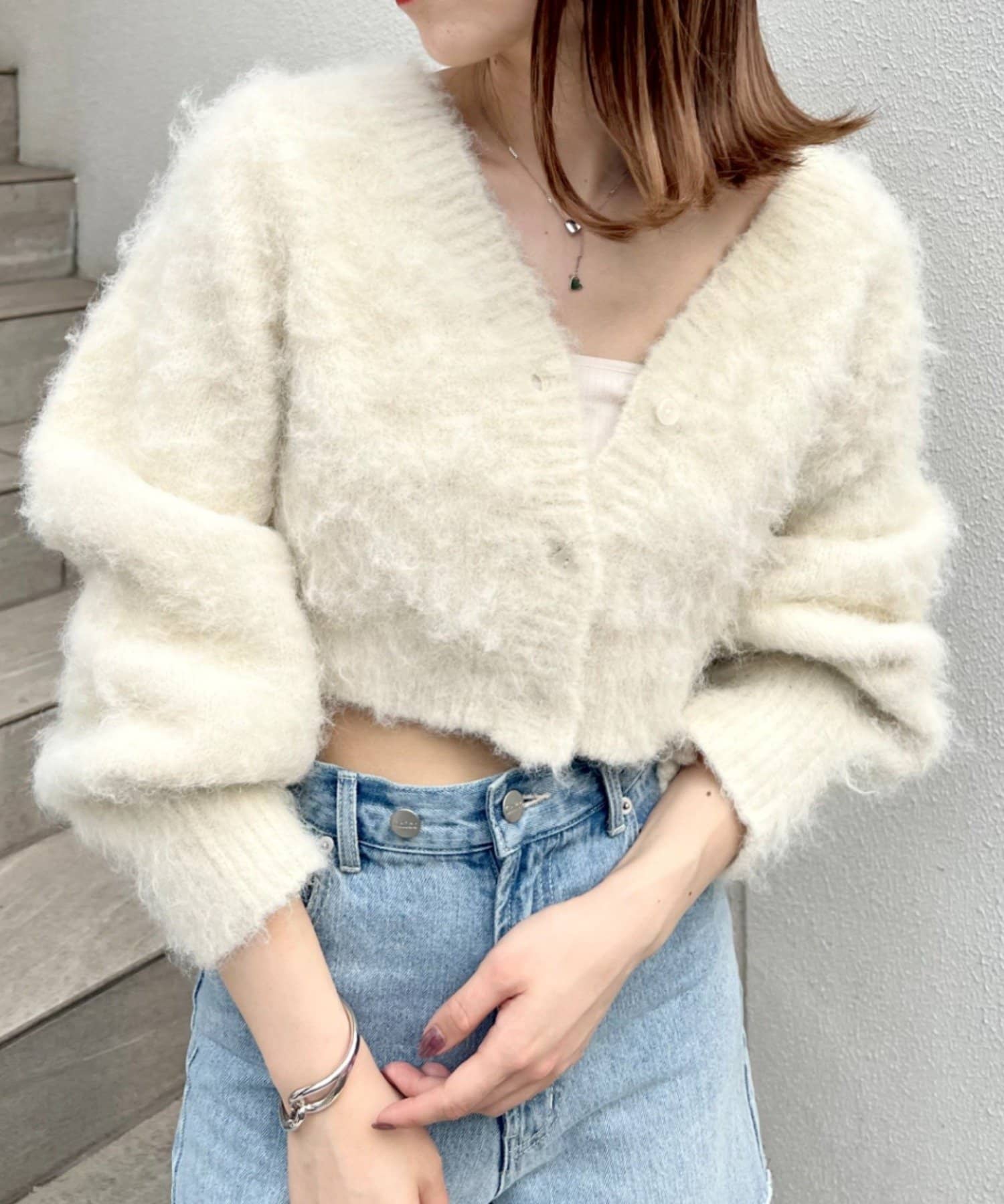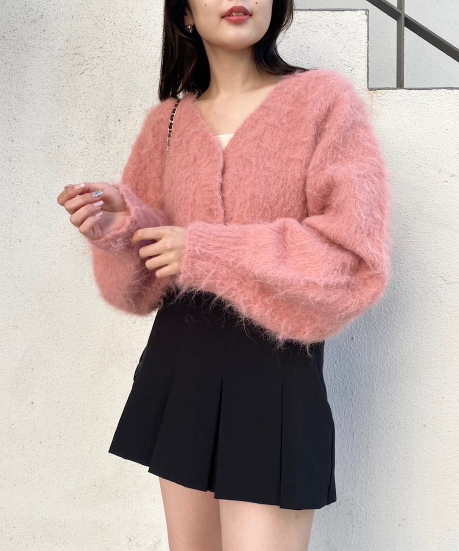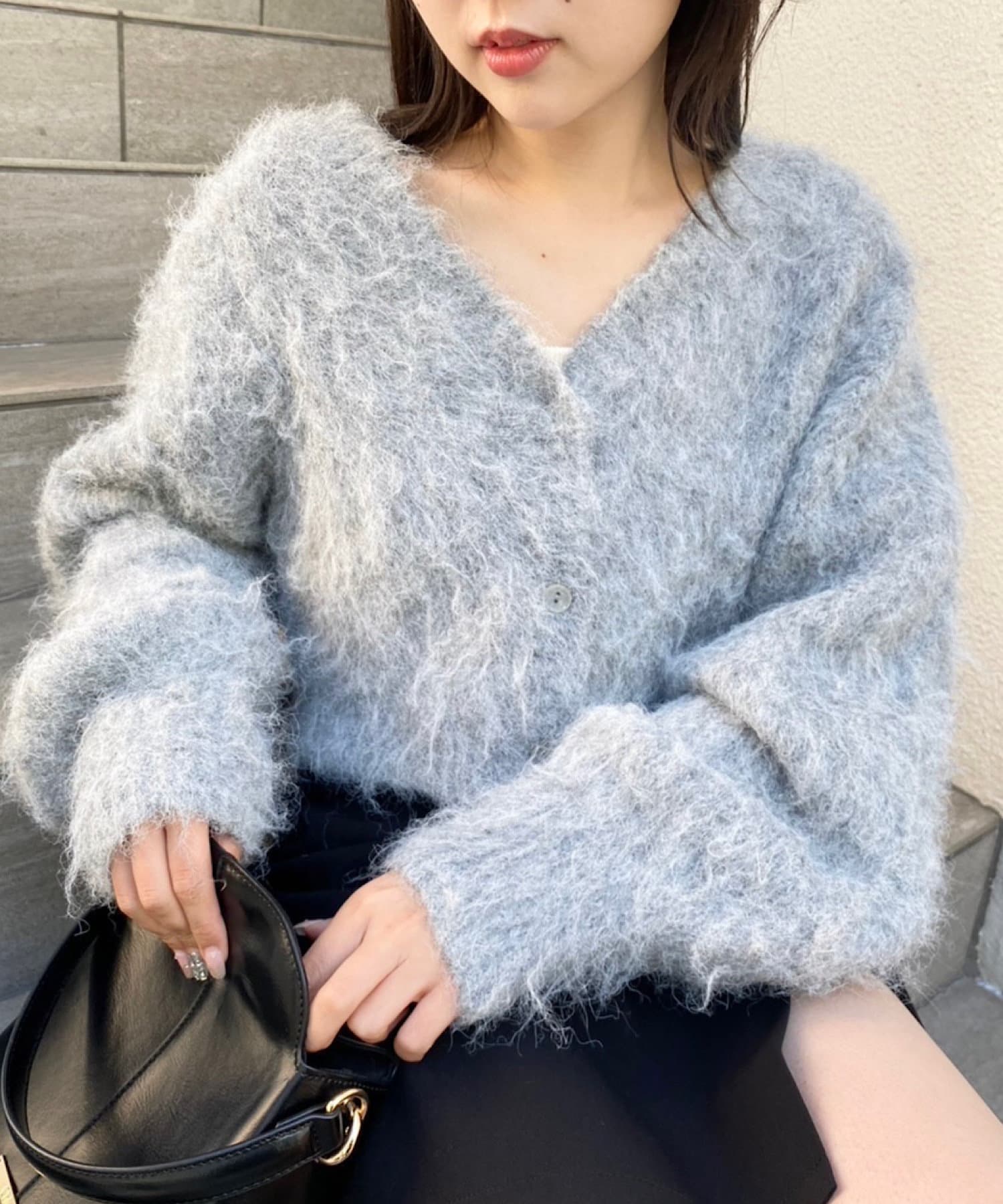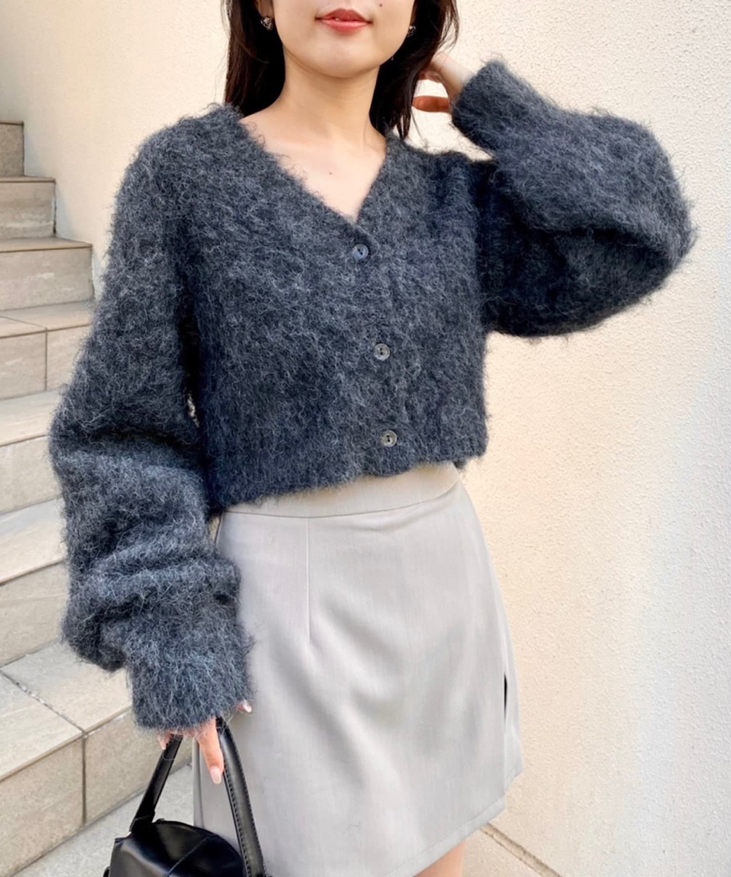 ショート丈2wayシャギーニットカーディガン