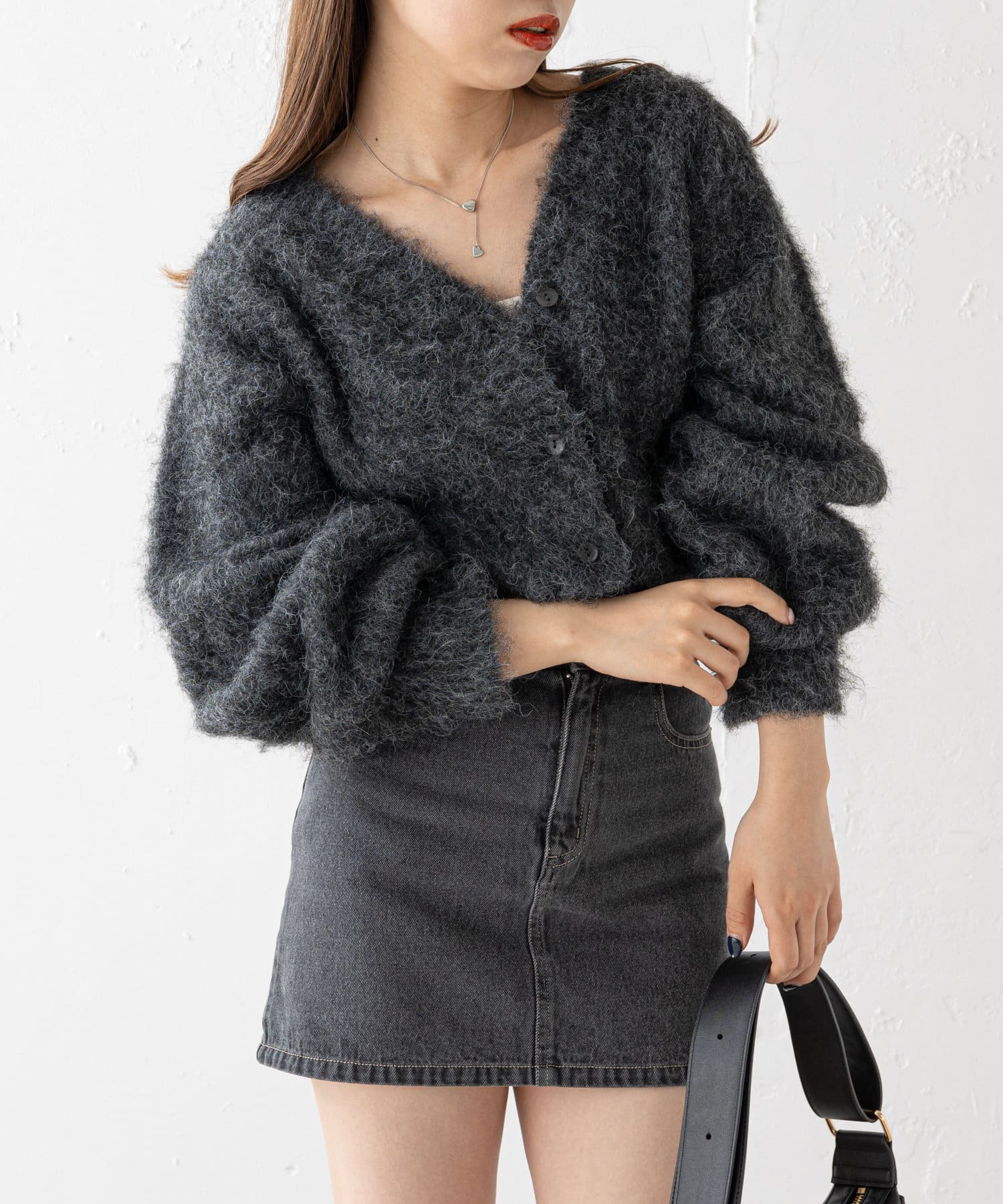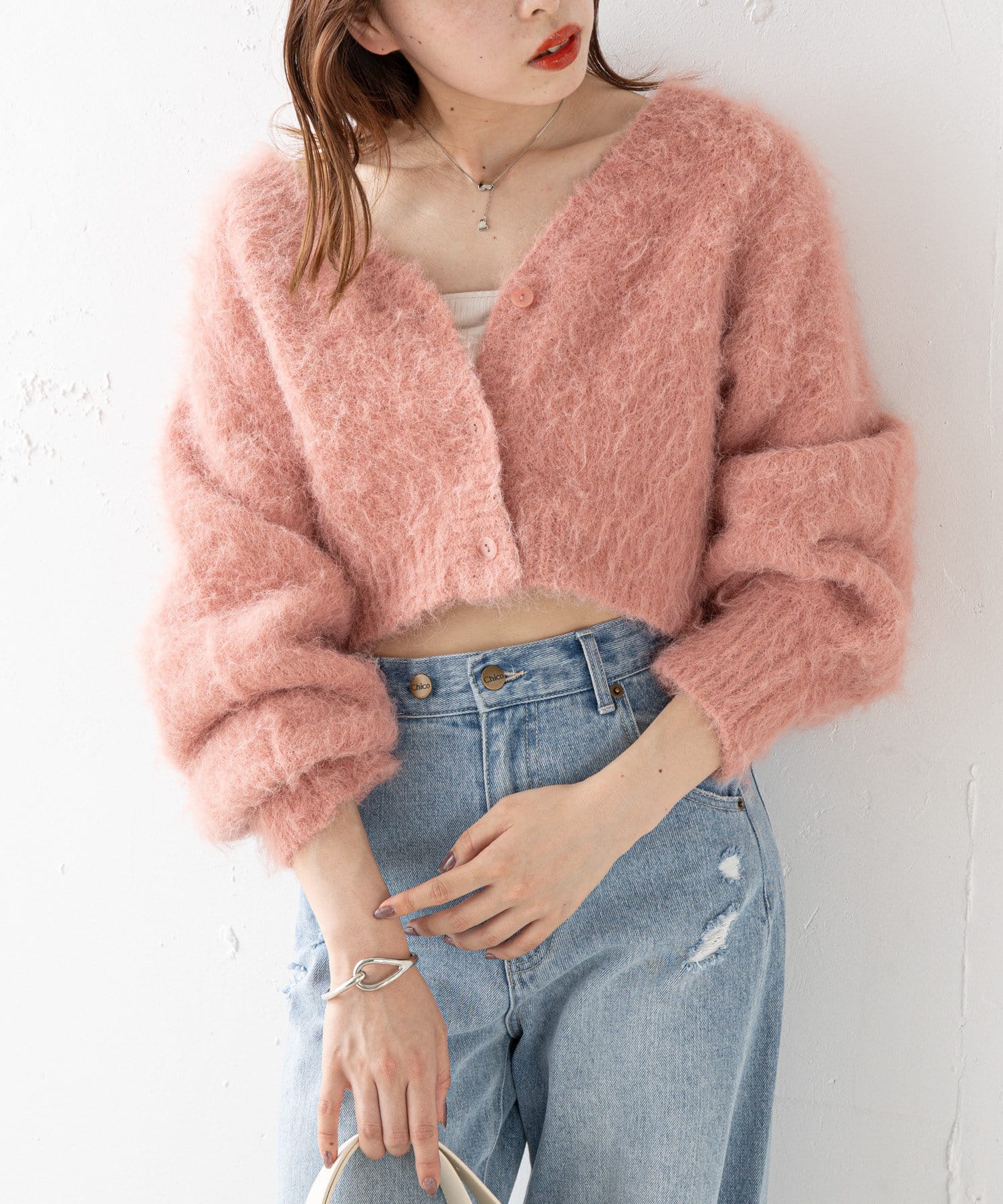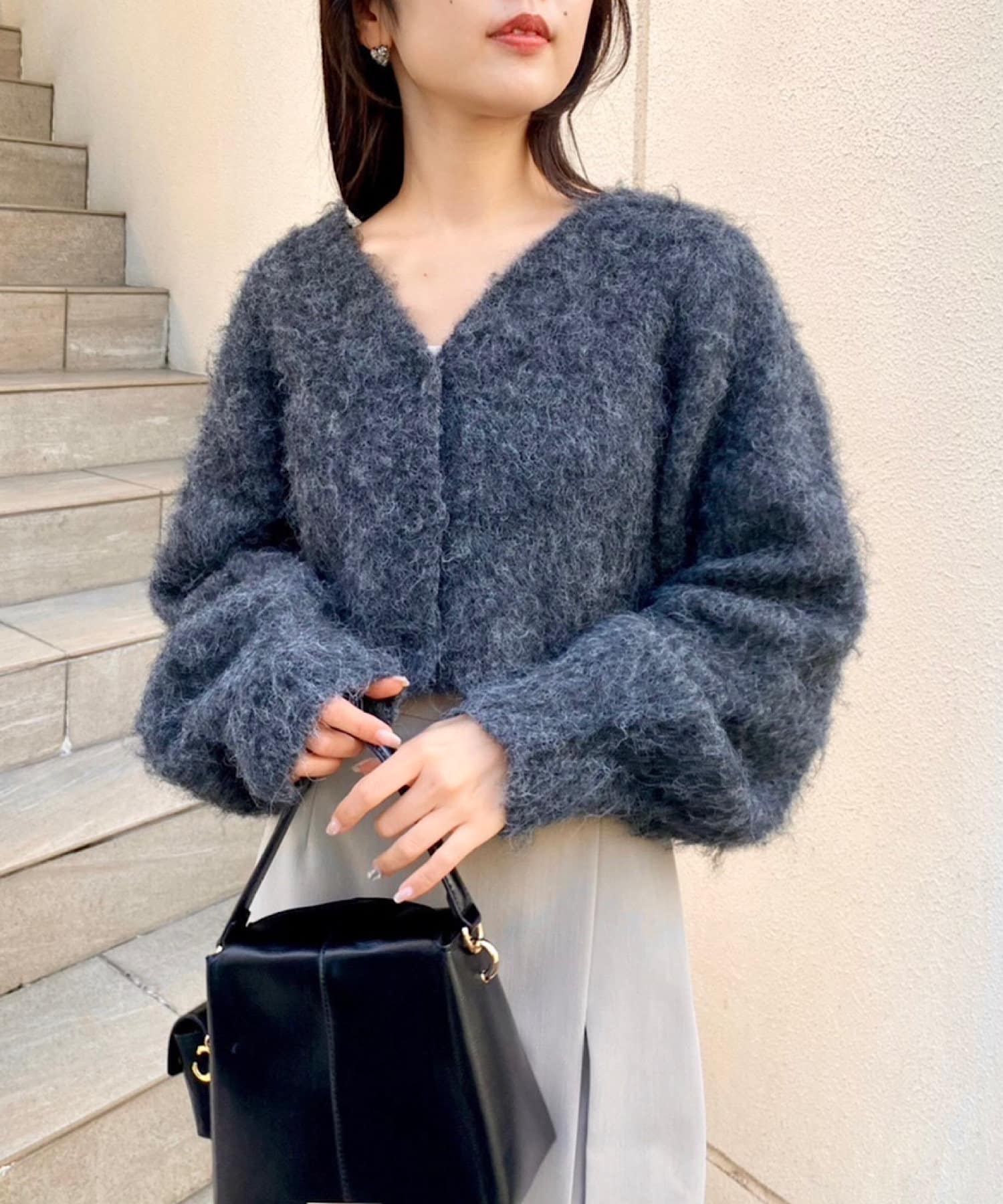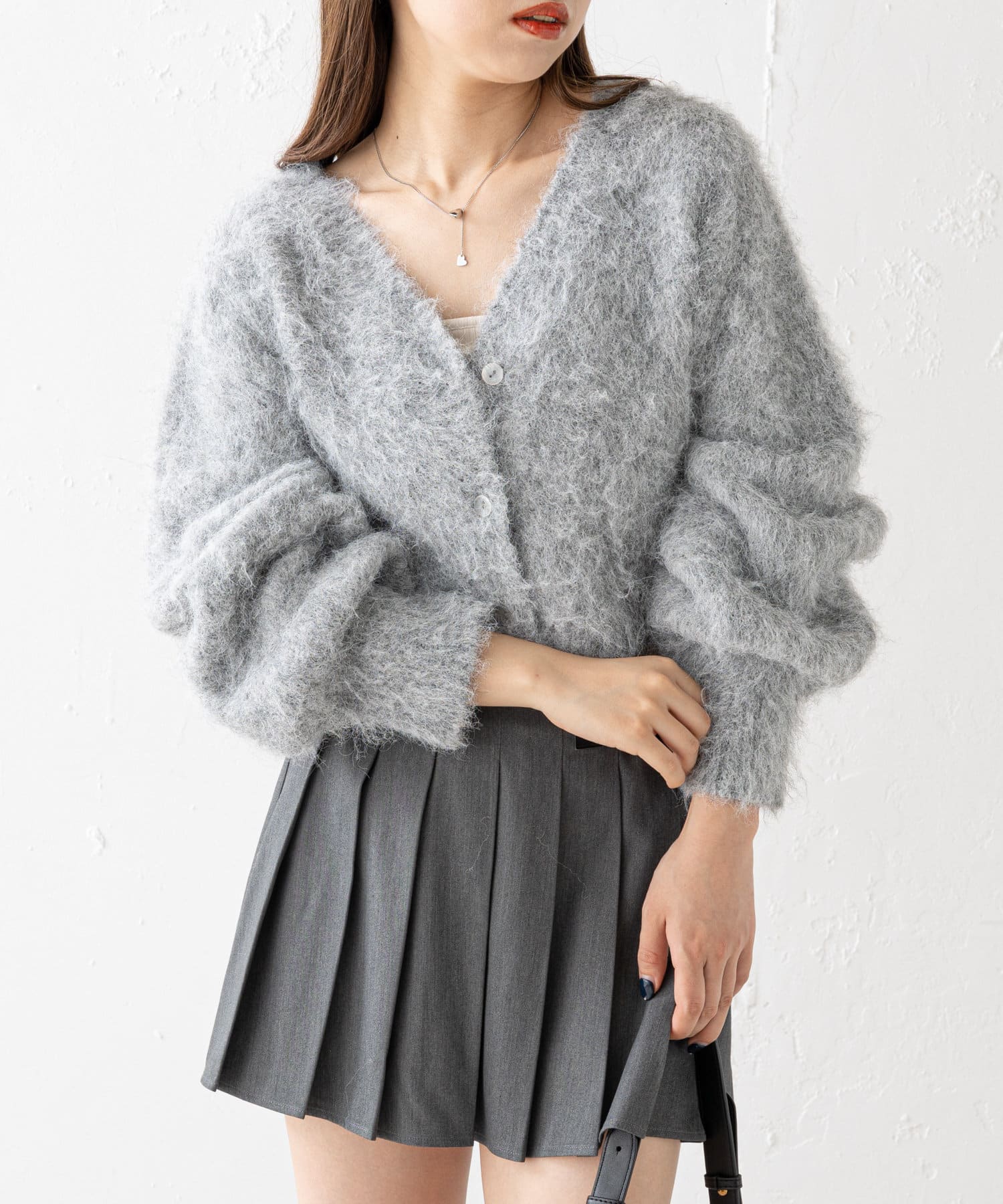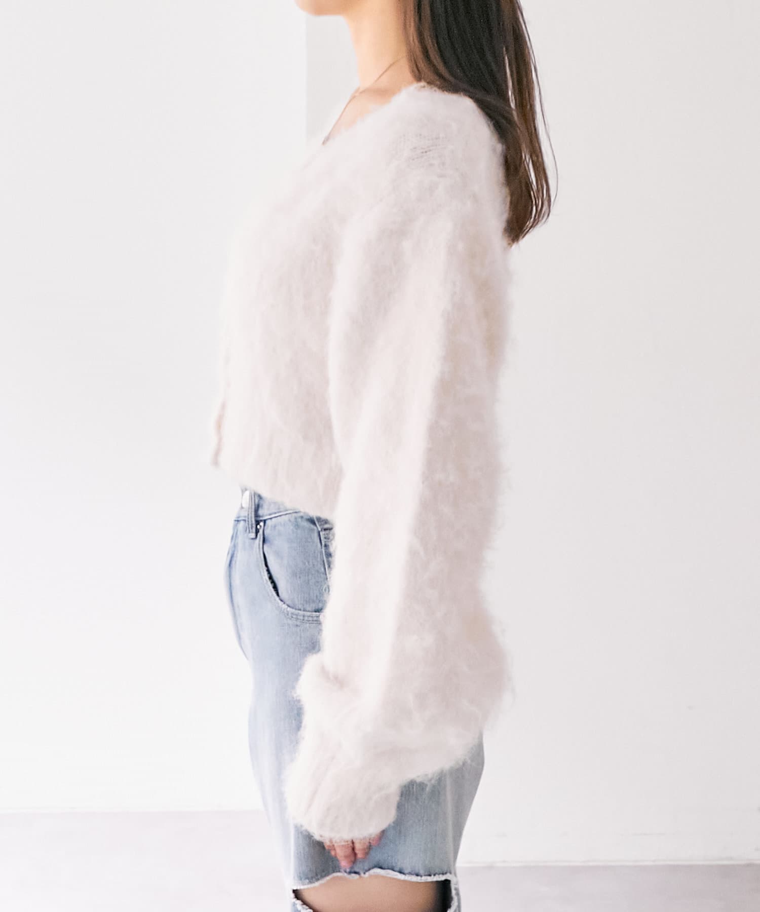ショート丈2wayシャギーニットカーディガン