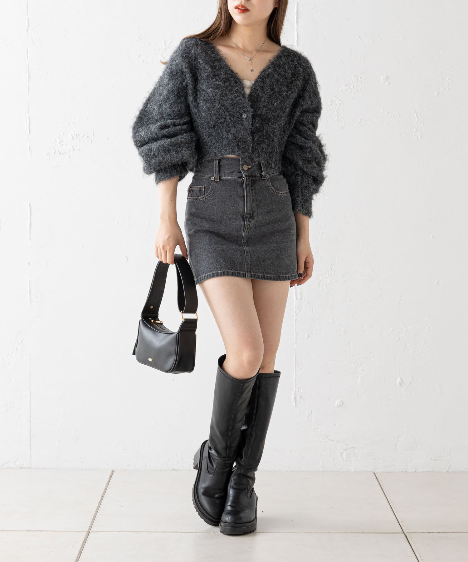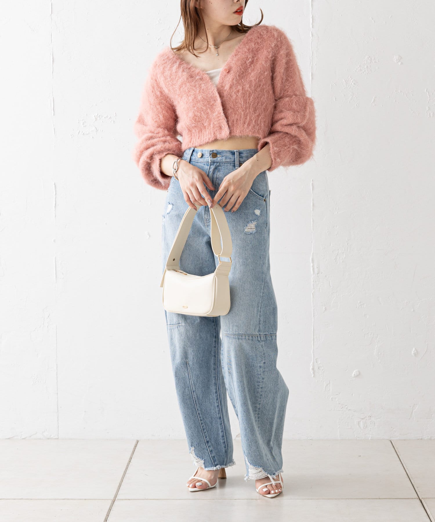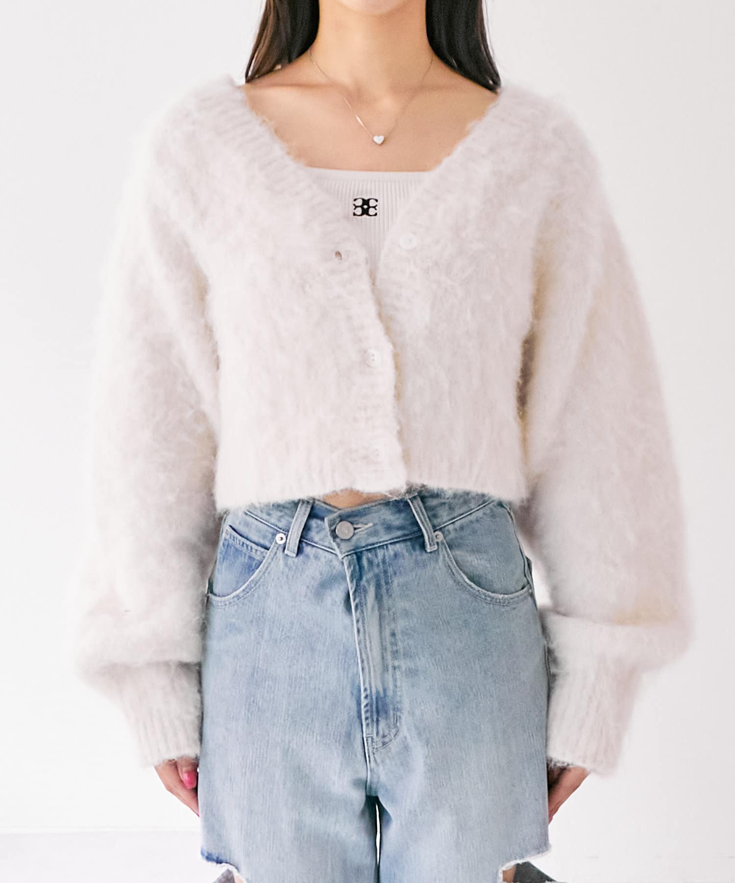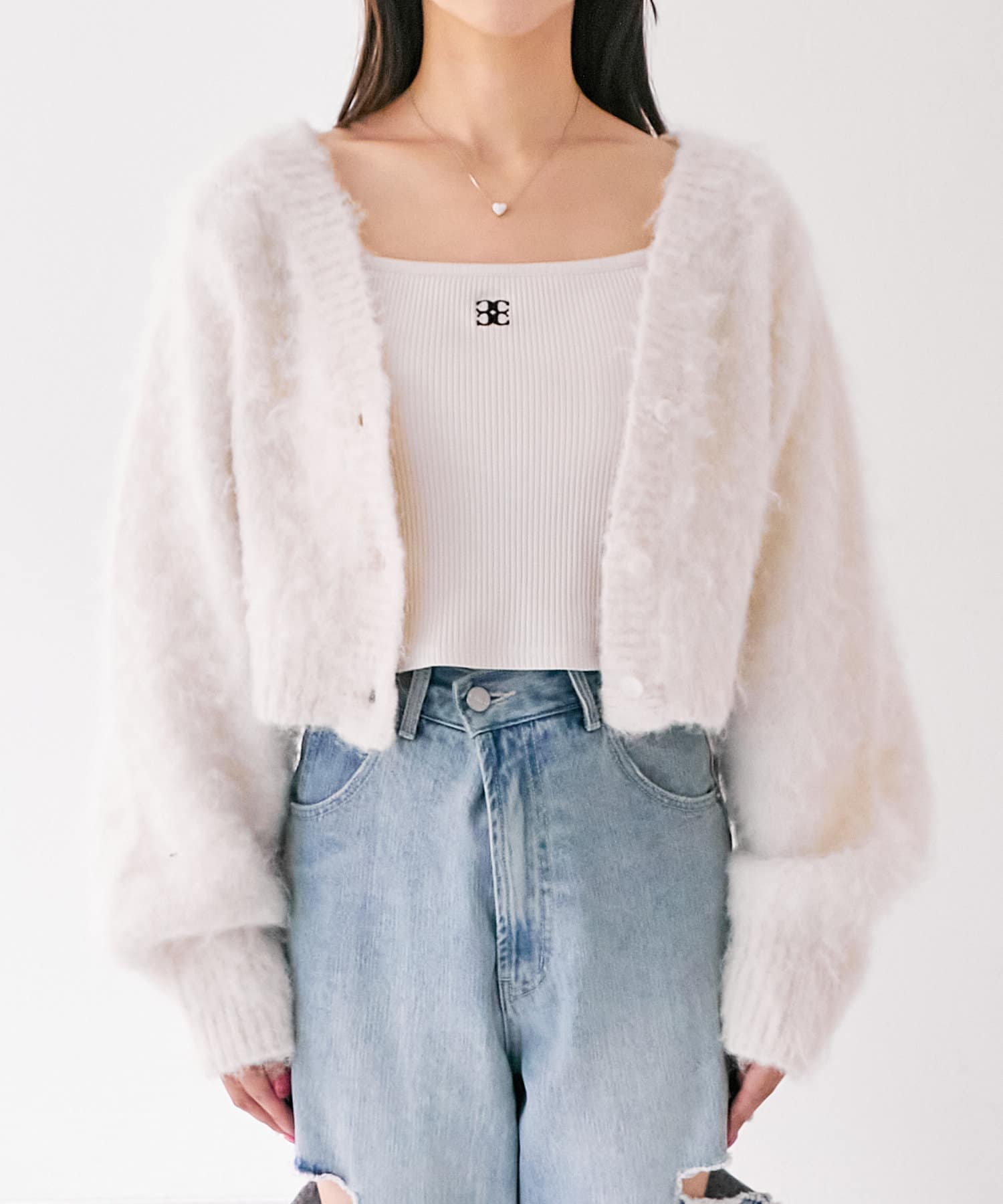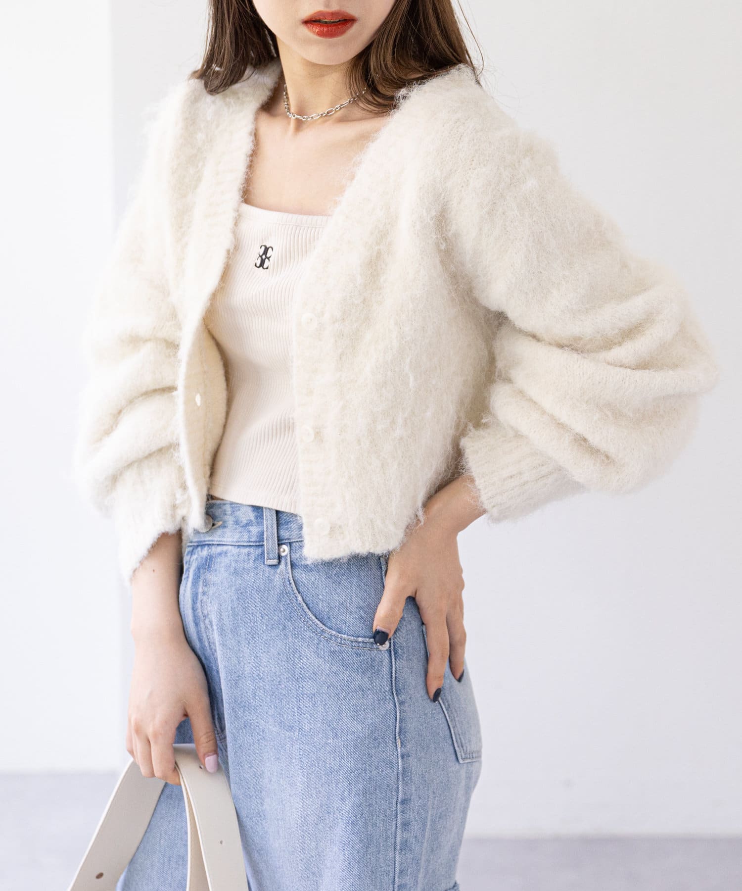ショート丈2wayシャギーニットカーディガン