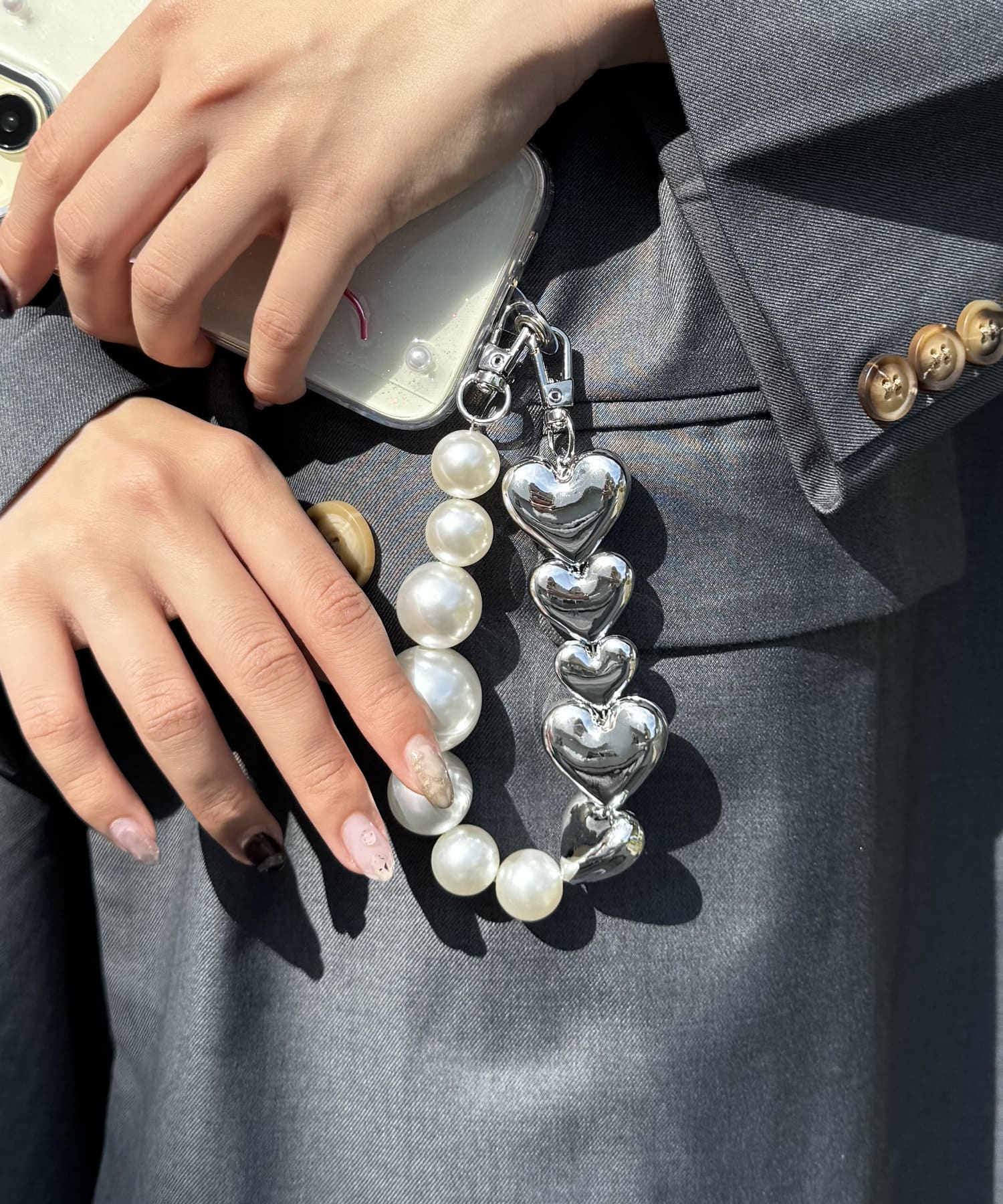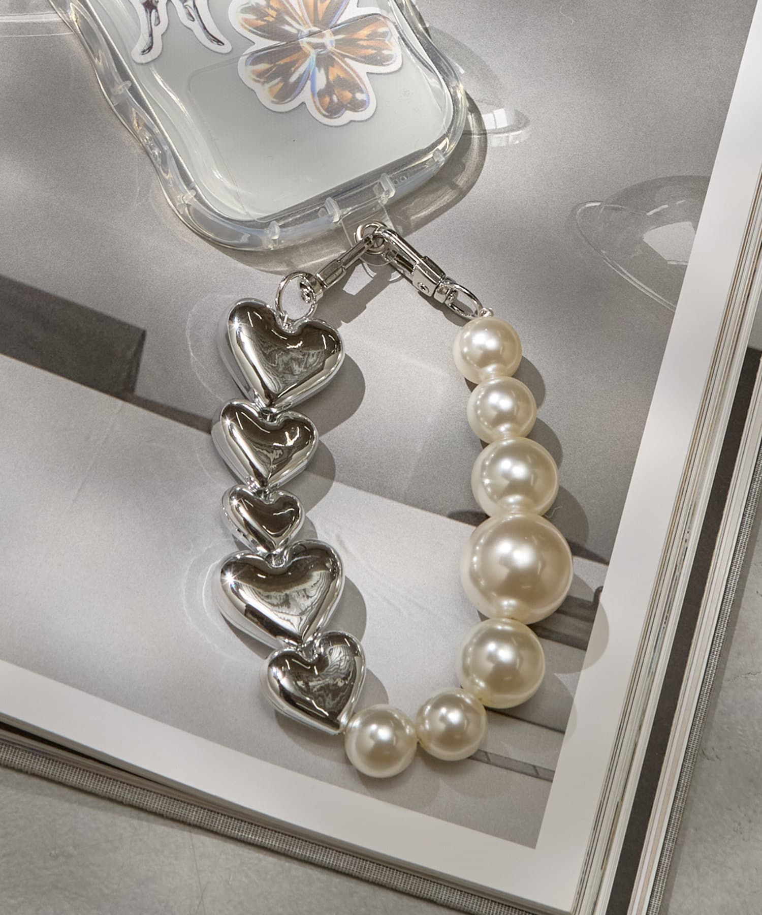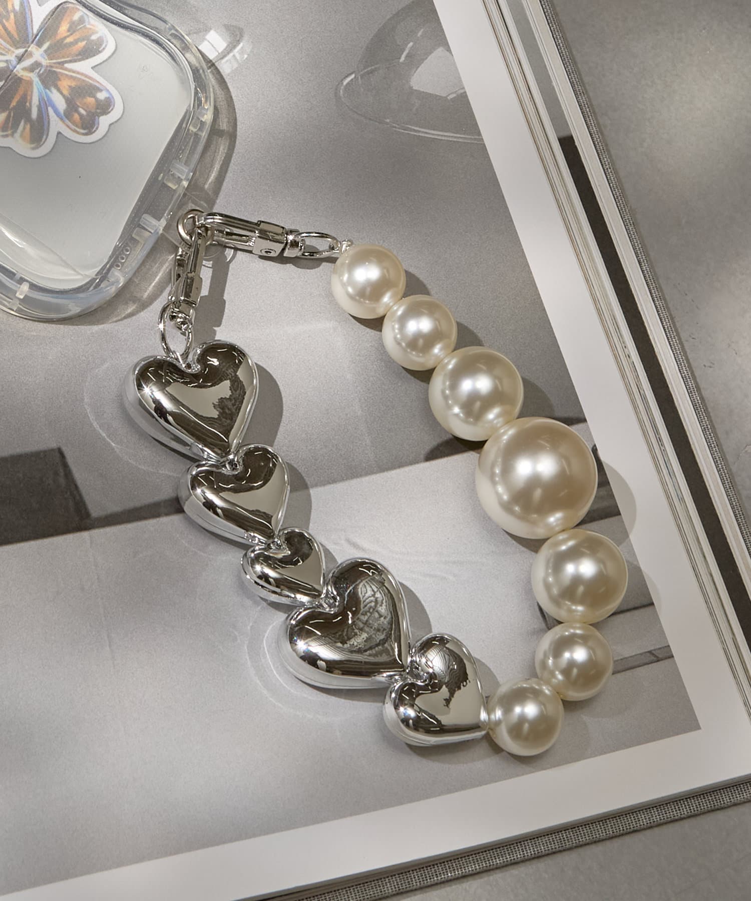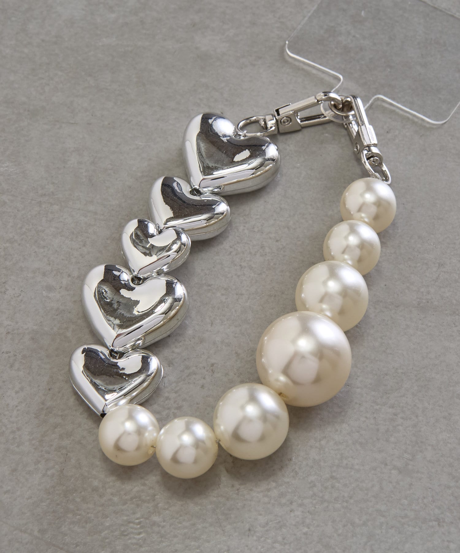 大きなパールとハートがコーデのポイントになるアイテム♪