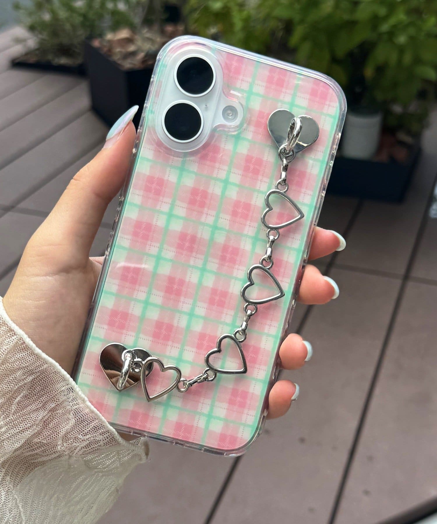 スマホケースに貼るだけで使える、落下防止用キーリングハンガーチェーン◎