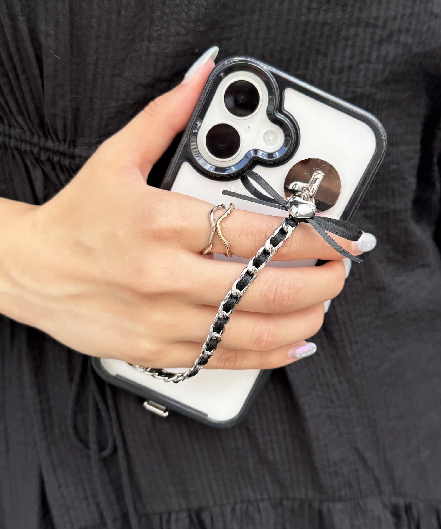 スマホケースに貼るだけで使える、落下防止用キーリングハンガーチェーン◎