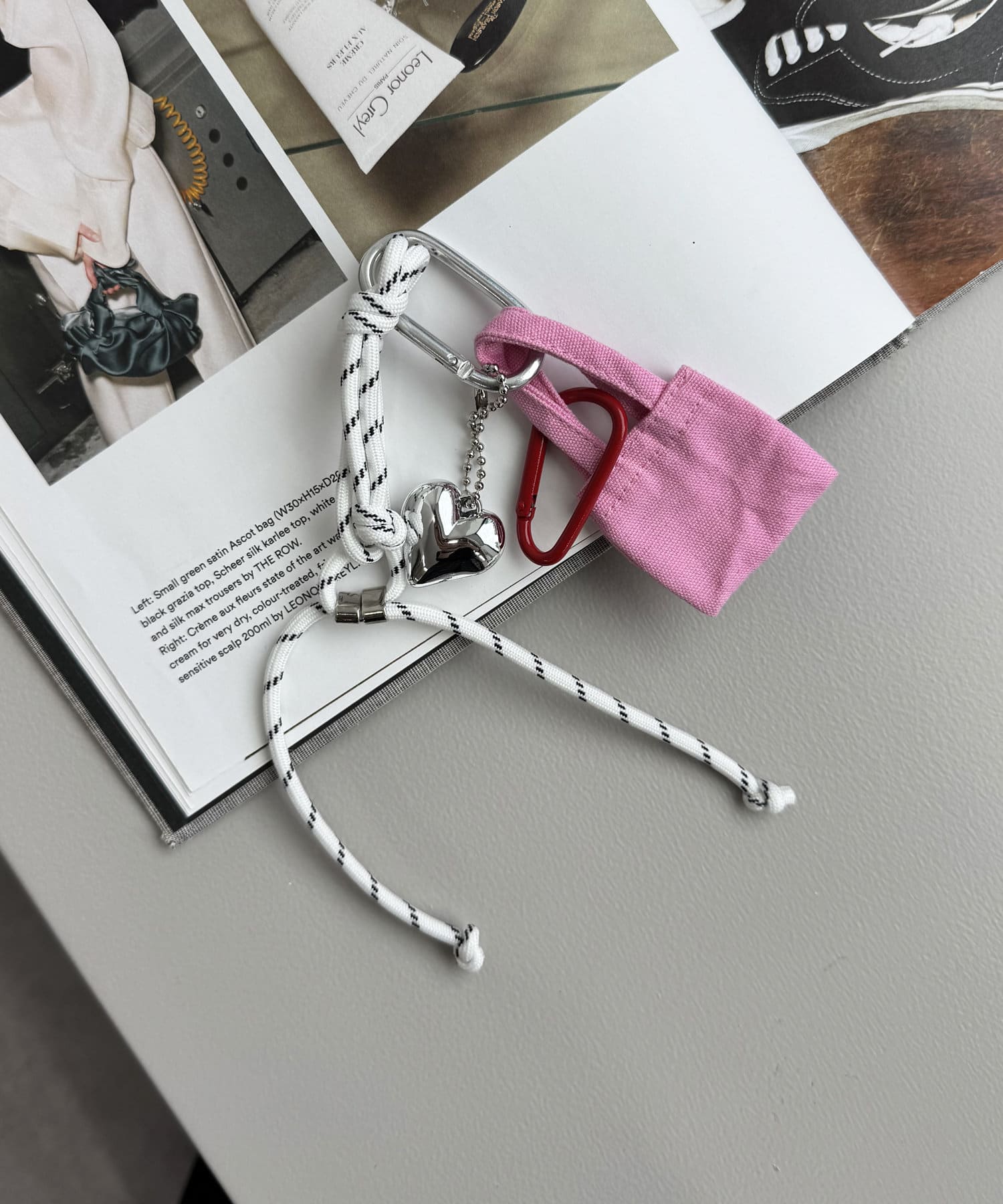〇カラビナ付きでお好きなチャームと組み合わせても可愛い!