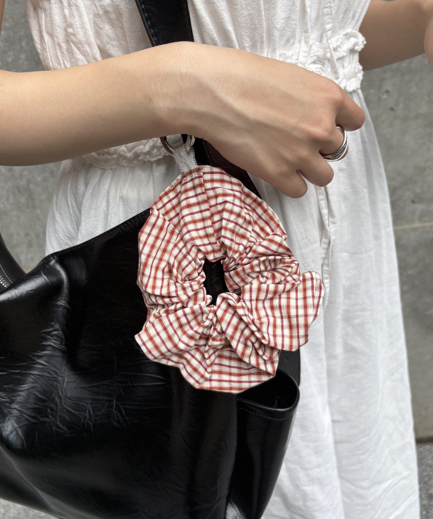大きめのカラビナ付きでバッグにつけたりシュシュとしてもお使いいただけます◎
