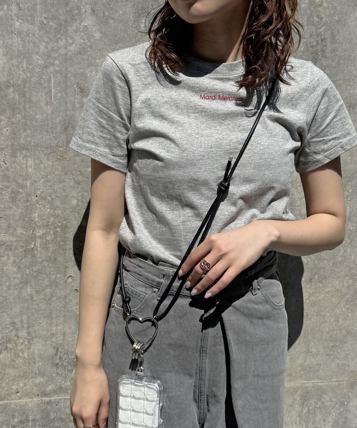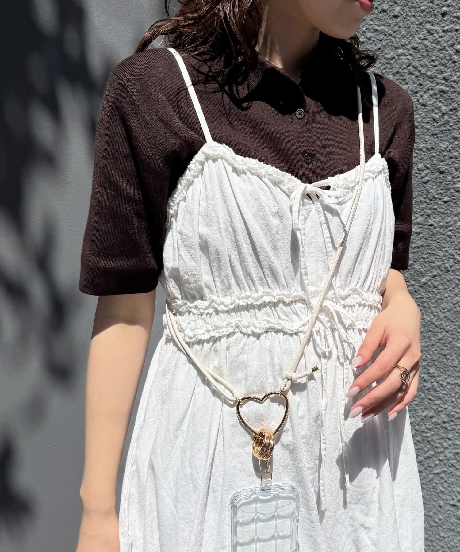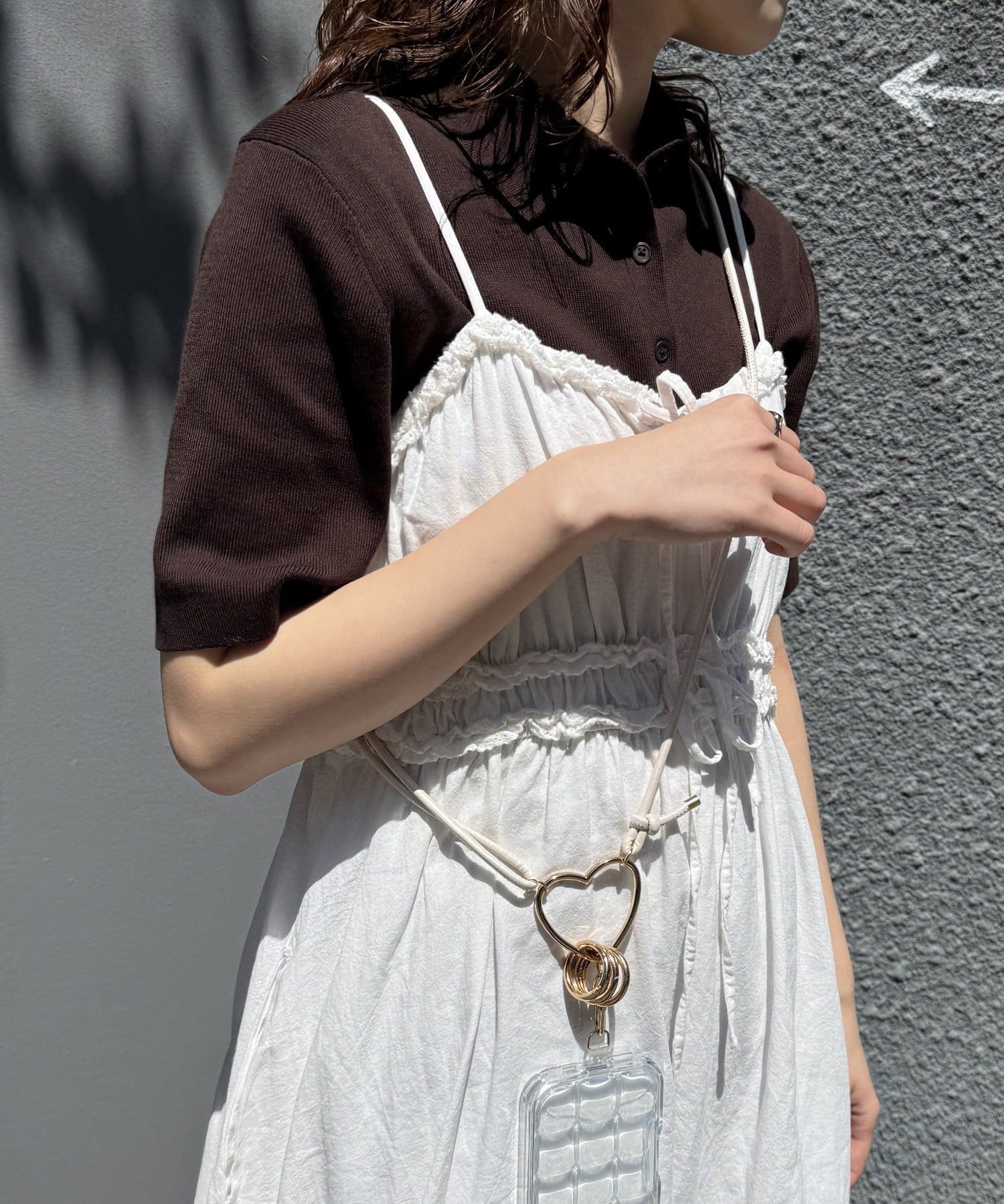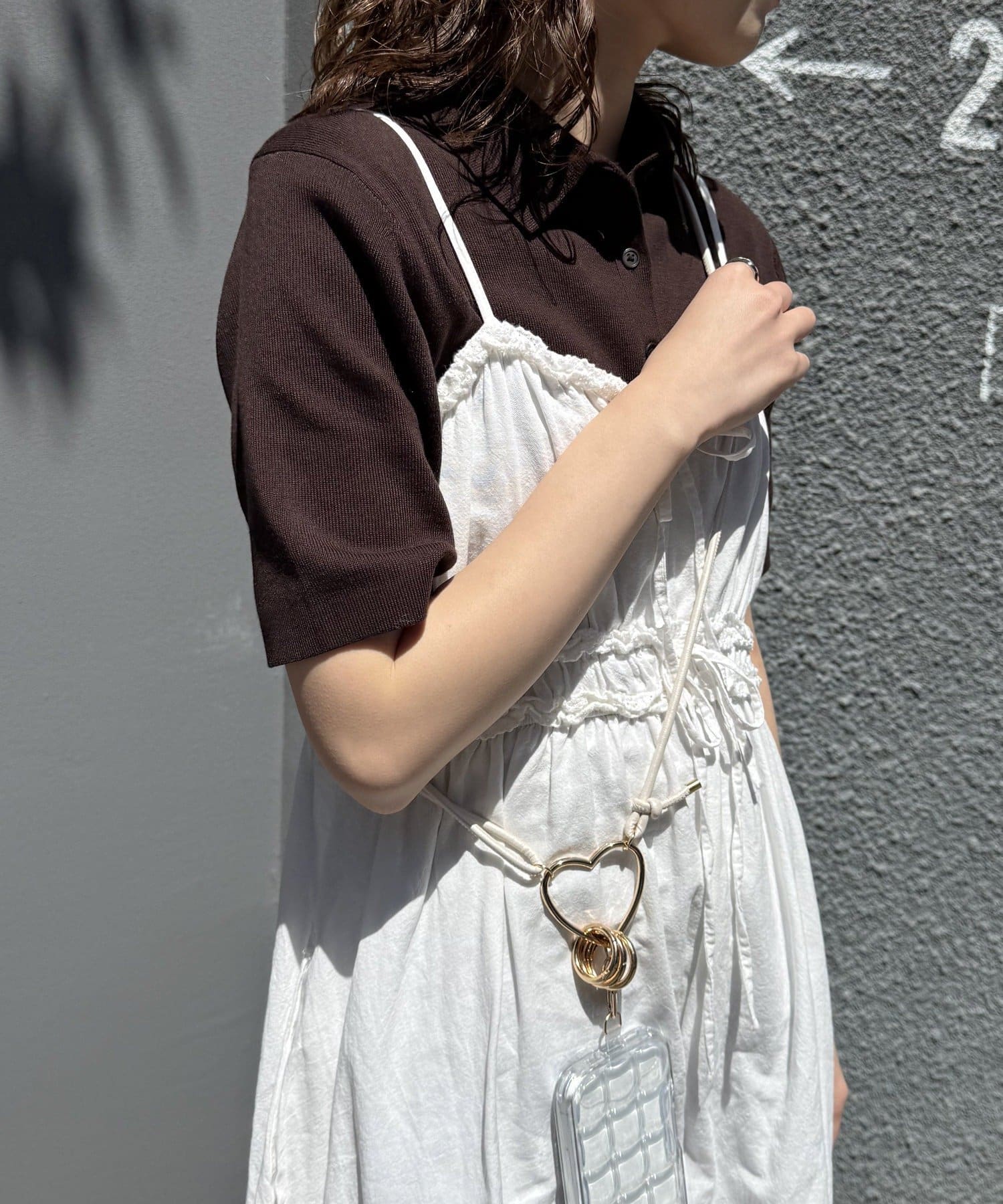 コーディネートの主役になる、大きなハートモチーフがポイントのスマホショルダー
