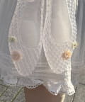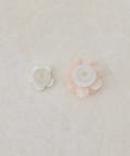 淡いピンクとホワイトのお花に、キラッと光るビジューがアクセントになったフェミニンなデザインです。