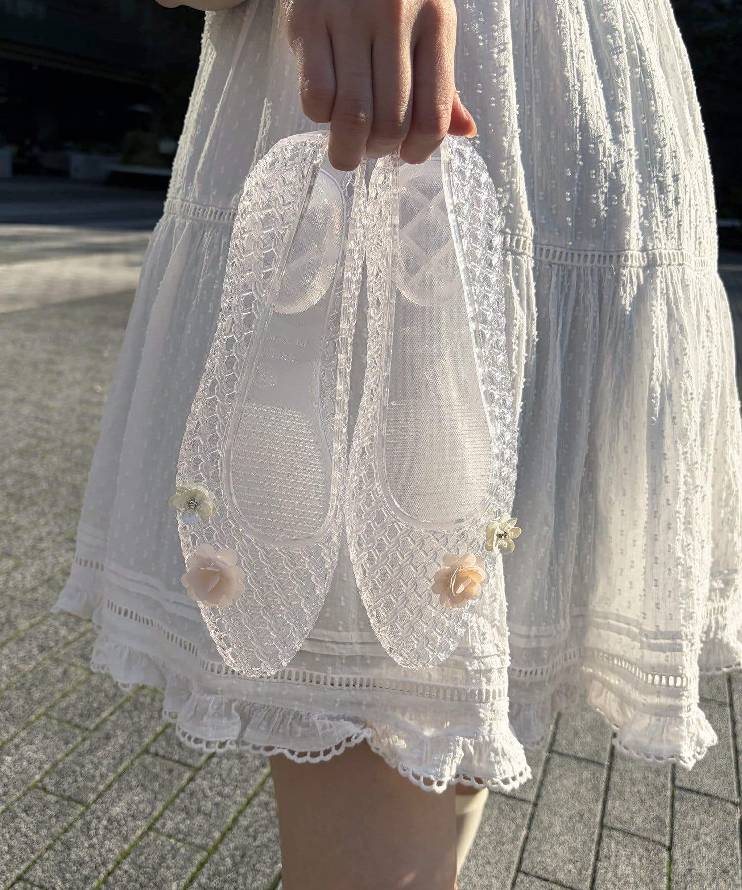 クリアサンダルにつければ、トレンドのバレエコアやY2Kスタイルが完成。