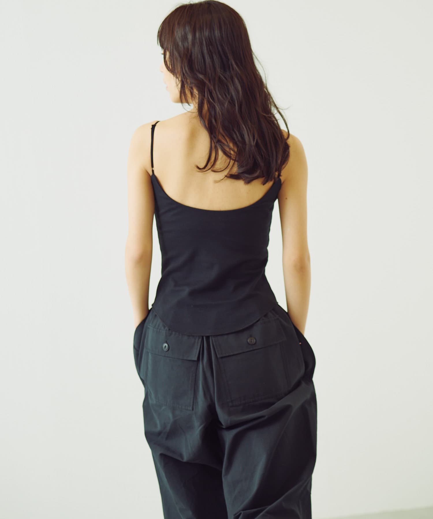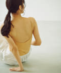また背中を大きく開けているのでバックオープンのトップスにもインナーを気にせず着ていただけます。