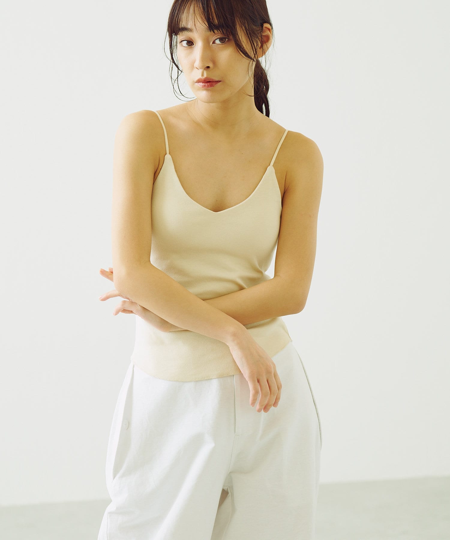胸元を綺麗に見せるヘルシーなVカットのバストラインが特徴のカップ付きキャミソール。