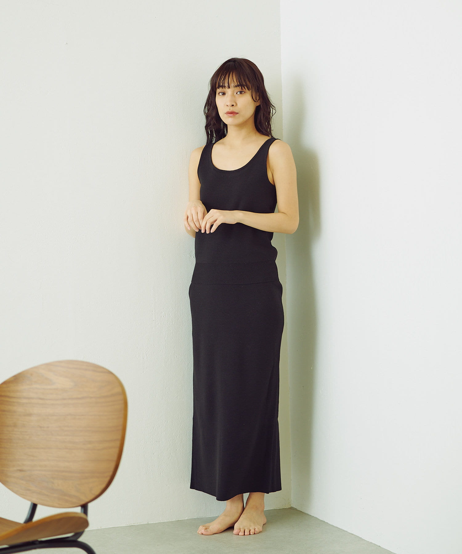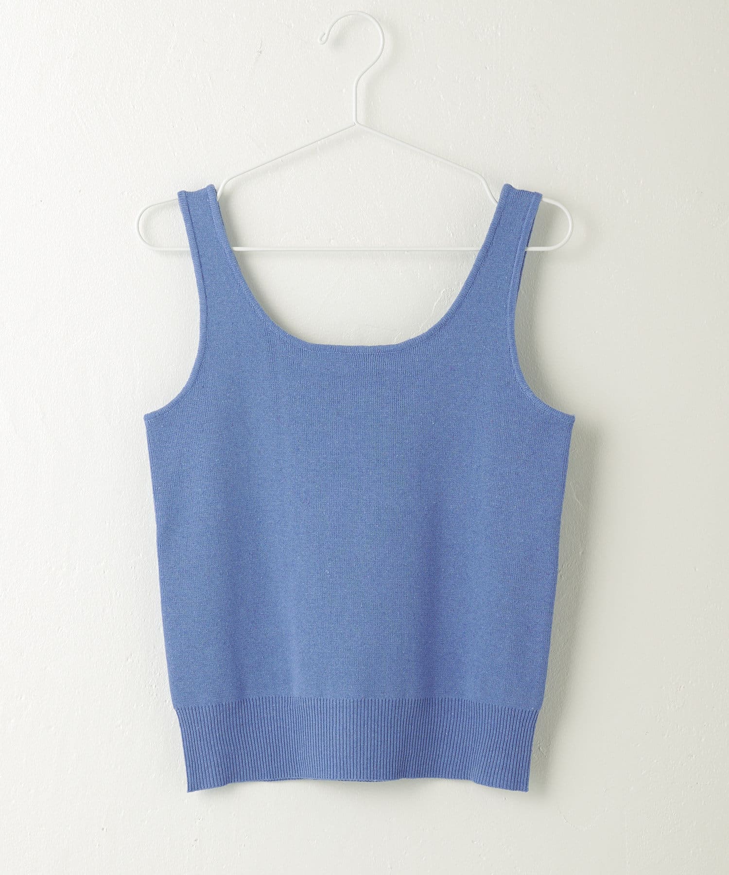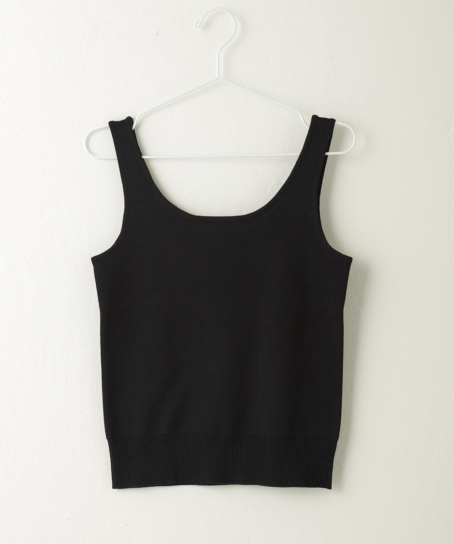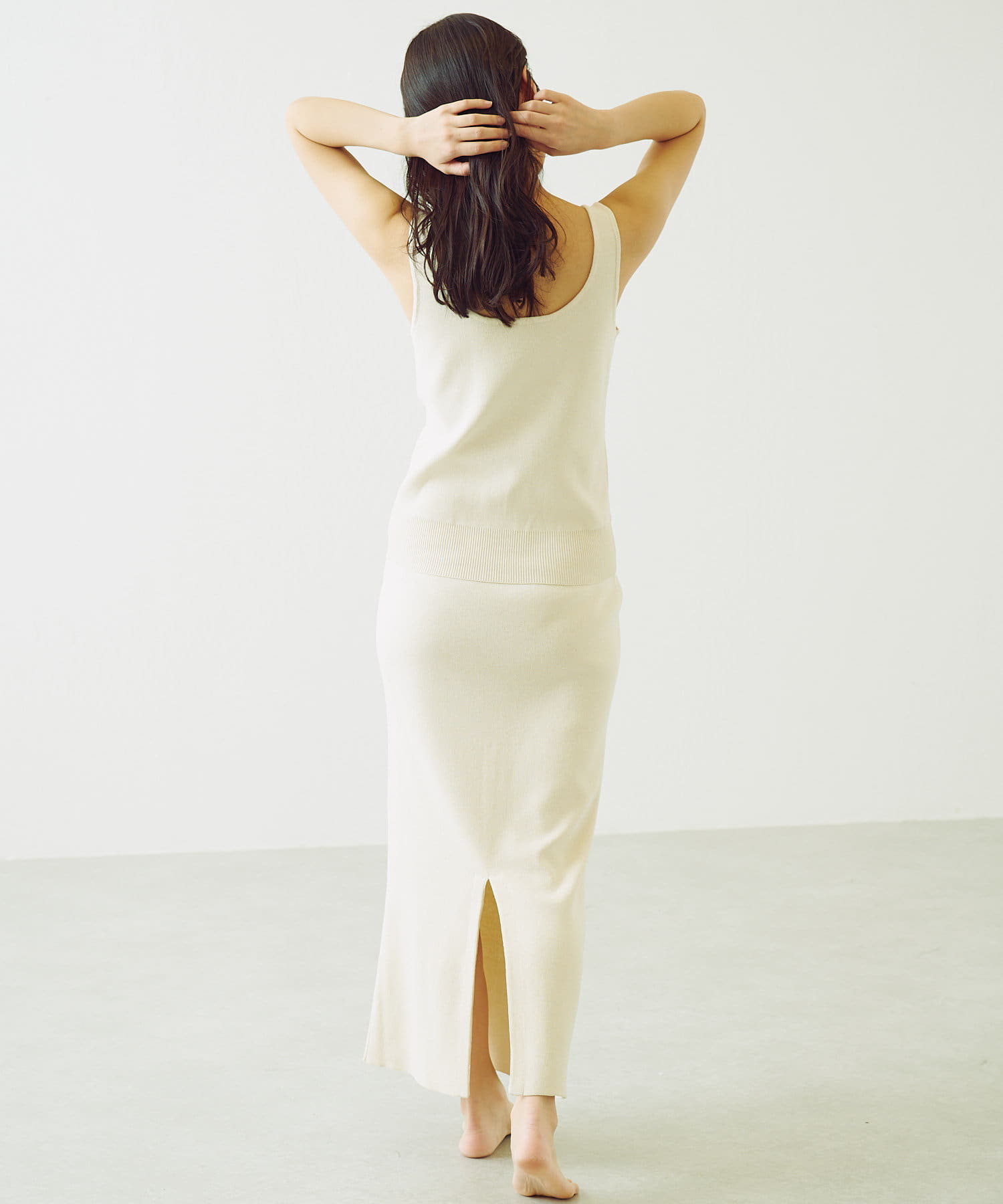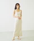 トップスのタンクトップは、程よい胸元の開きがポイント。