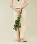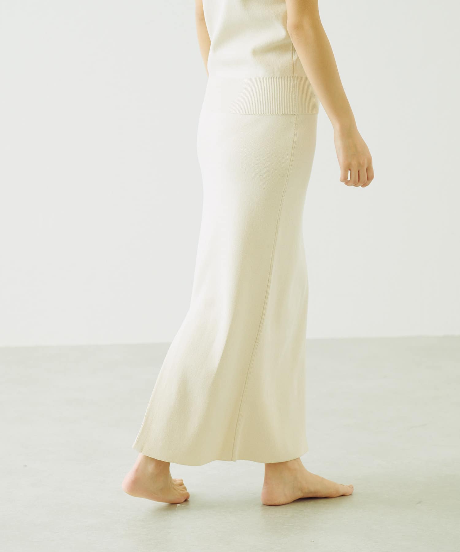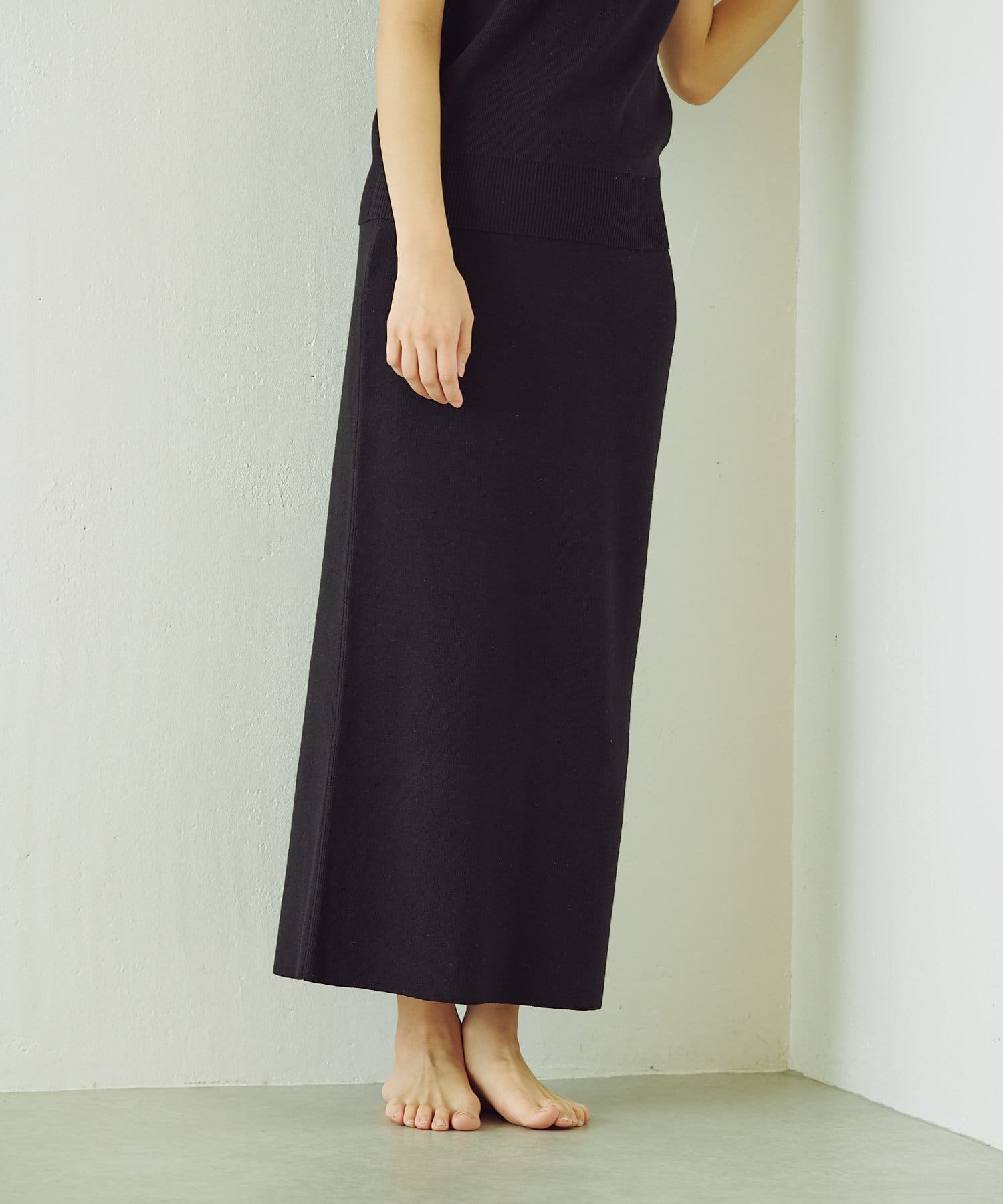 スカートは身体を綺麗に見せてくれるIラインシルエットでスリットもあるため脚さばきも良いデザインです。