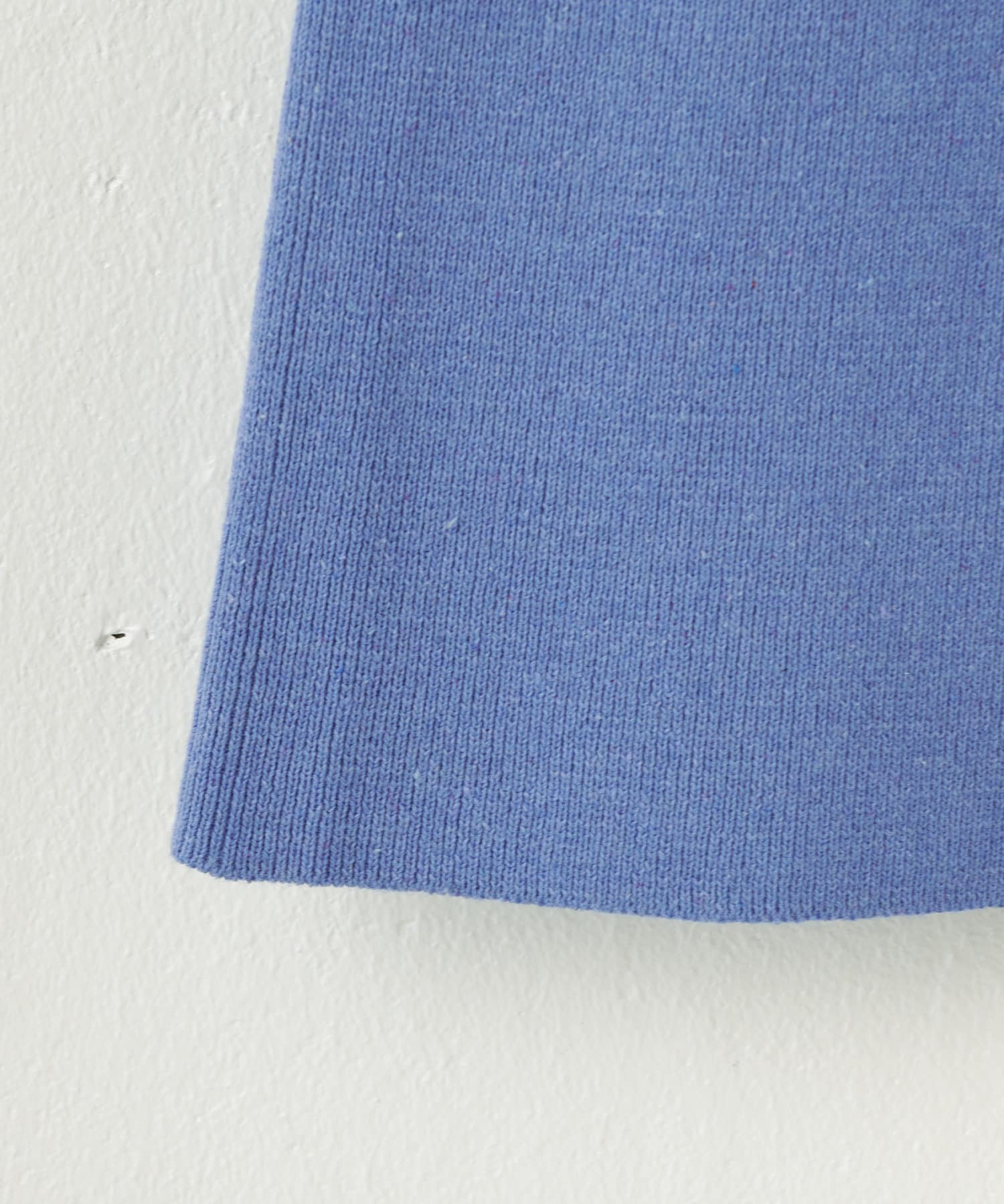 ECORICHと呼ばれる洋服を作る過程ででた裁断くずや生地を回収し、染色をせず、もとの色をそのまま生かした環境にやさしい糸を使用しているので色のムラ感や風合いに個性があるのが魅力。