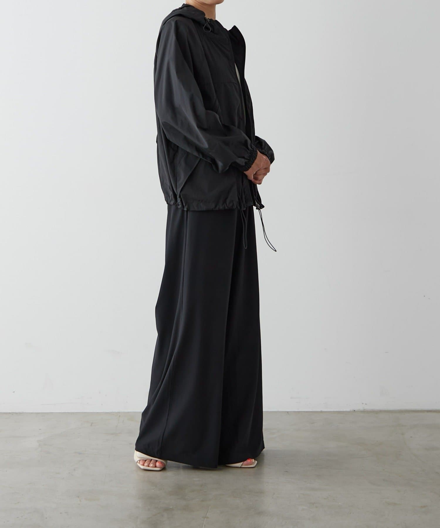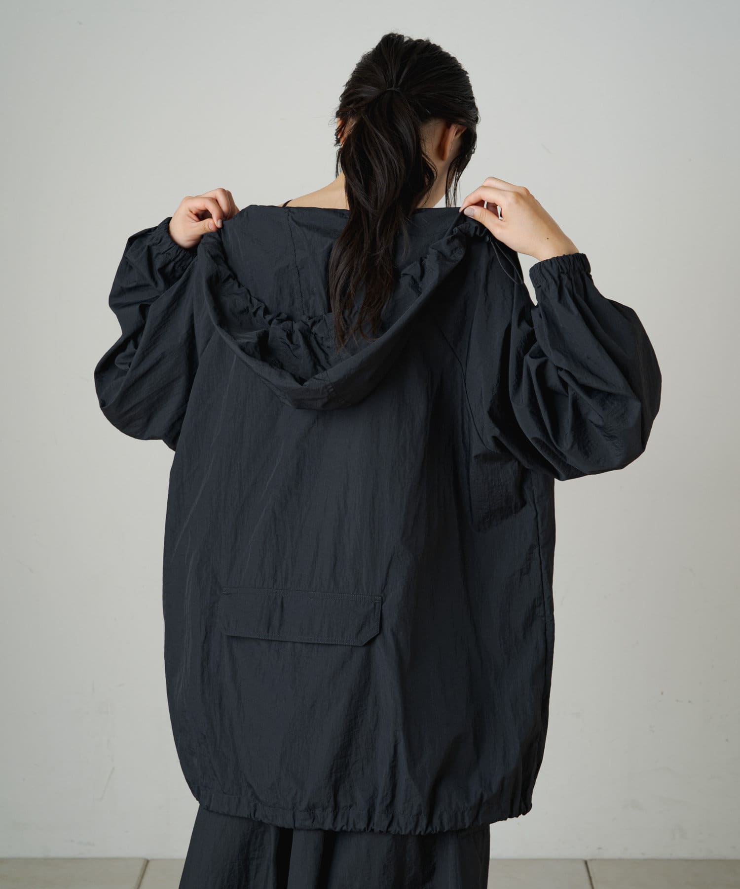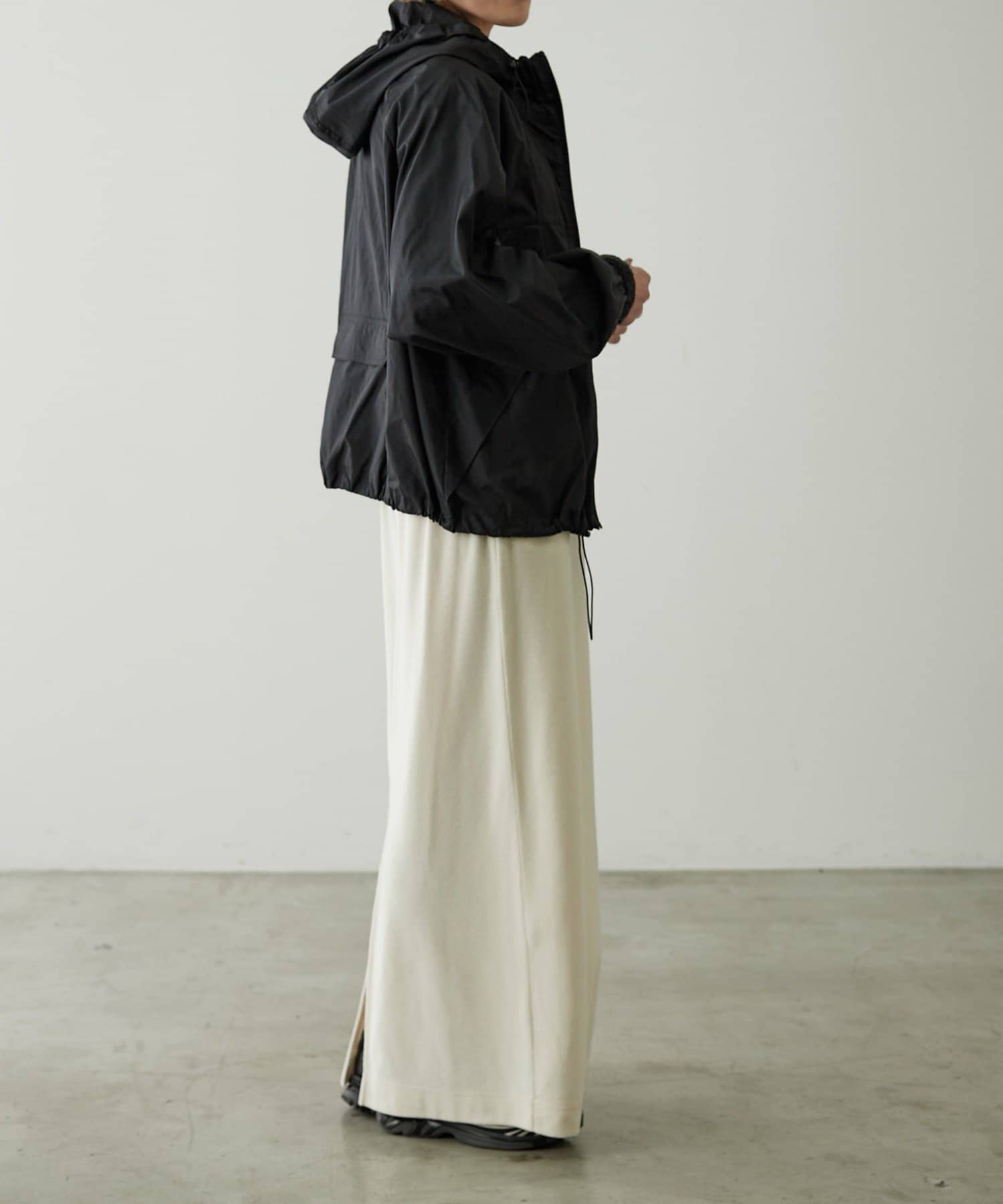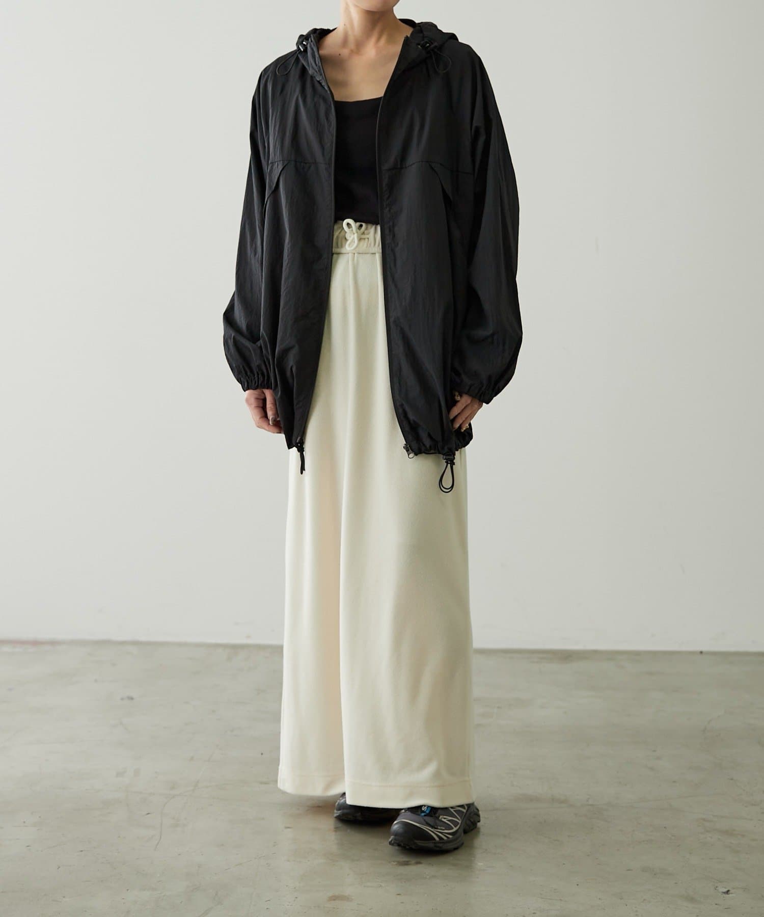 裾周りは、絞ることもできるので、丈感調節や、シルエットが自分好みにアレンジが可能。