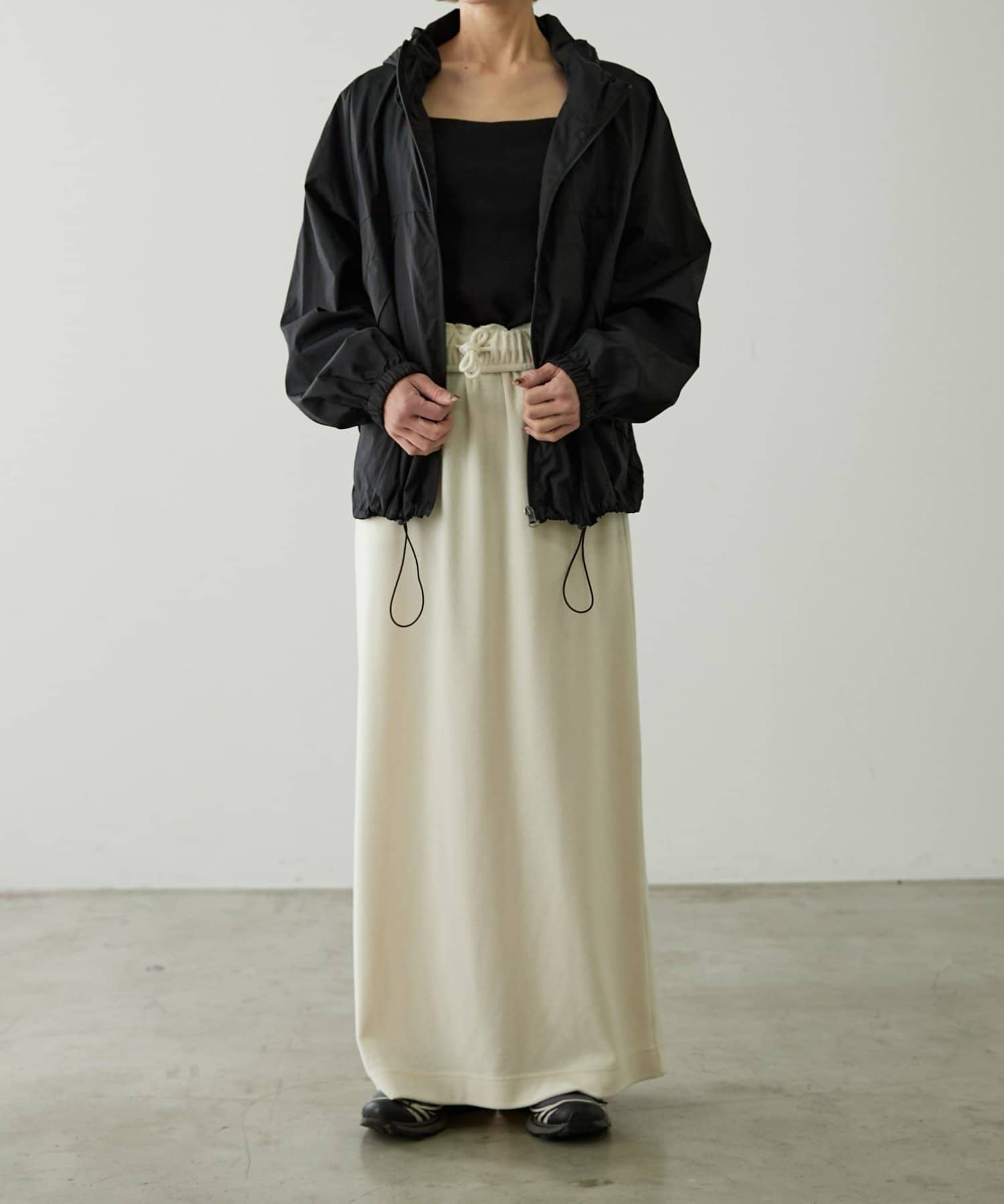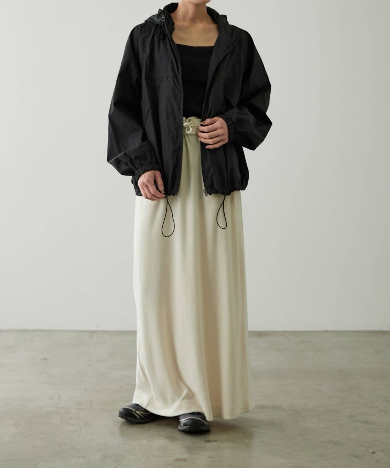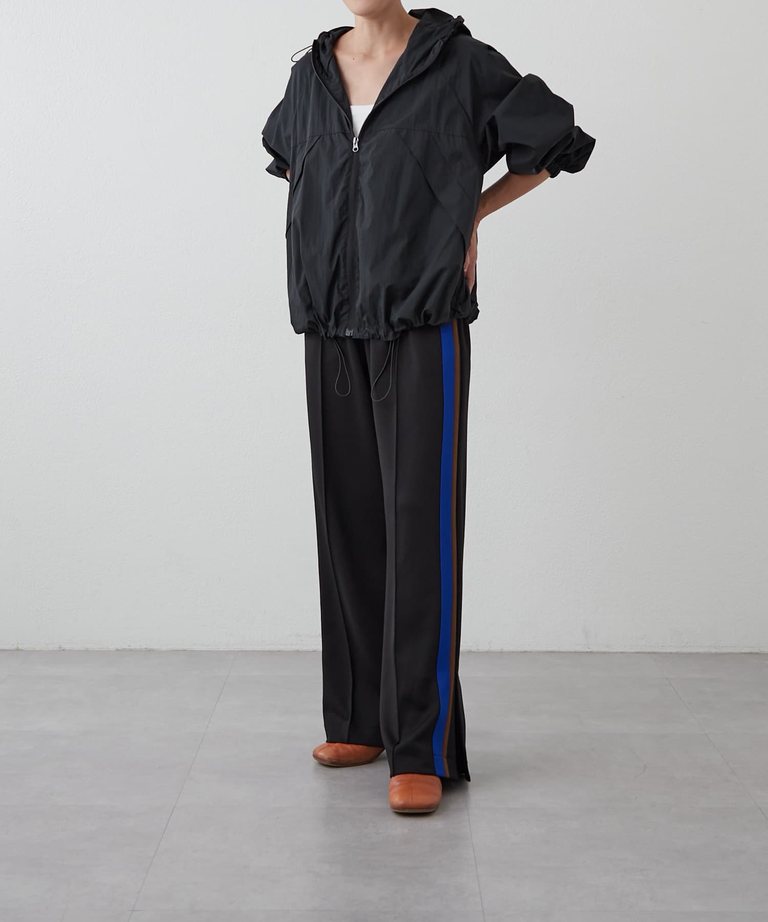 裾周りは、絞ることもできるので、丈感調節や、シルエットが自分好みにアレンジが可能。