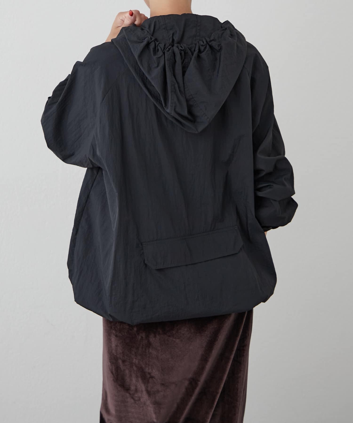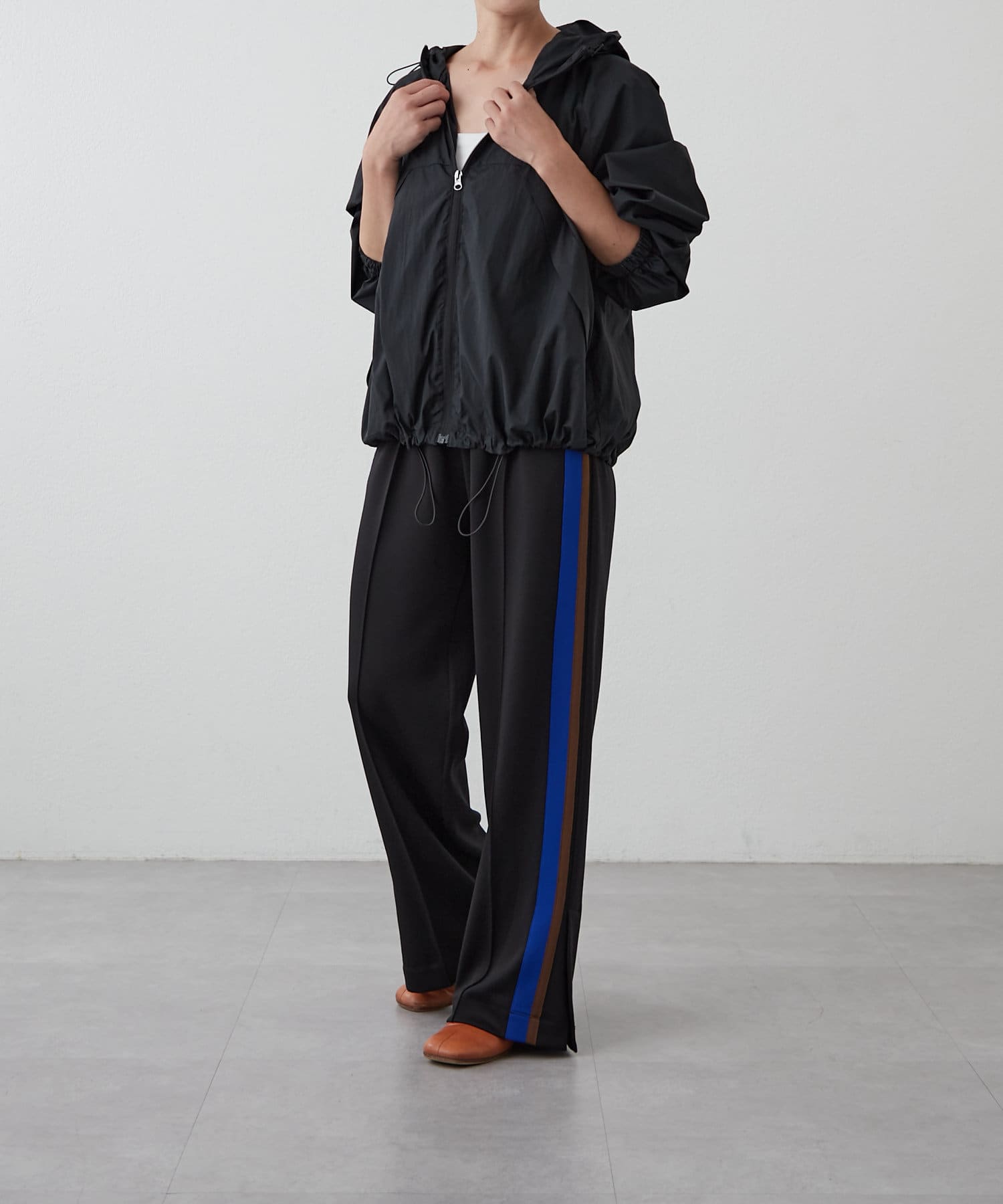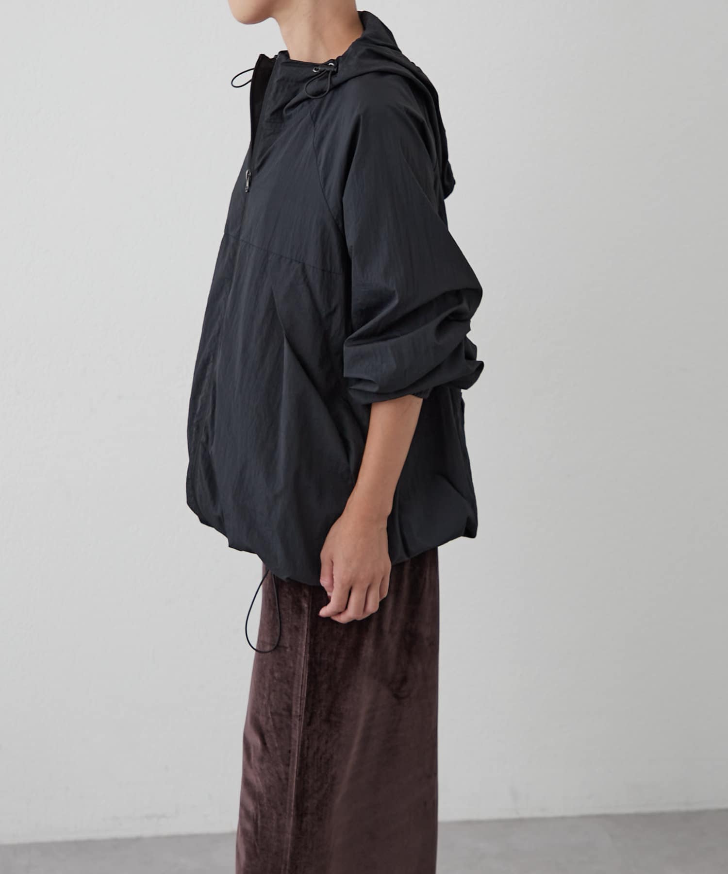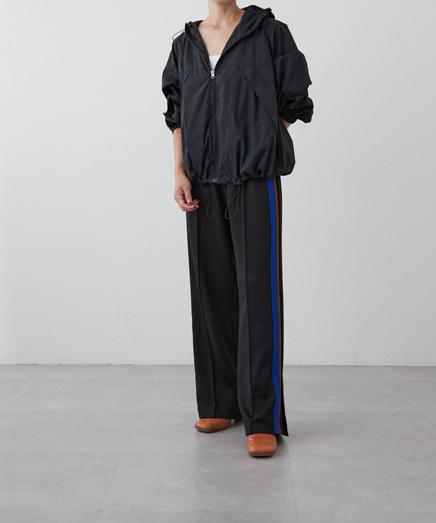裾周りは、絞ることもできるので、丈感調節や、シルエットが自分好みにアレンジが可能。