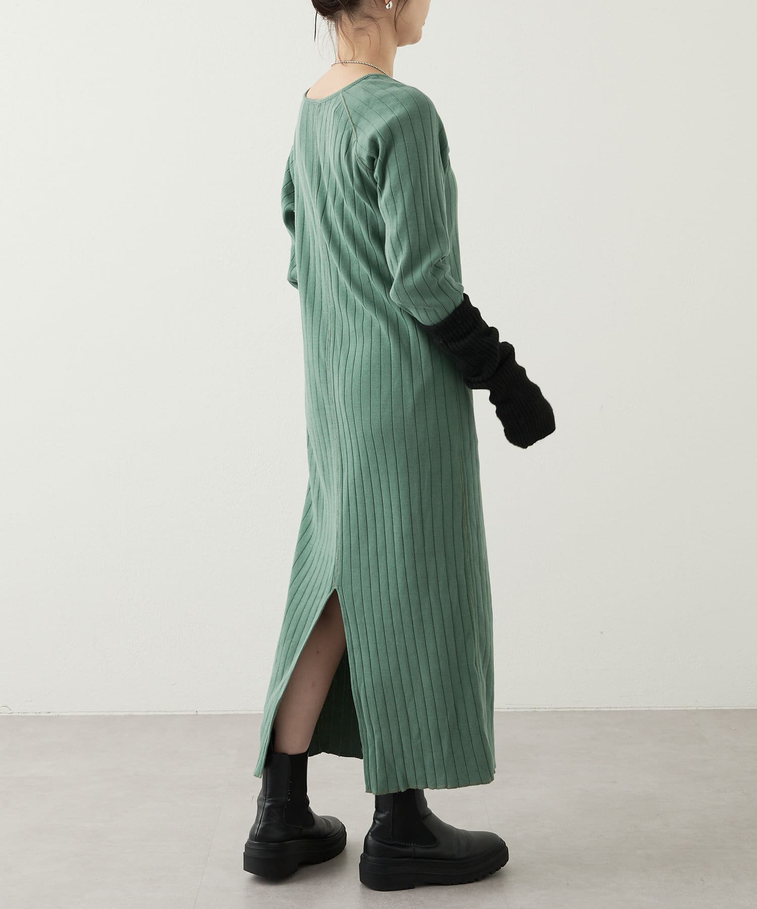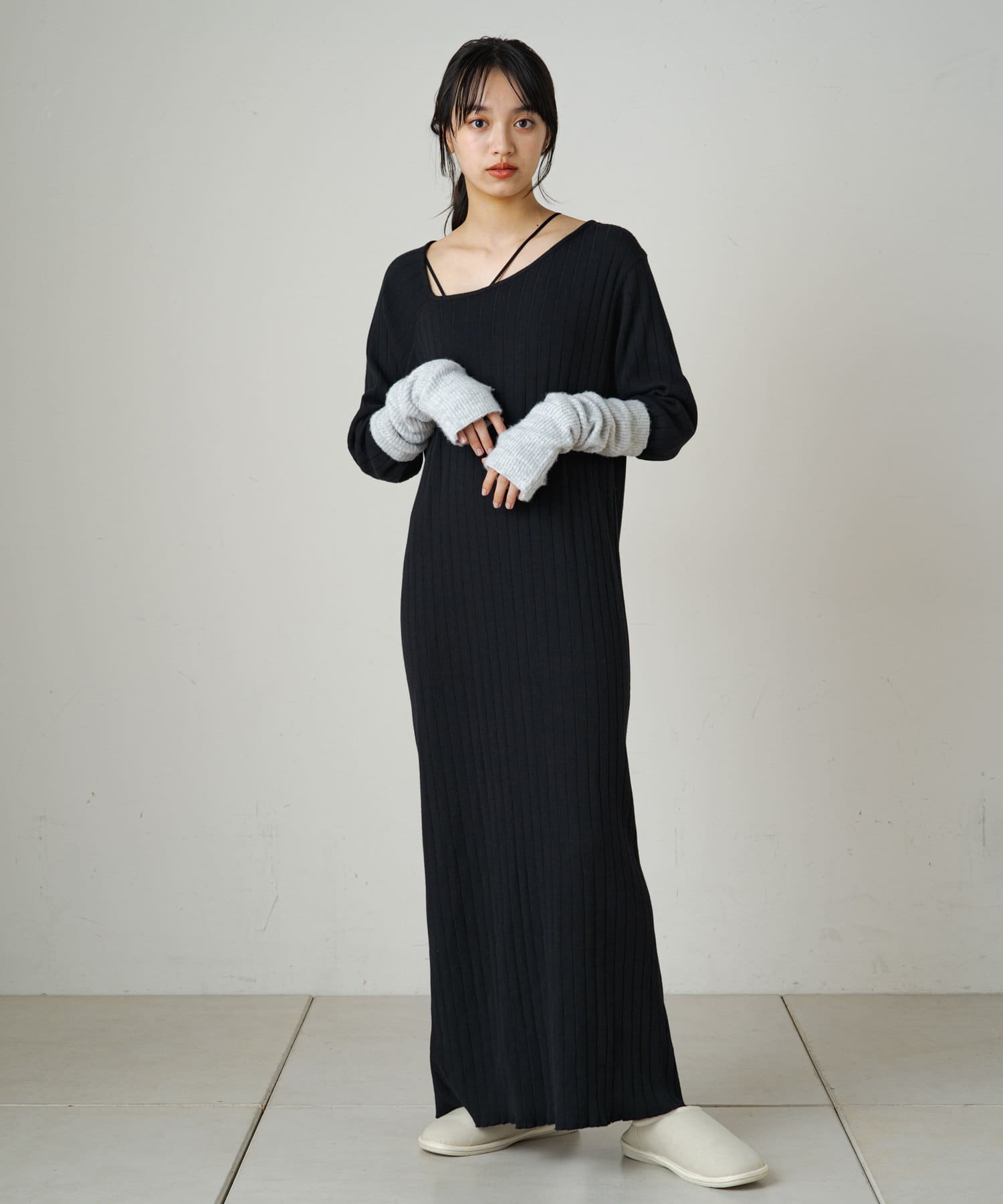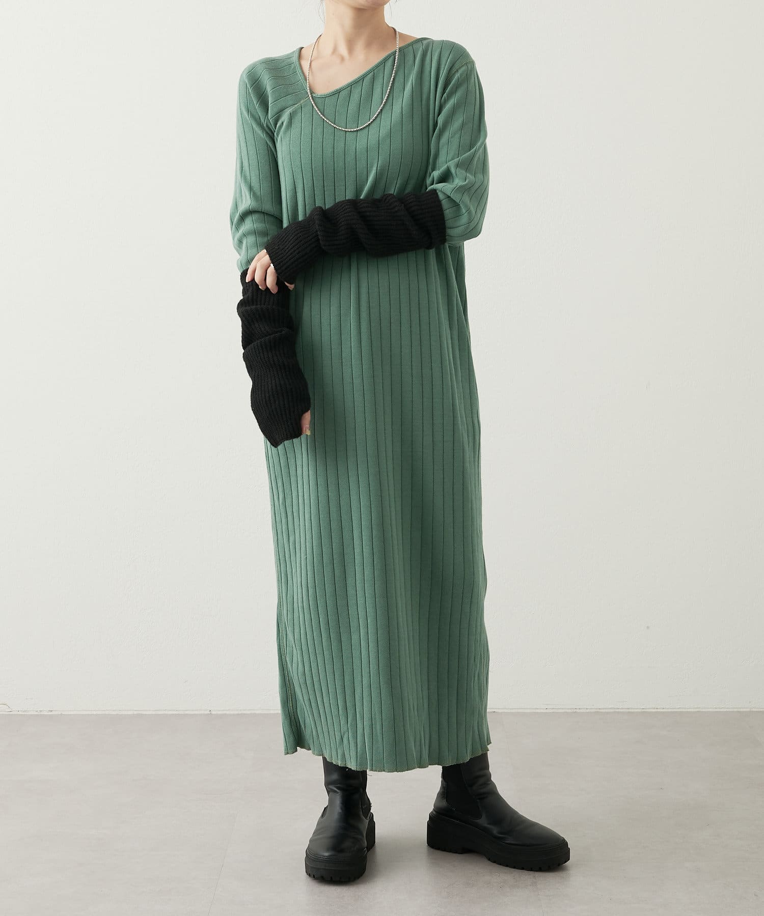 ・単体での着こなしも存在感がありますが、トップスにカーディガンやシャツをあわせても着回しを楽しんでいただけます。