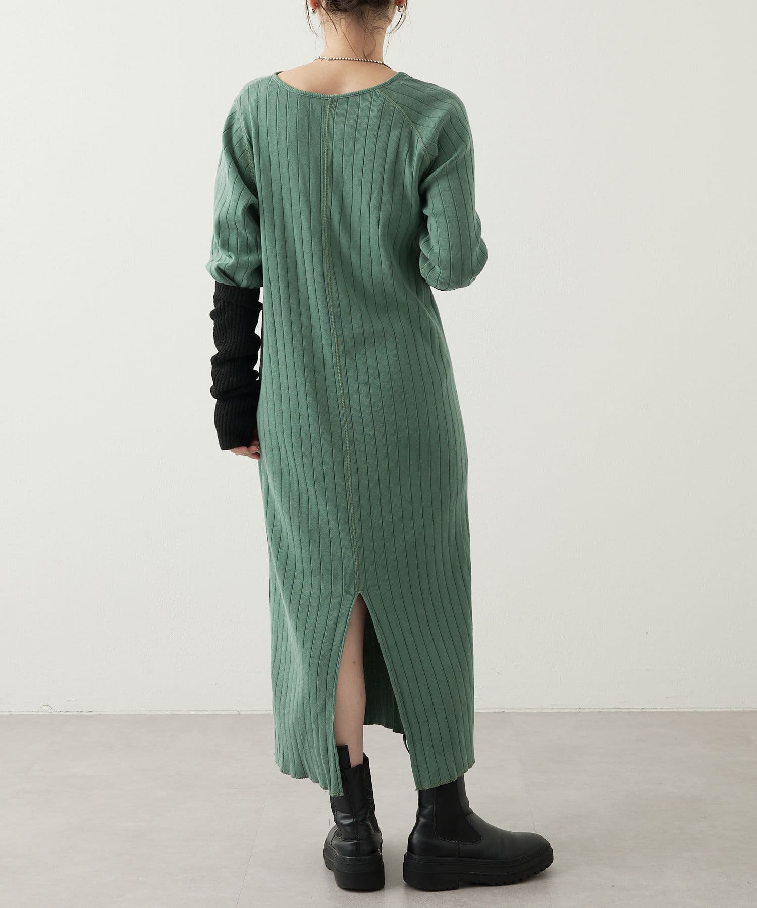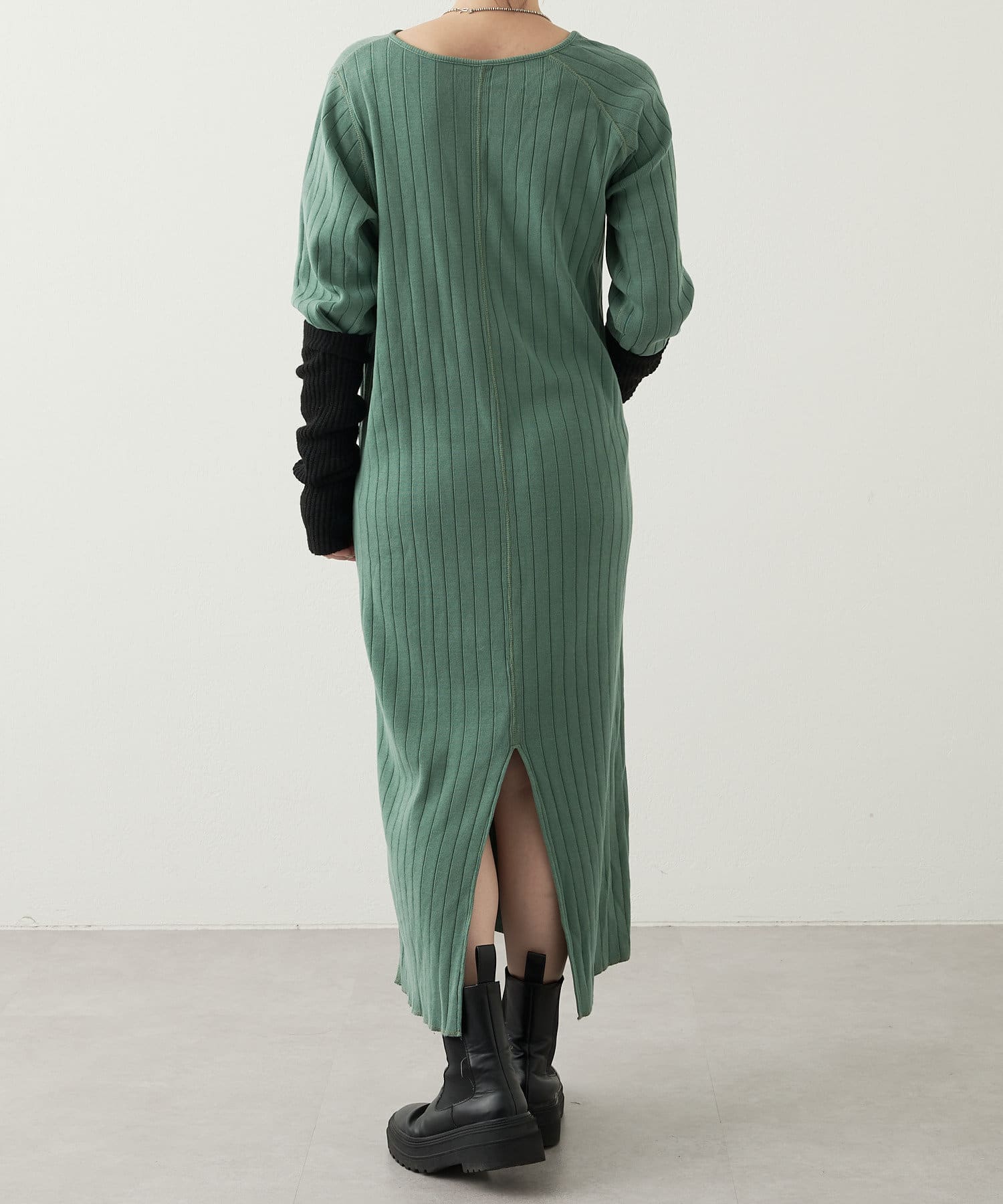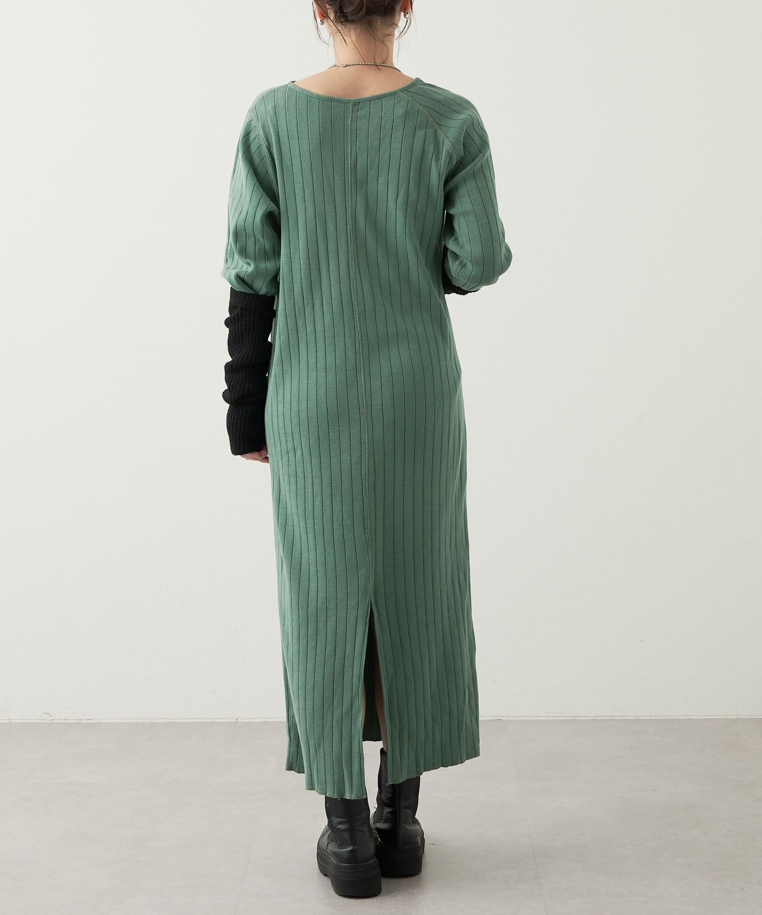 ・単体での着こなしも存在感がありますが、トップスにカーディガンやシャツをあわせても着回しを楽しんでいただけます。