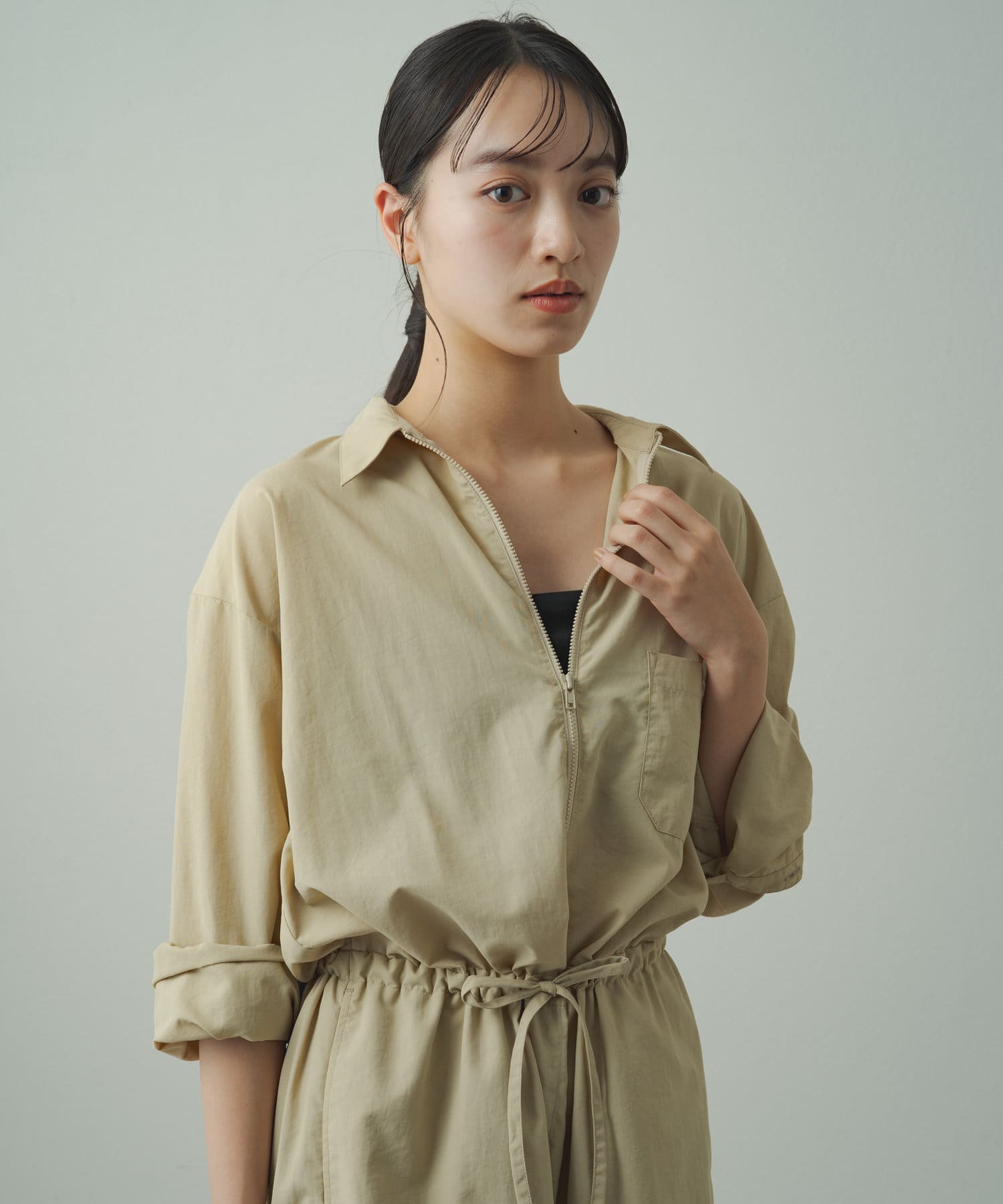 ・前開きのジップになっていて、開き具合を調節が出来るので、インナーを見せるアレンジも◎