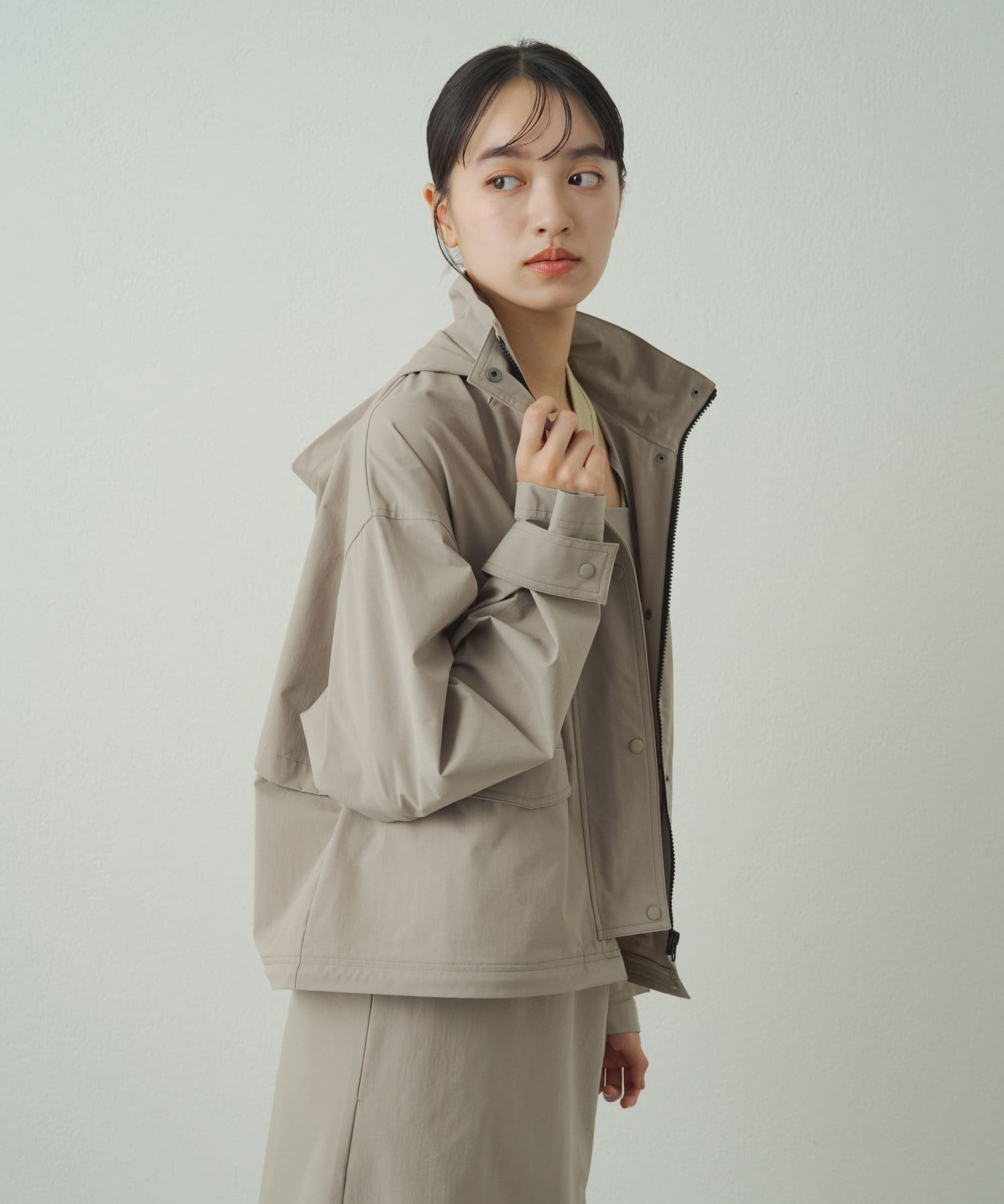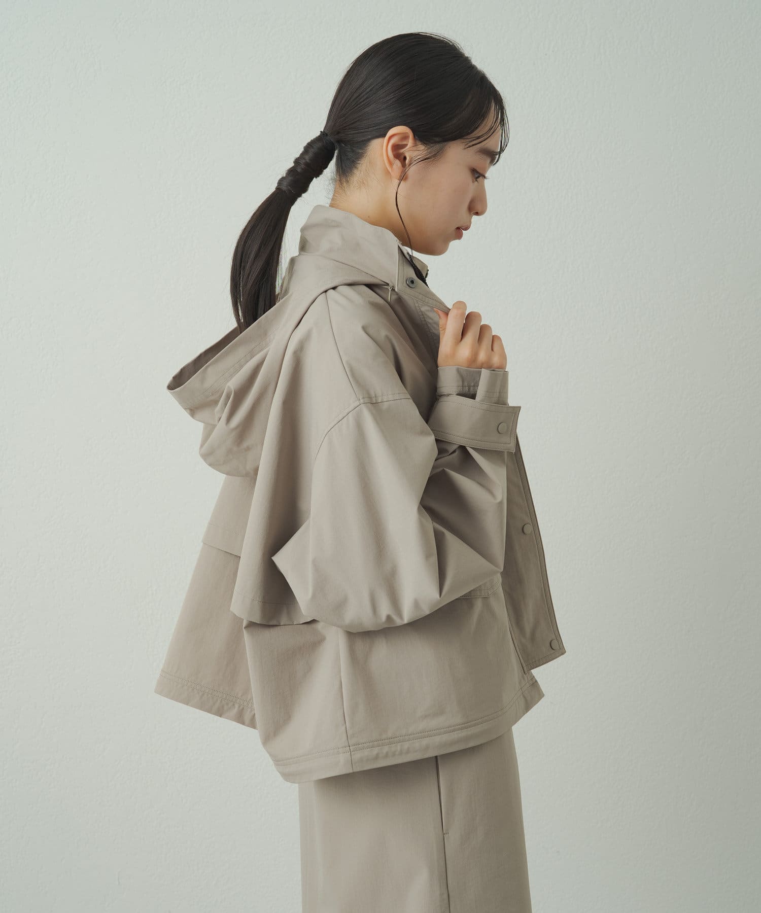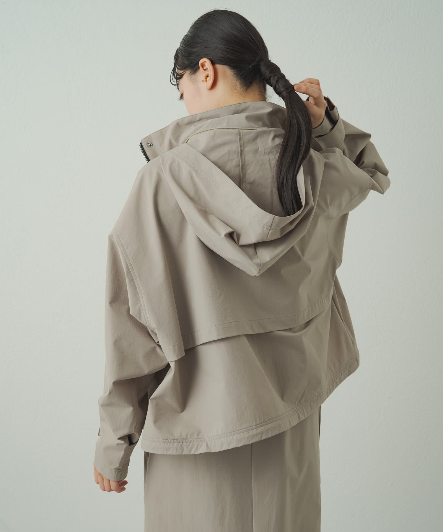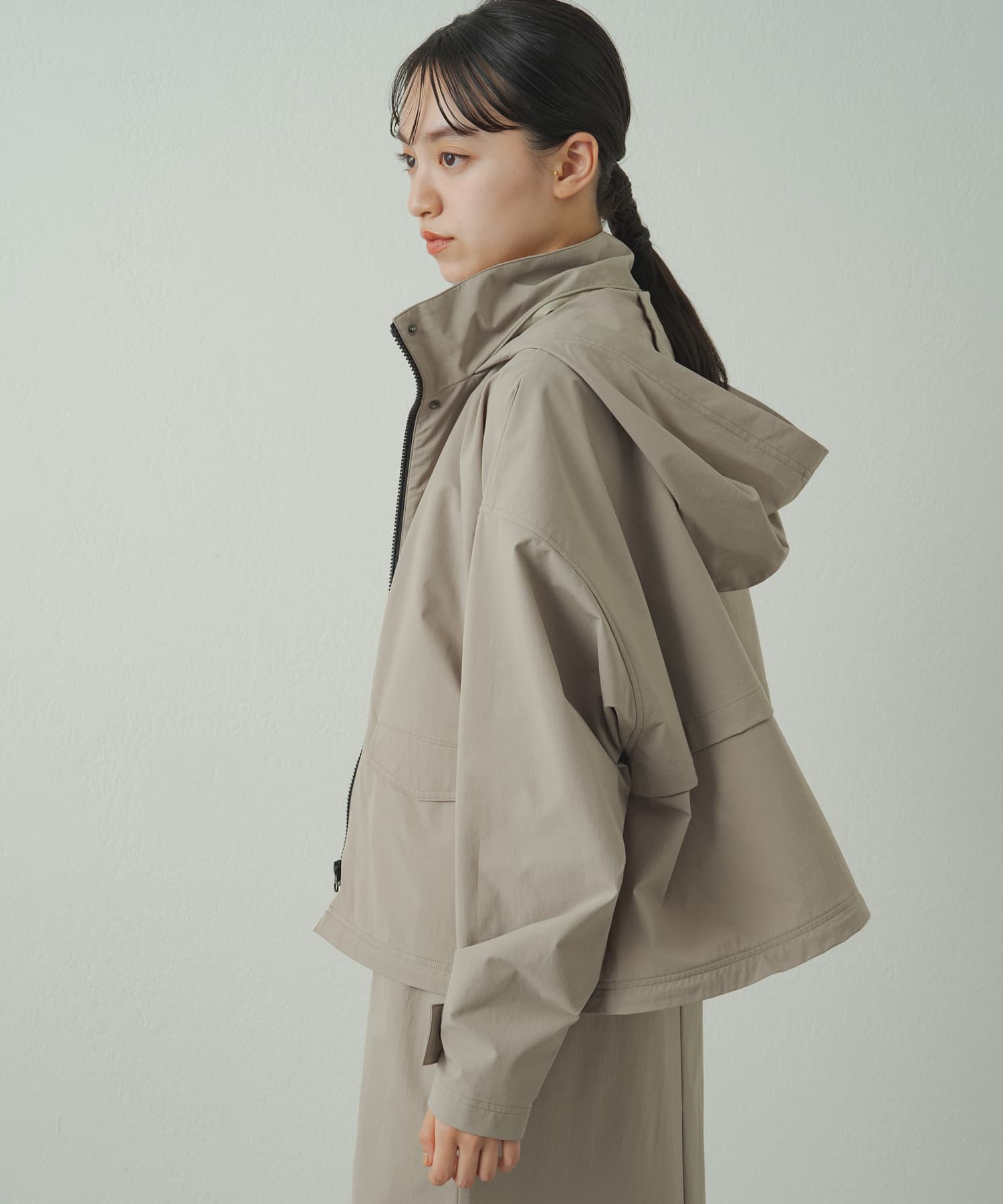 • フードを収納するとすっきりとした印象に!