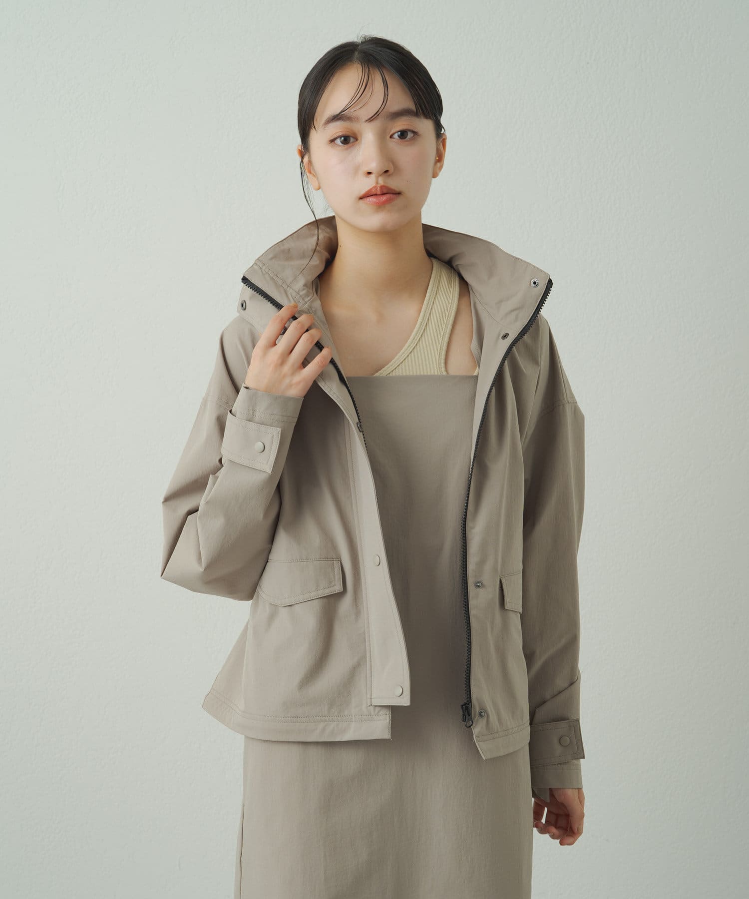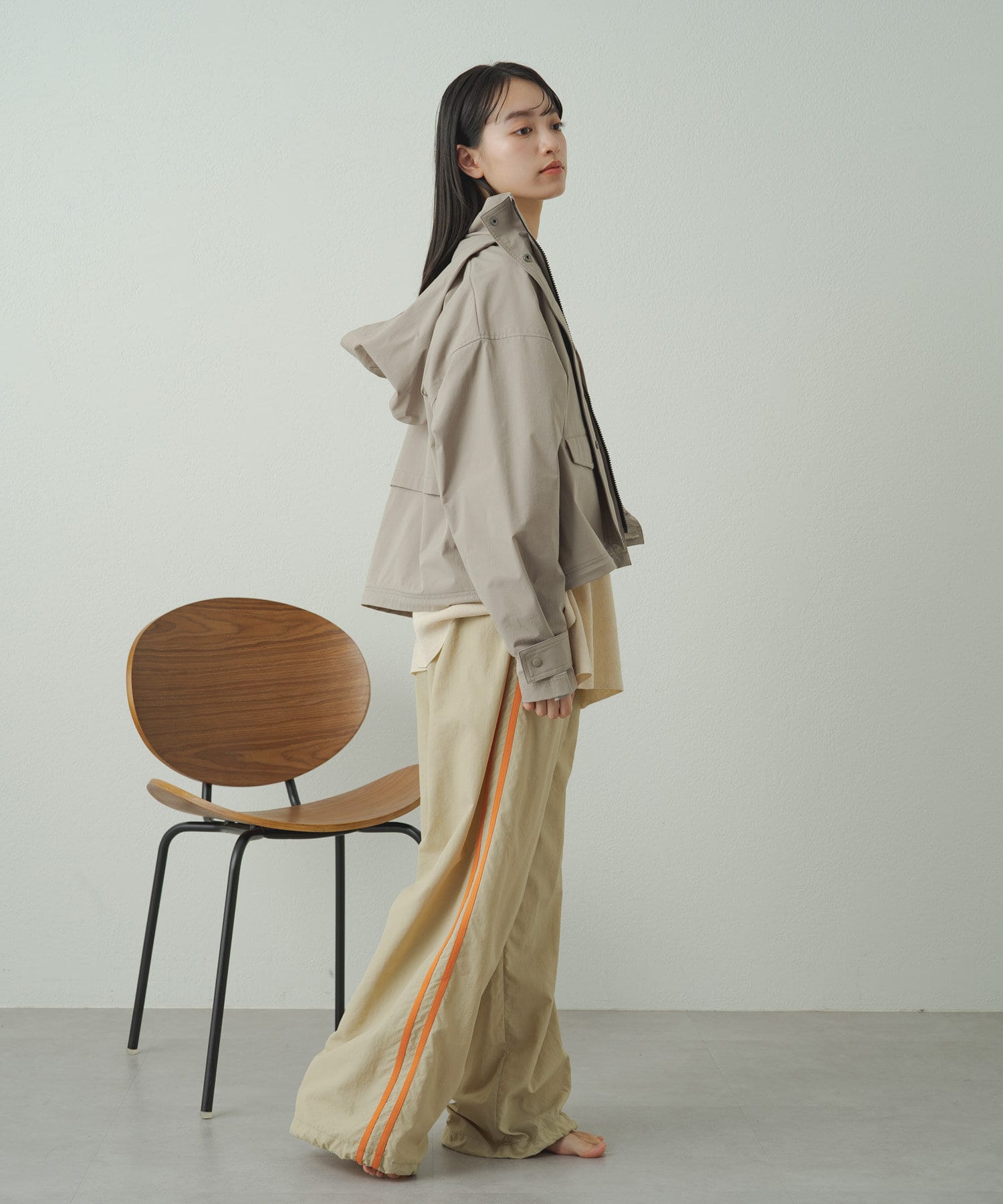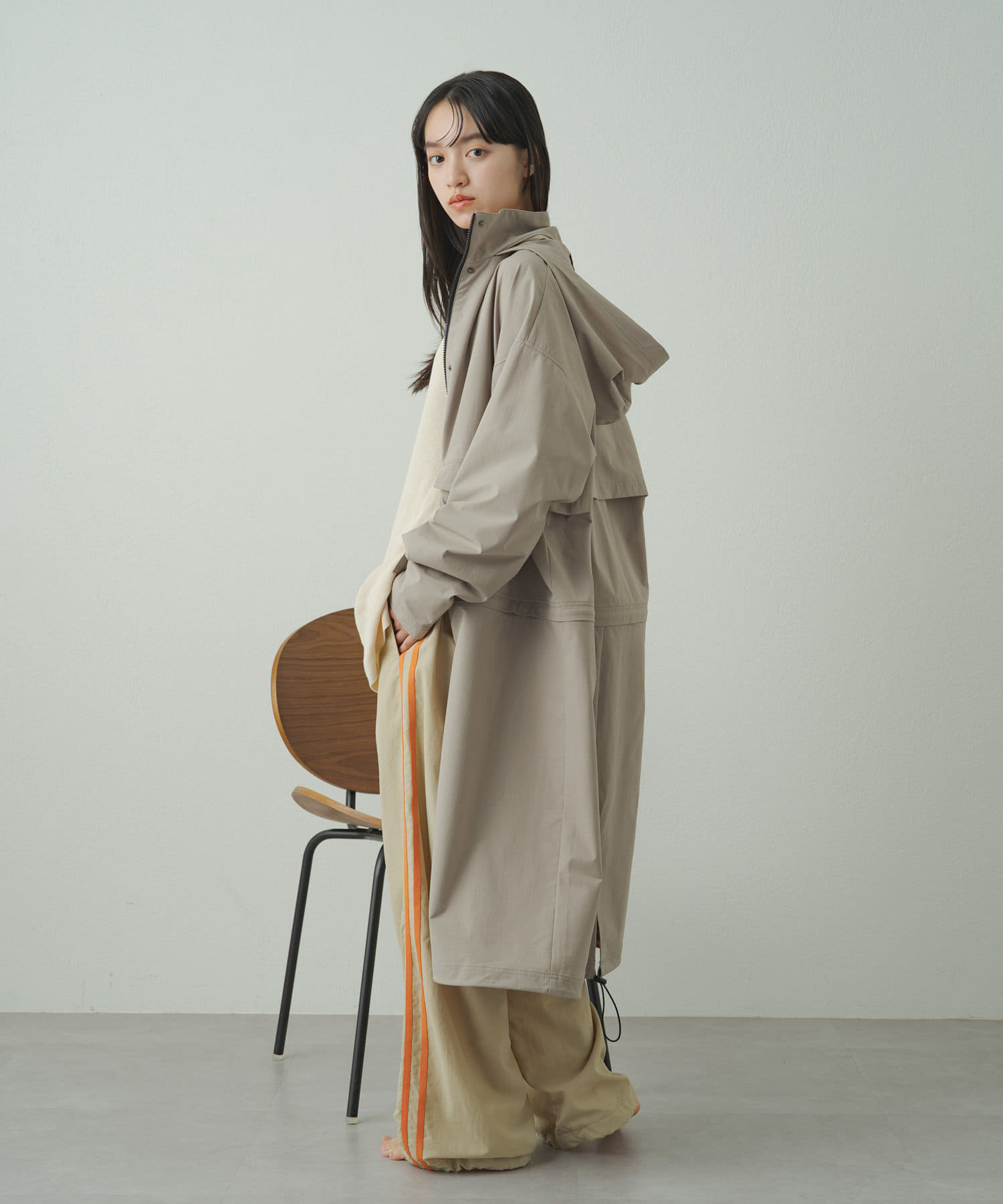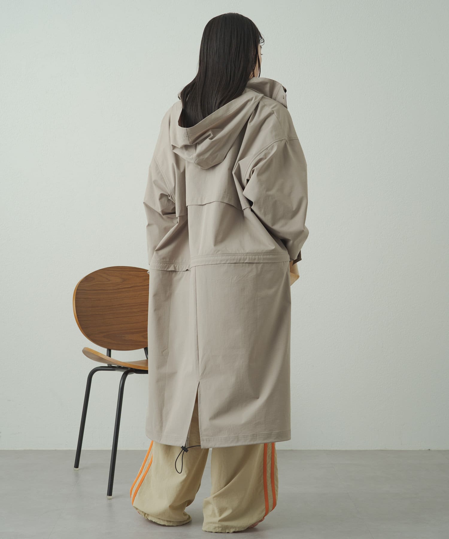 • フードを収納するとすっきりとした印象に!