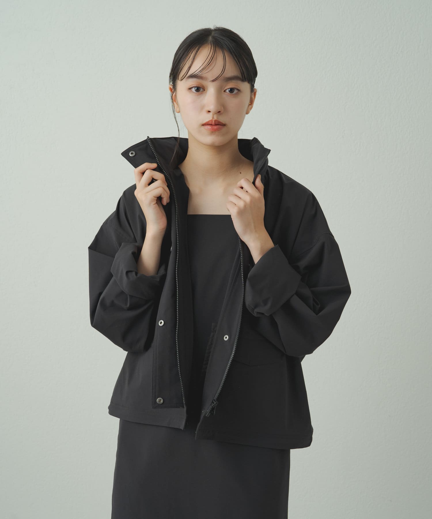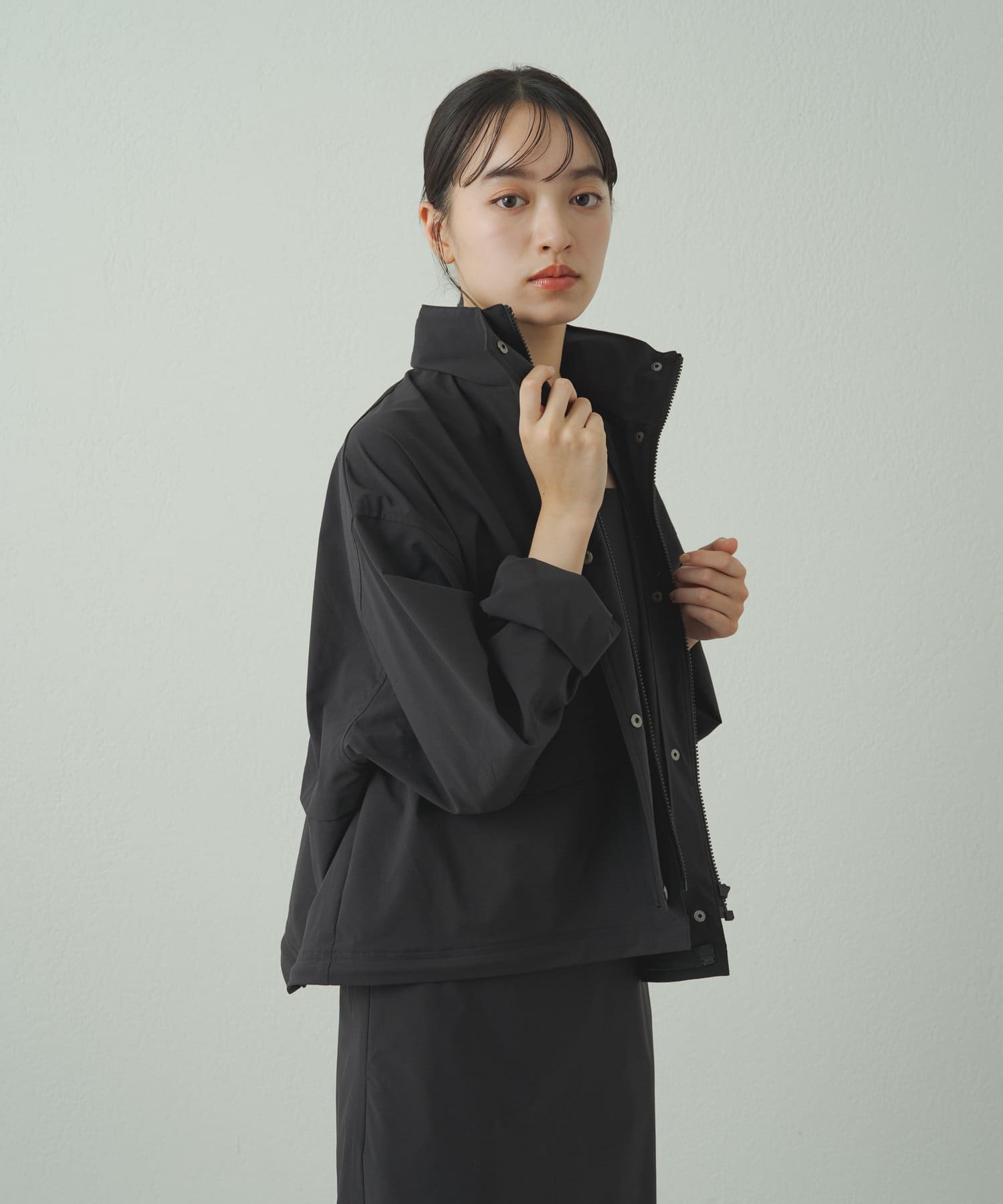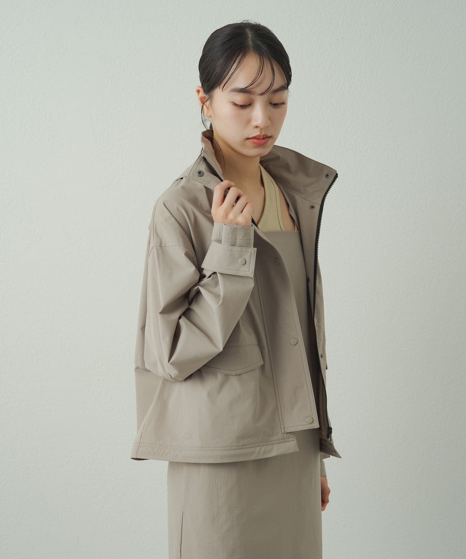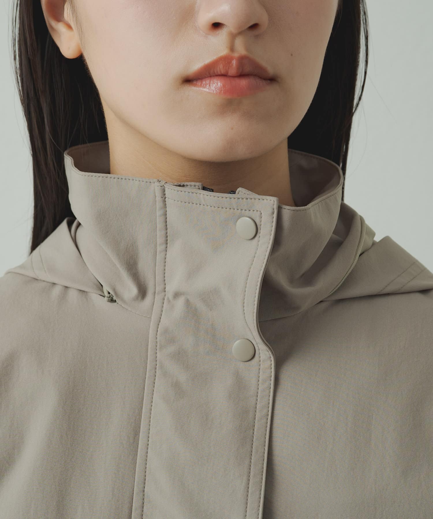 • フードを収納するとすっきりとした印象に!