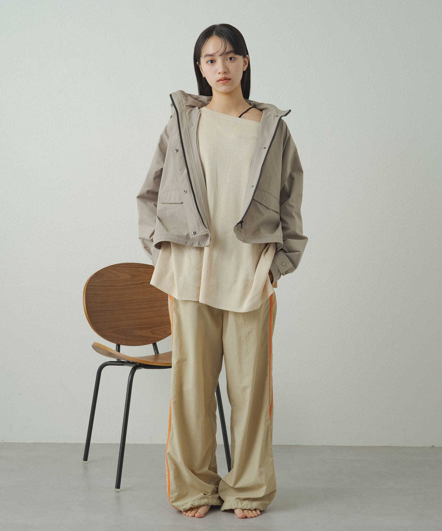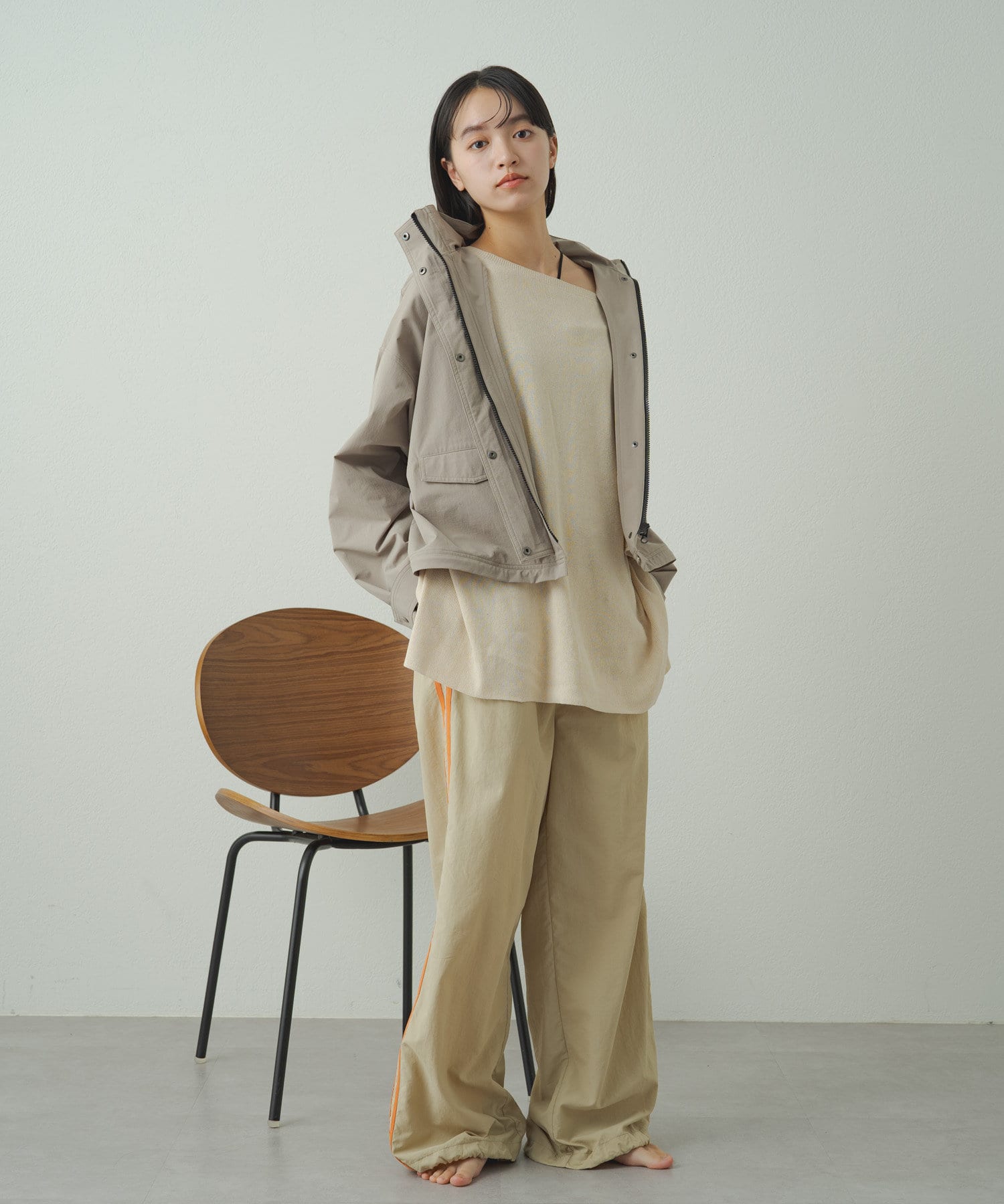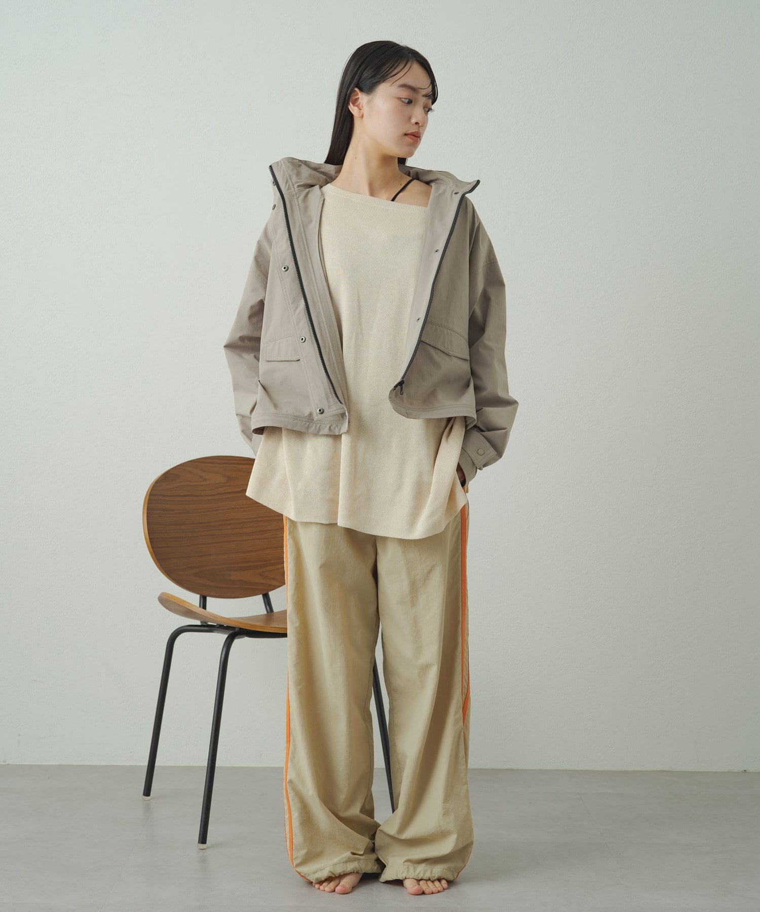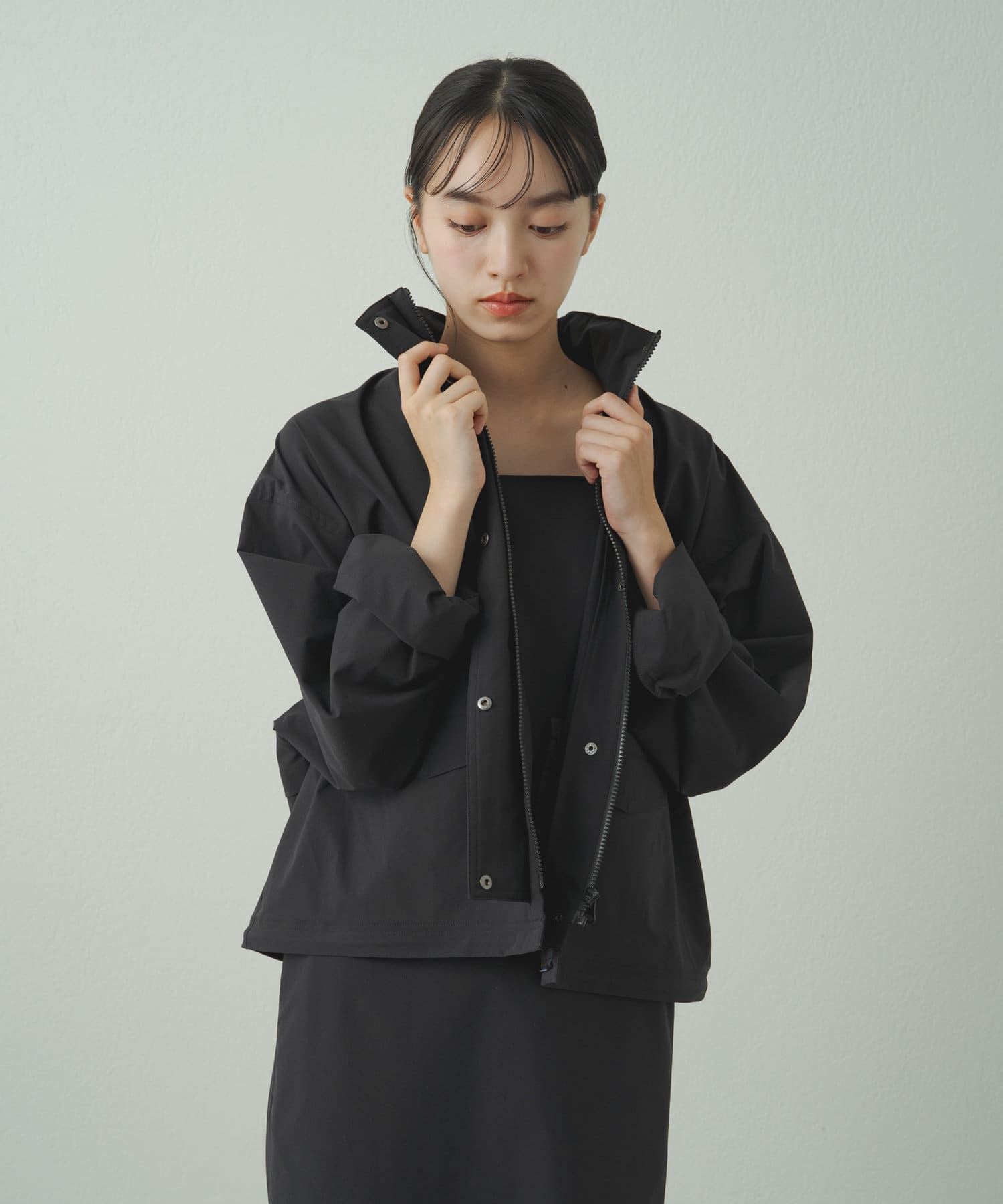 • フードを収納するとすっきりとした印象に!