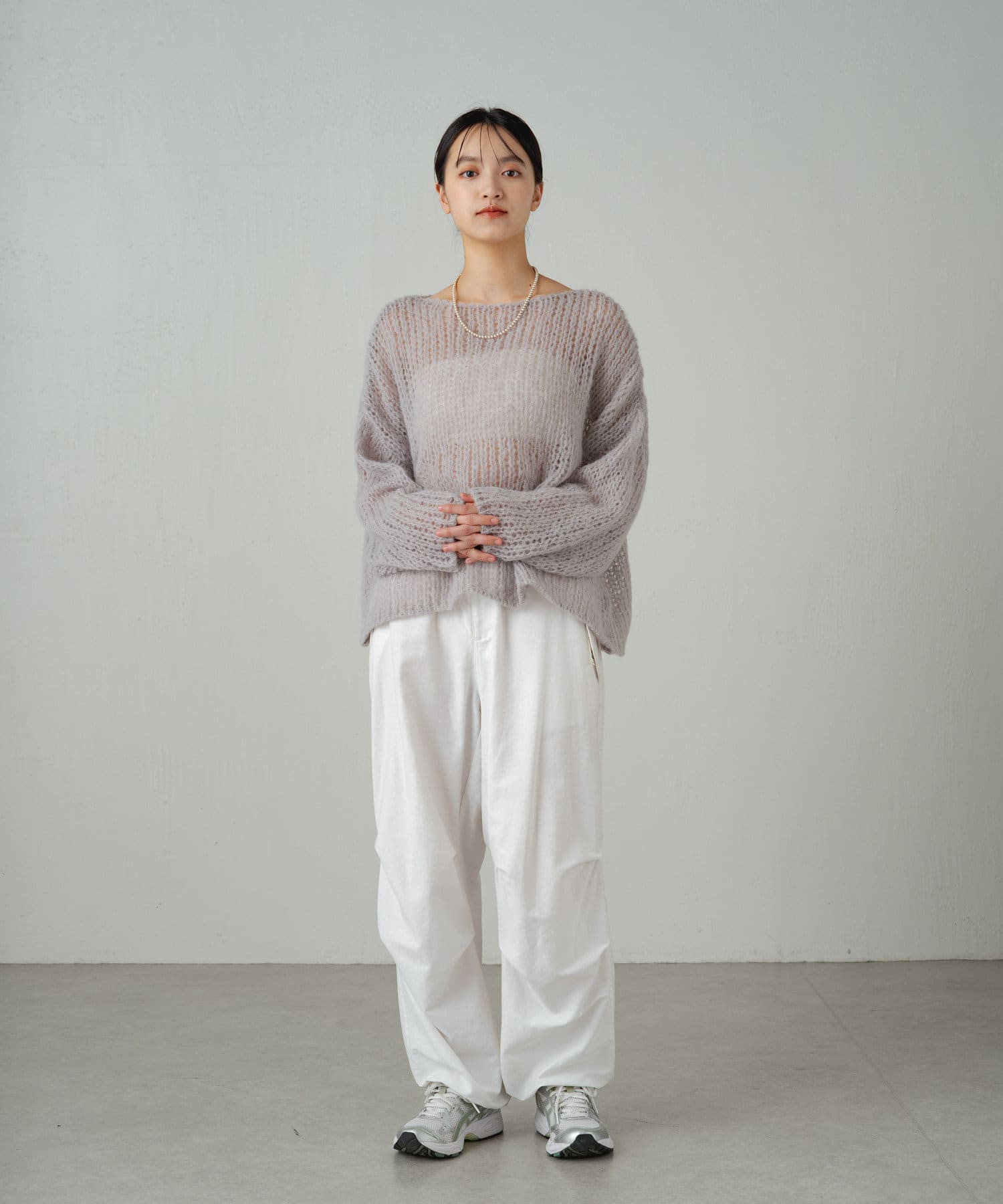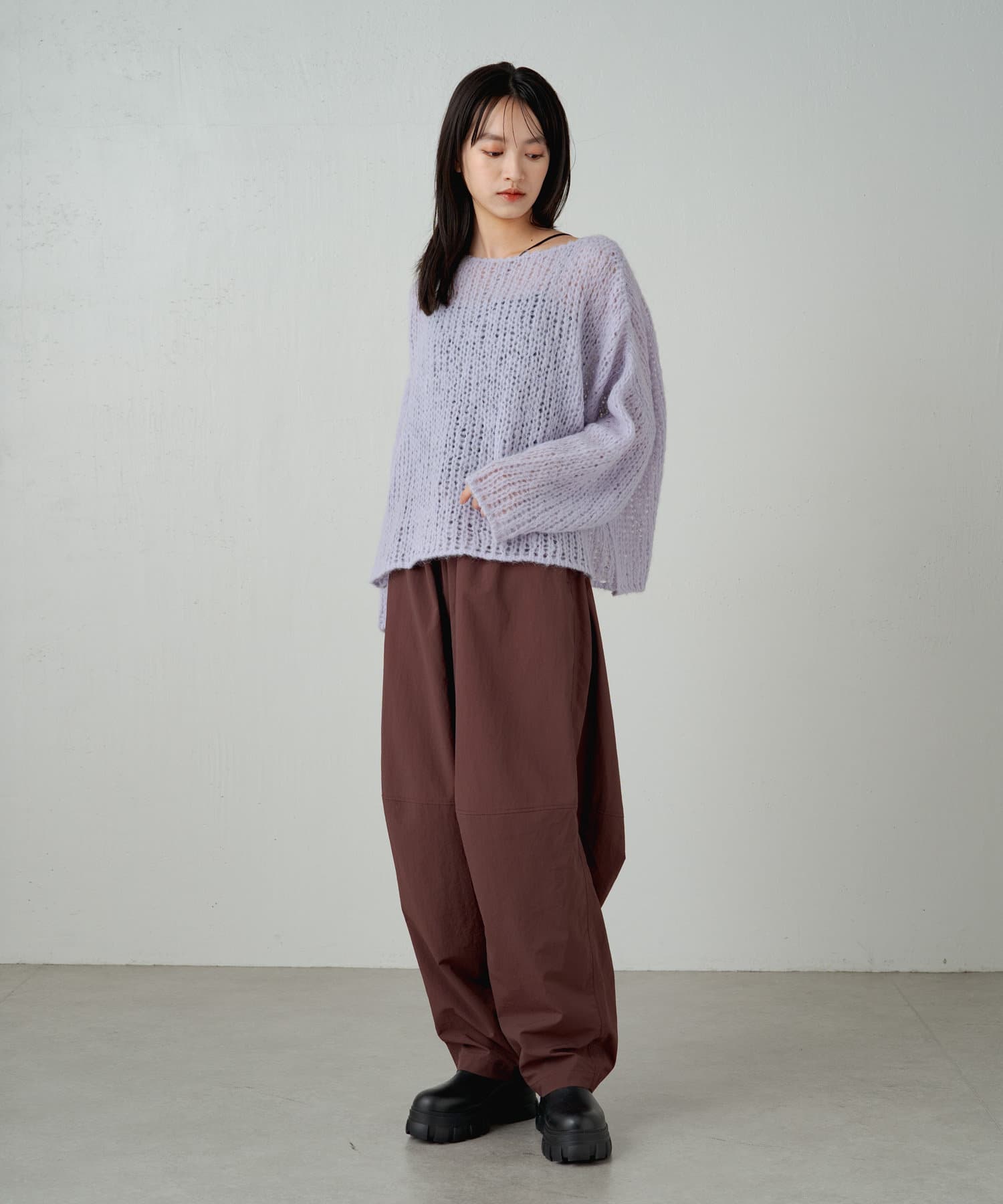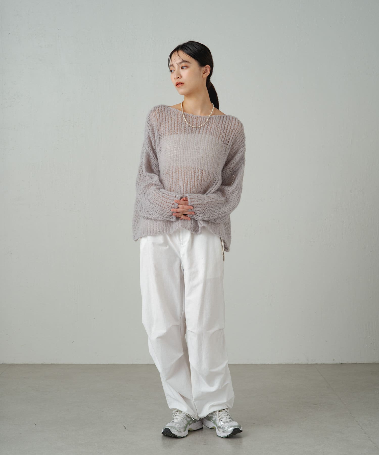・ゆったりとしたニットなのでキャミワンピースとの重ね着スタイリングも◎