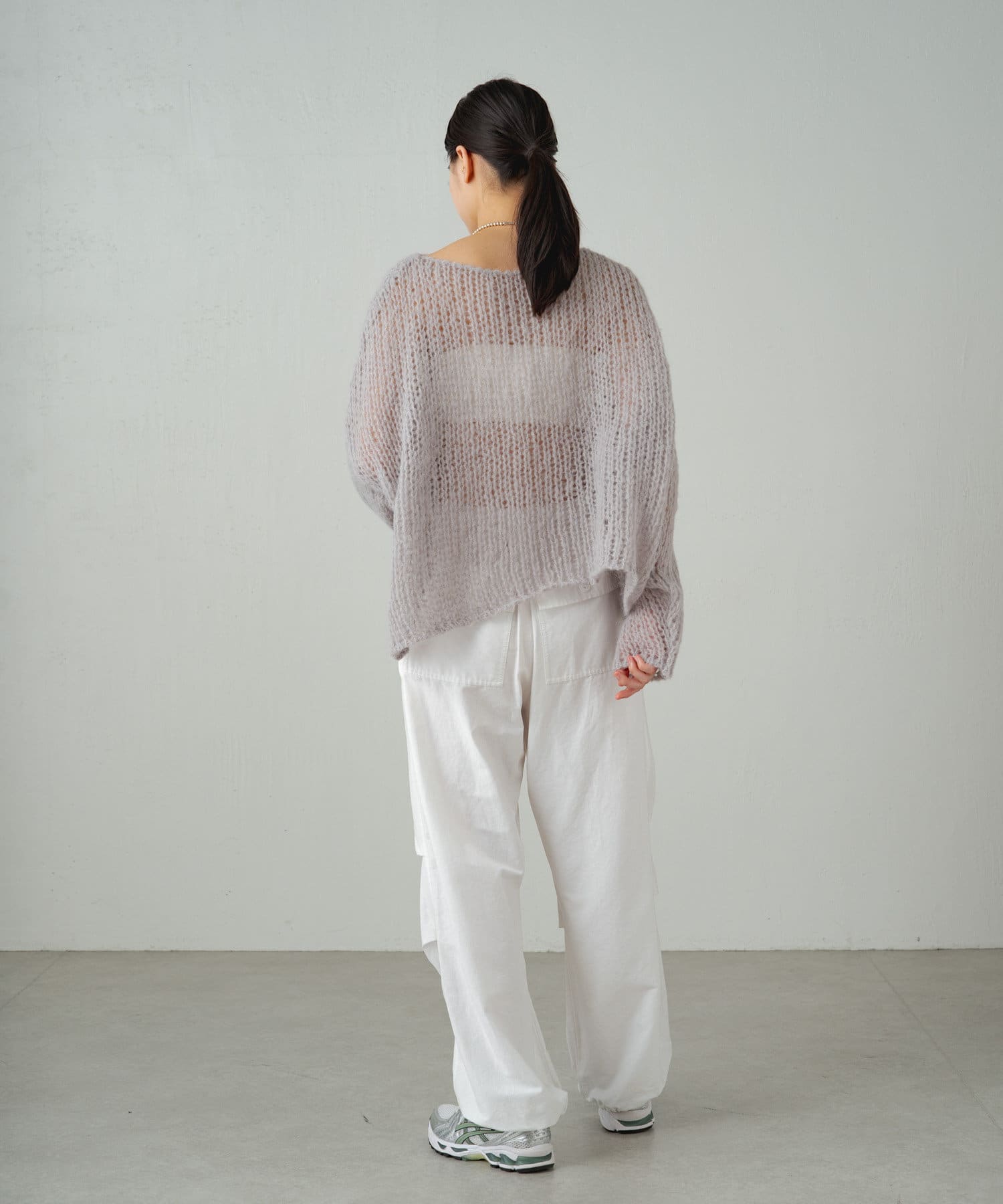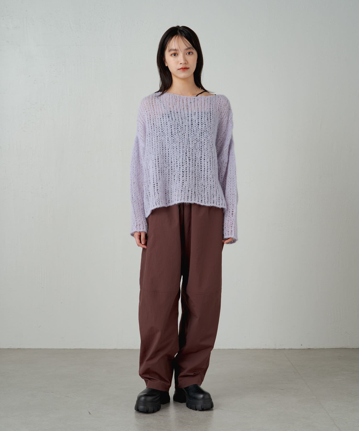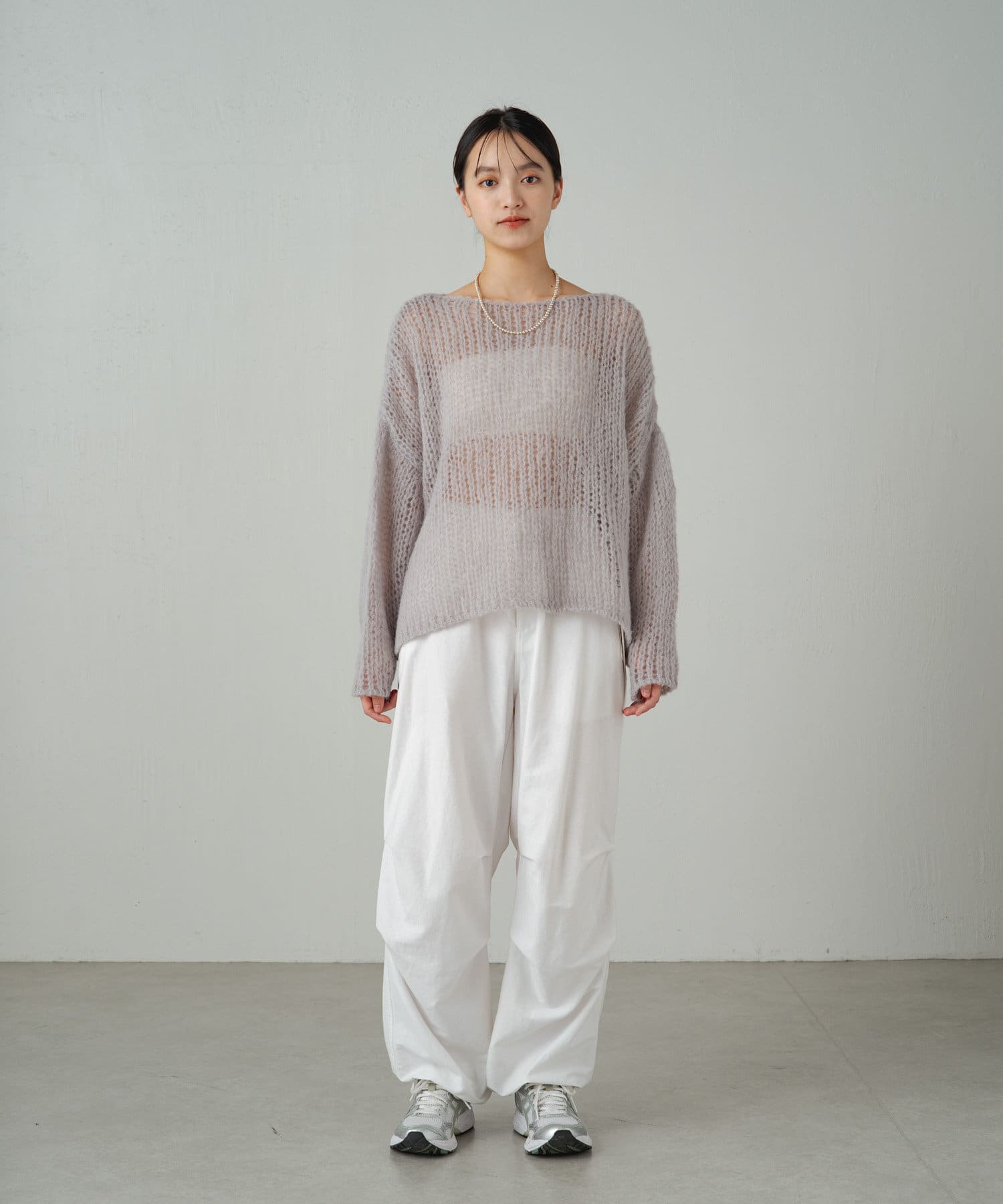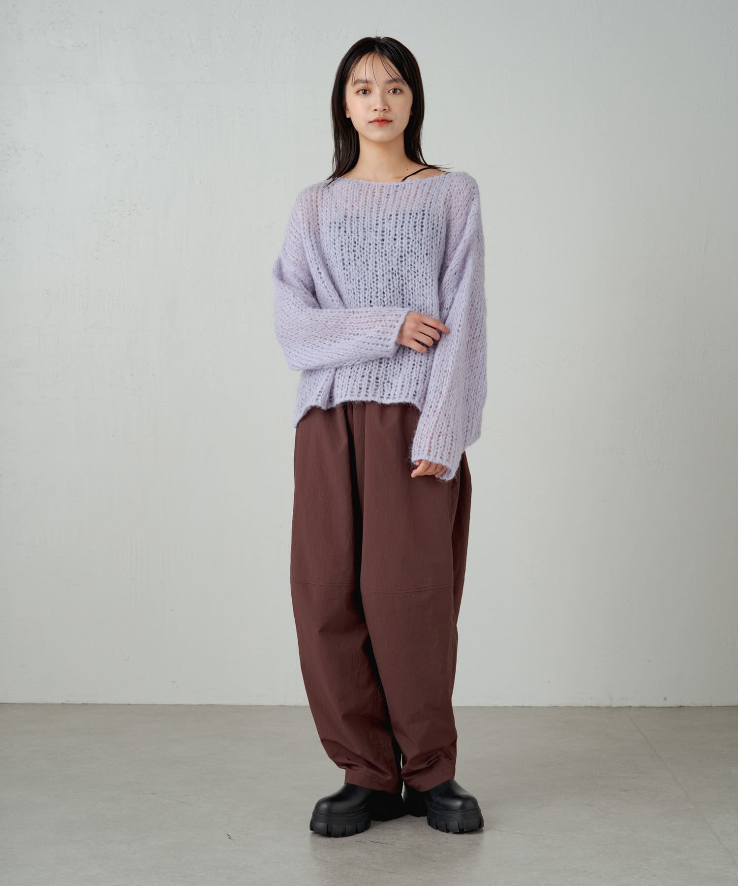 ・ゆったりとしたニットなのでキャミワンピースとの重ね着スタイリングも◎