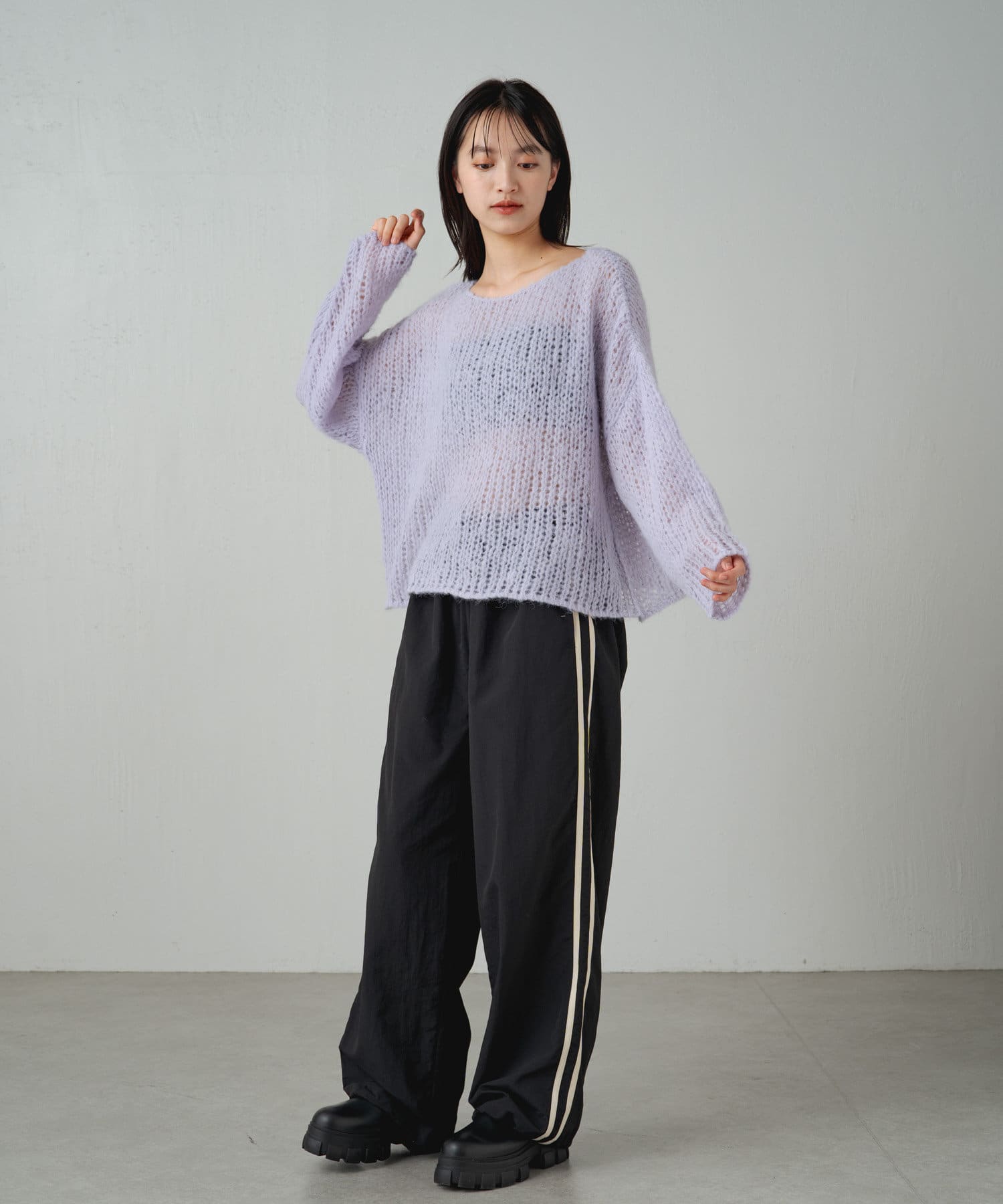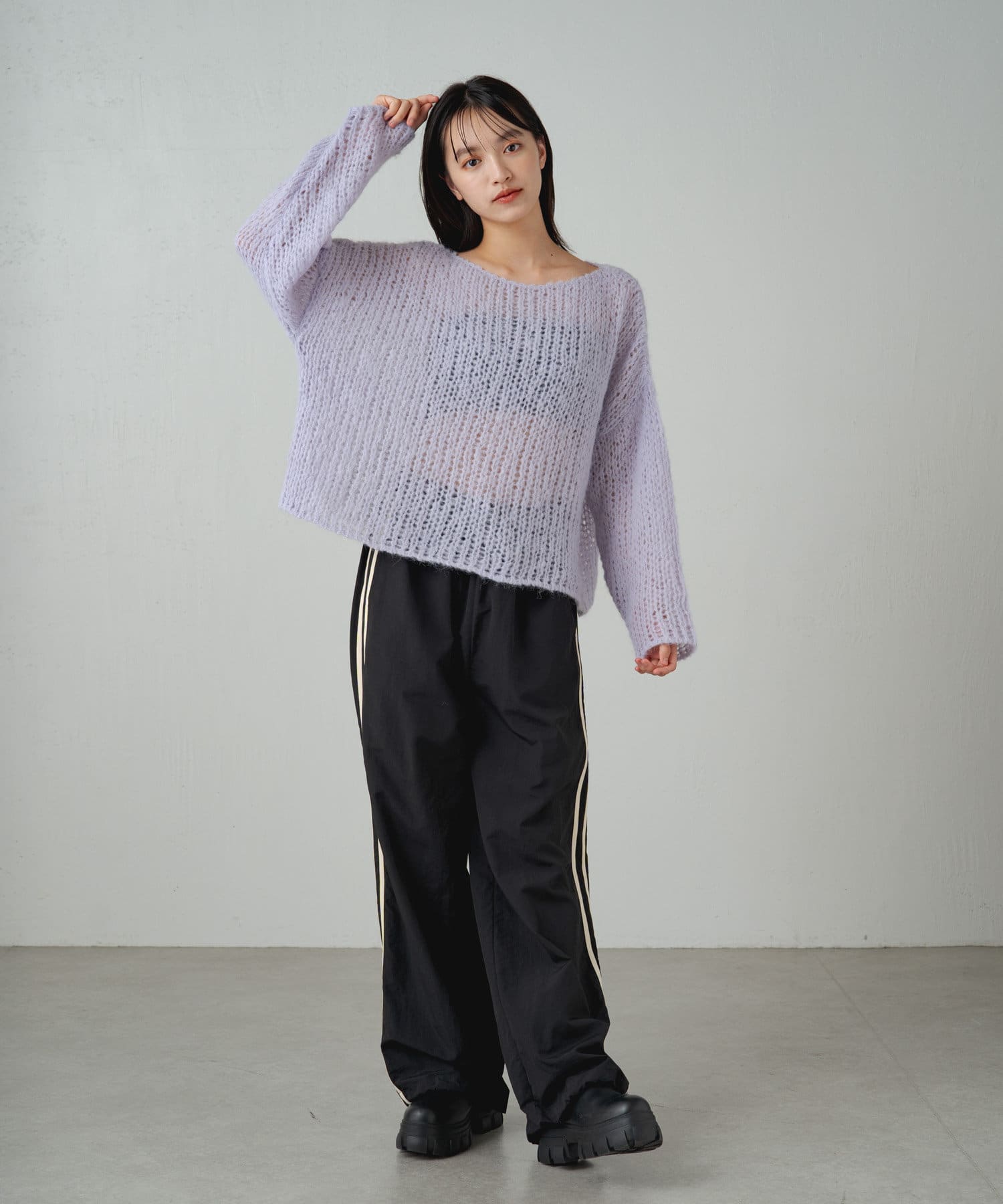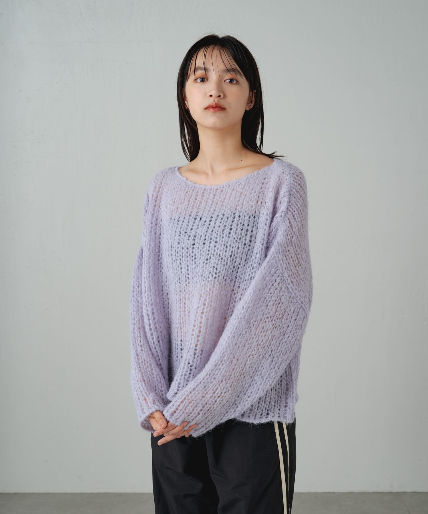 ・今期トレンドのざっくりとした手編み風のシアーニット