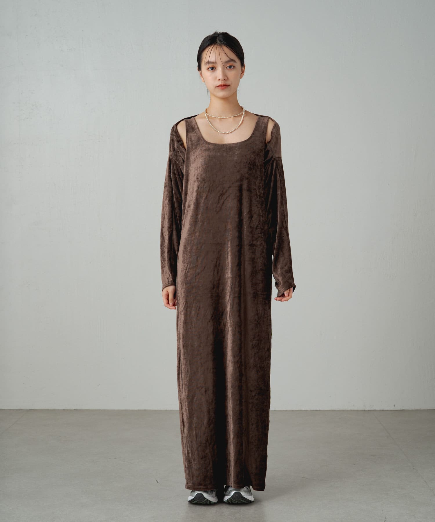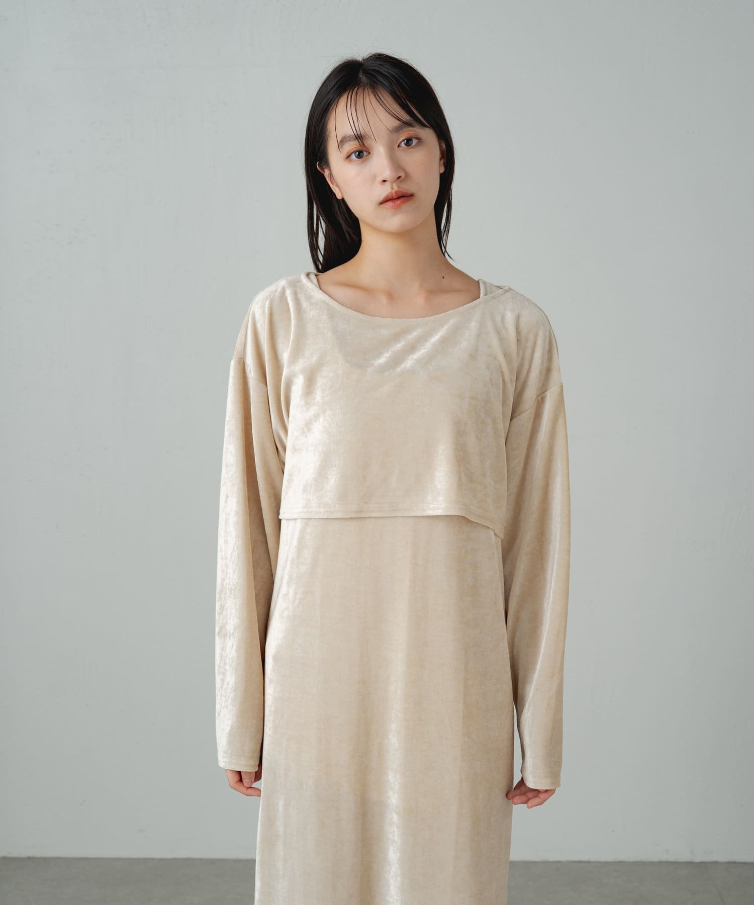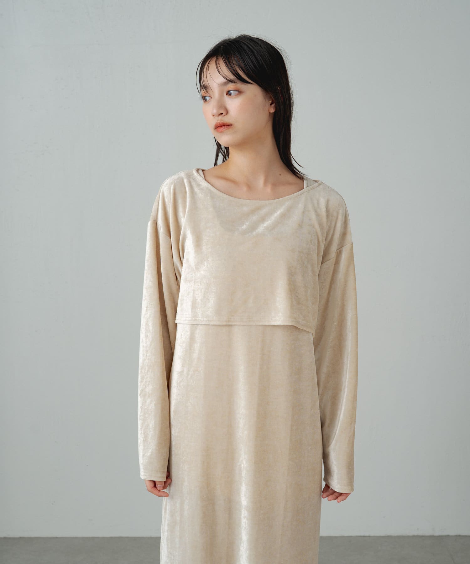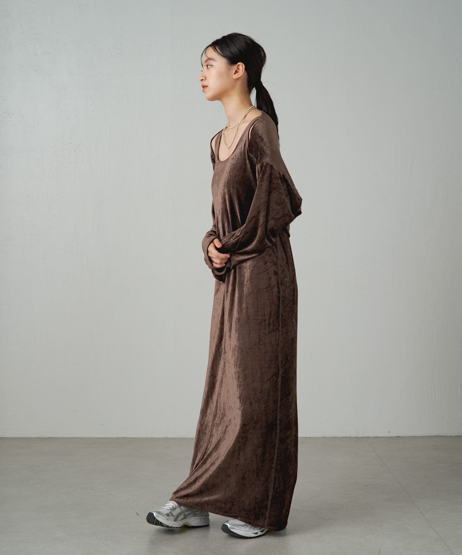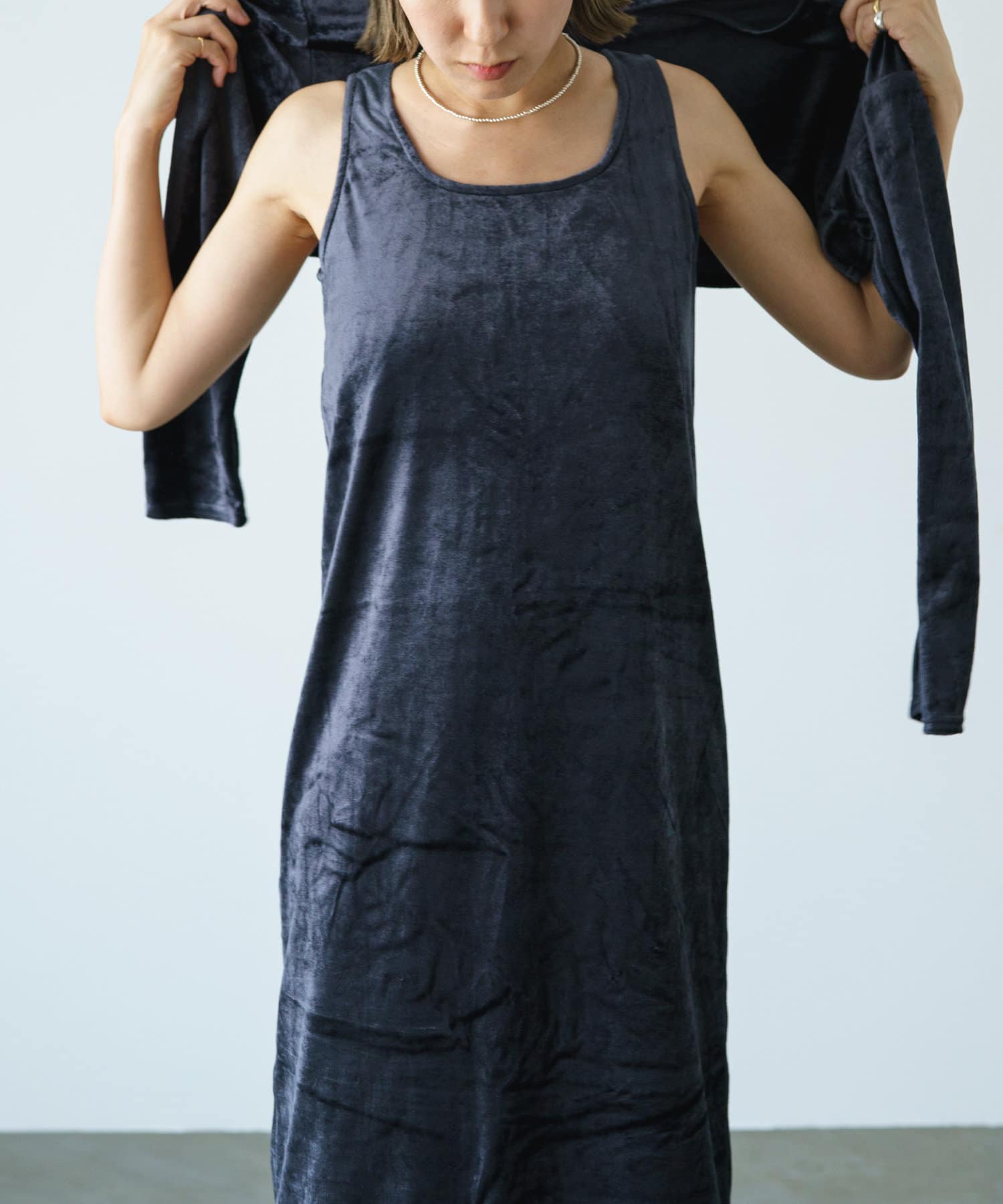 【earthy_】ベロアショートプルオーバータンクワンピセット