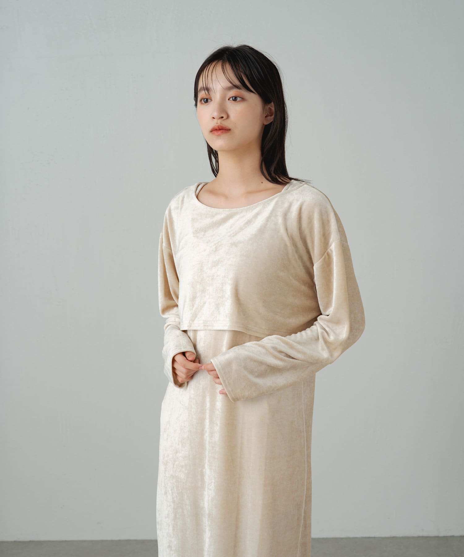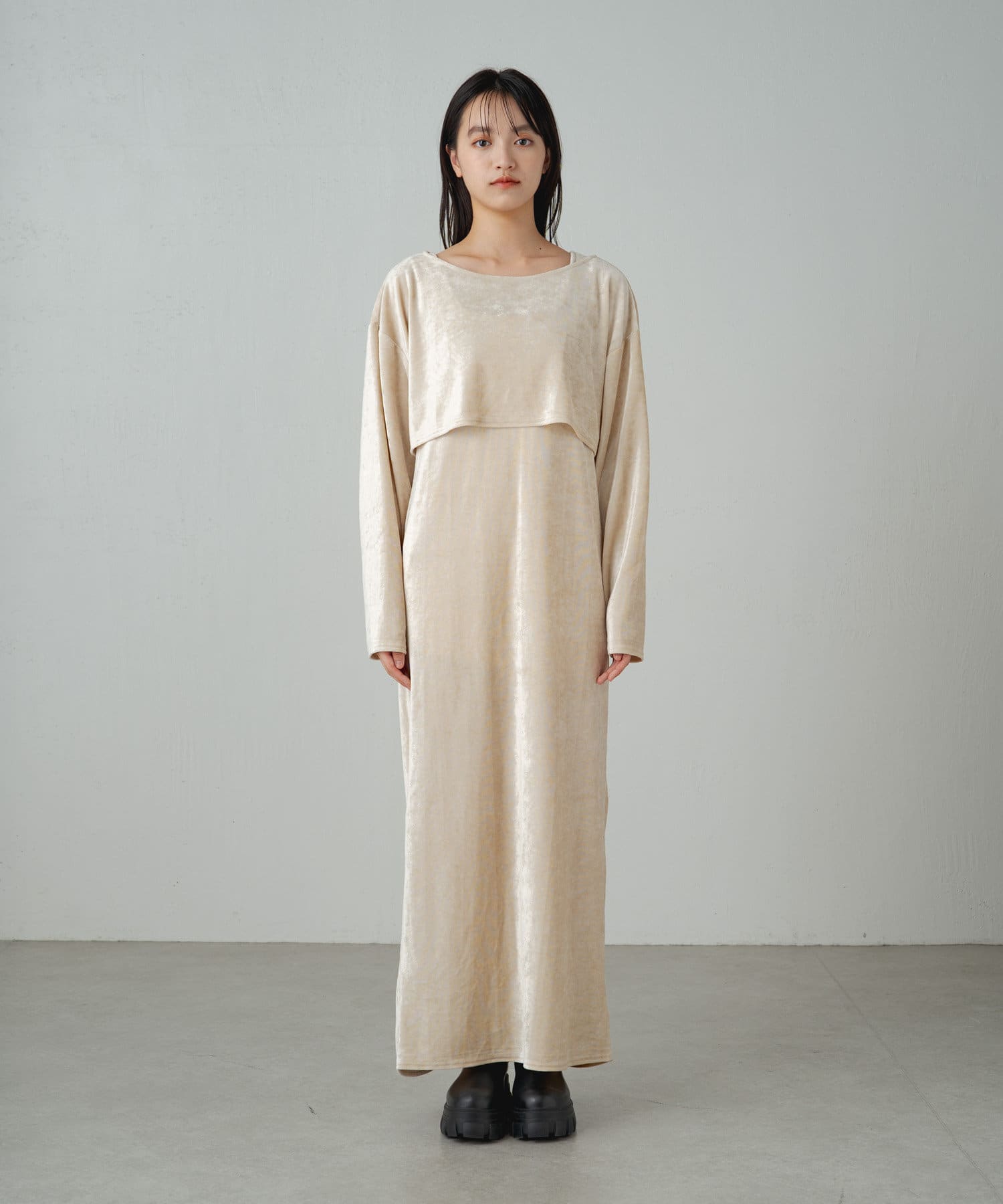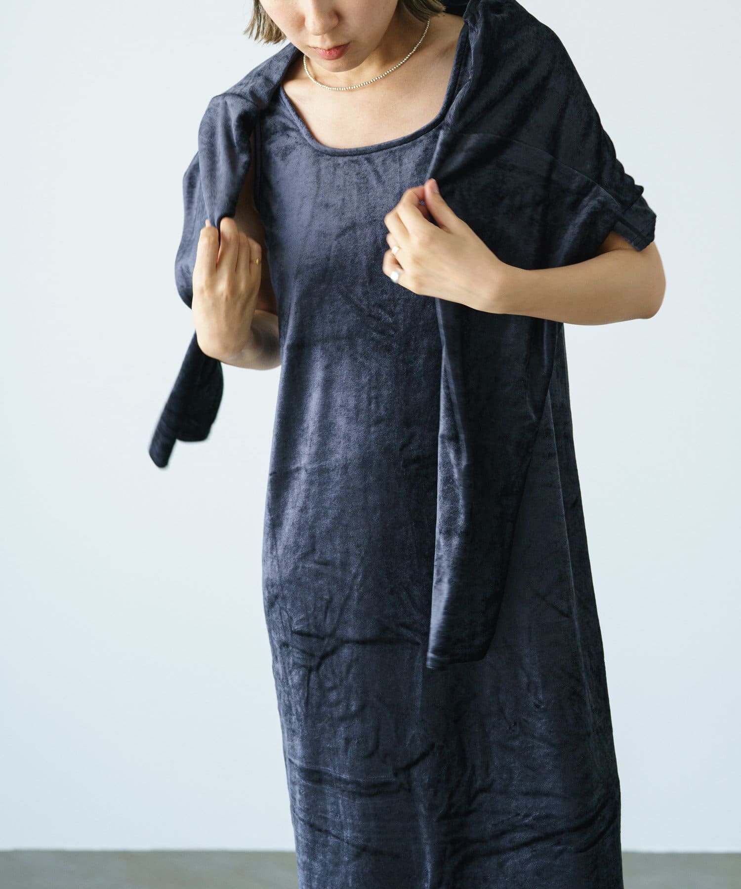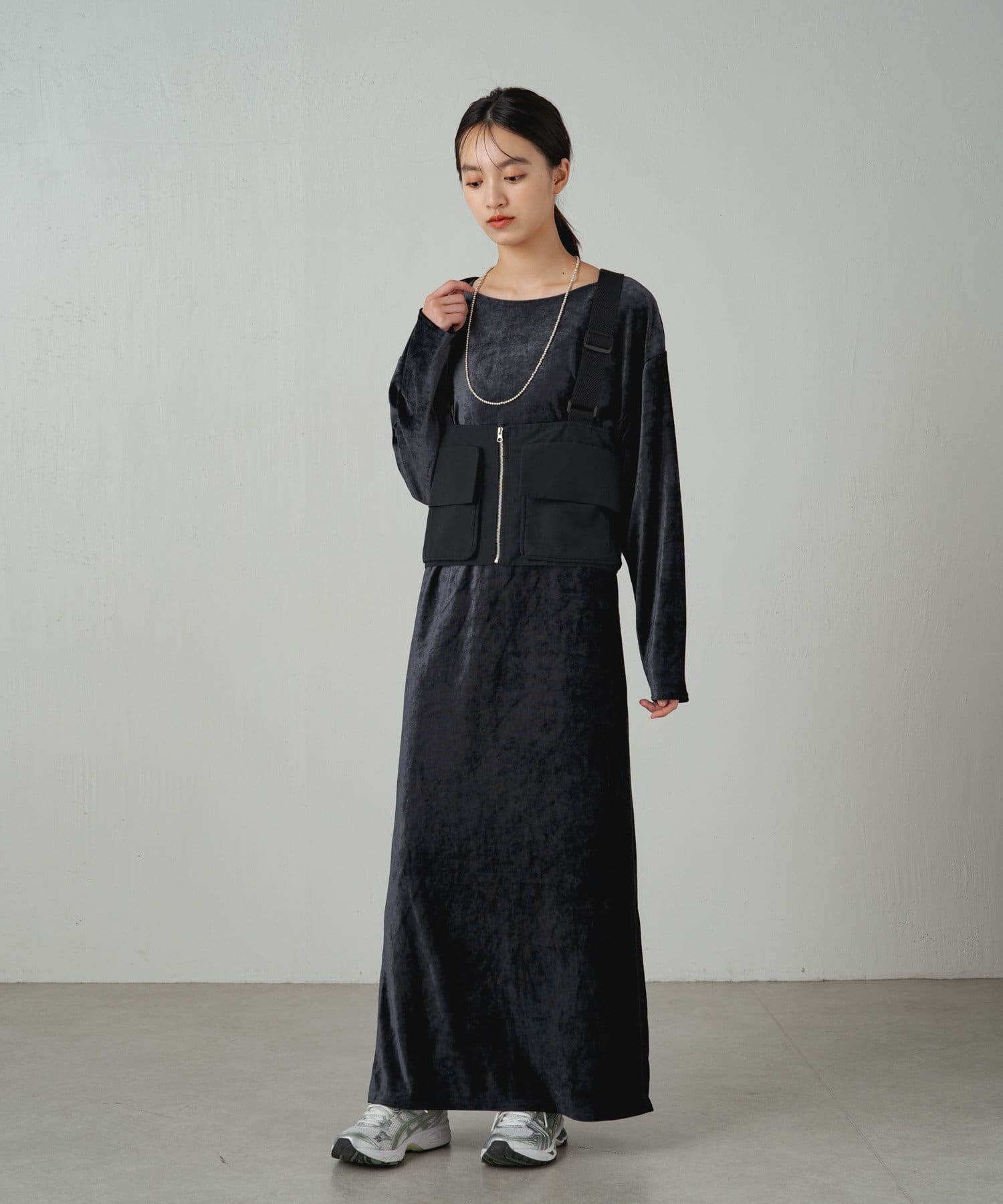 【earthy_】ベロアショートプルオーバータンクワンピセット