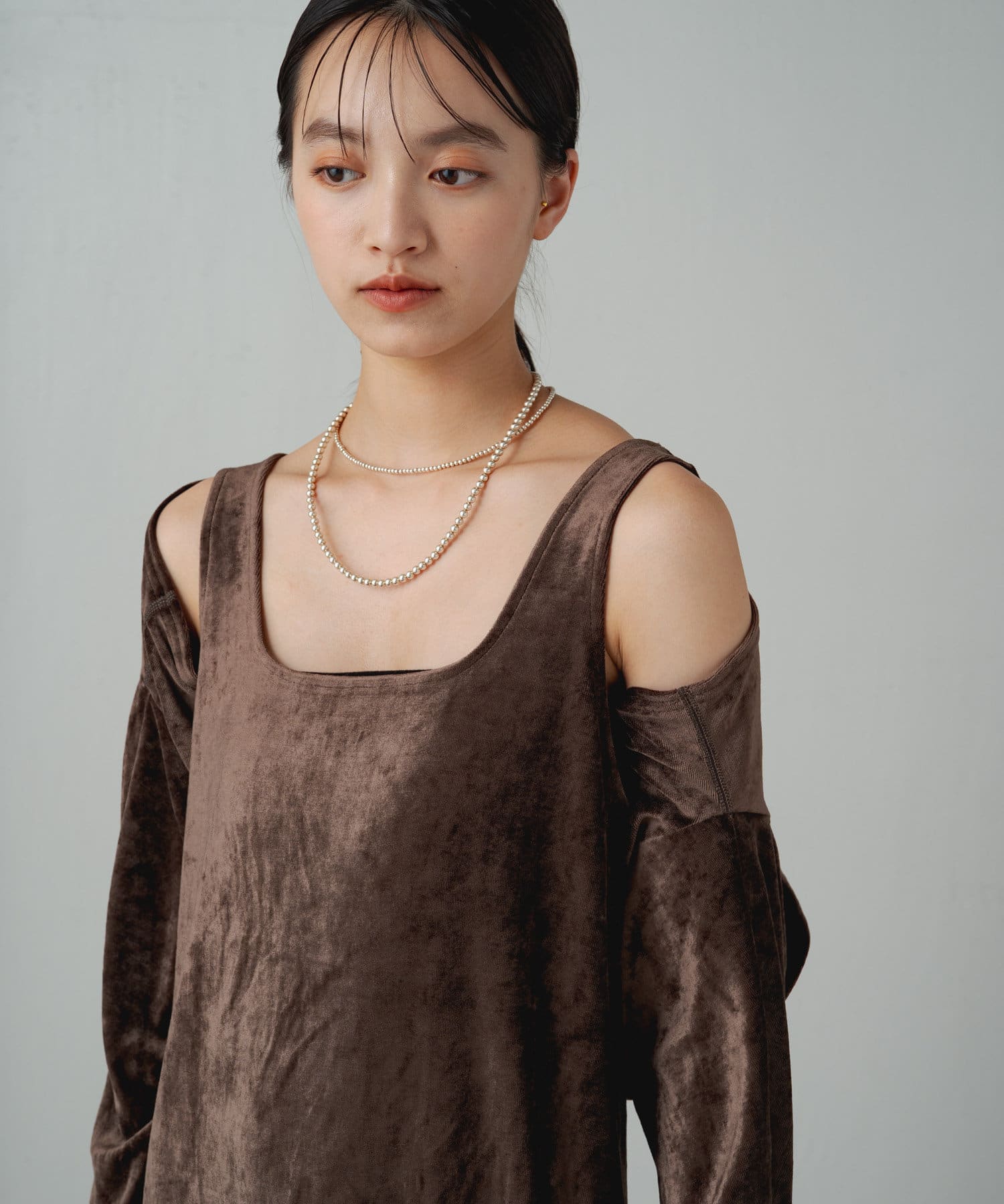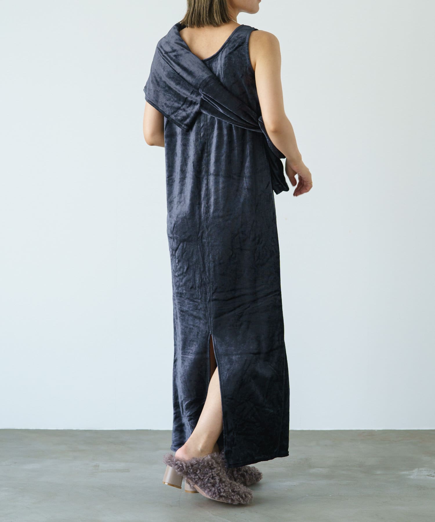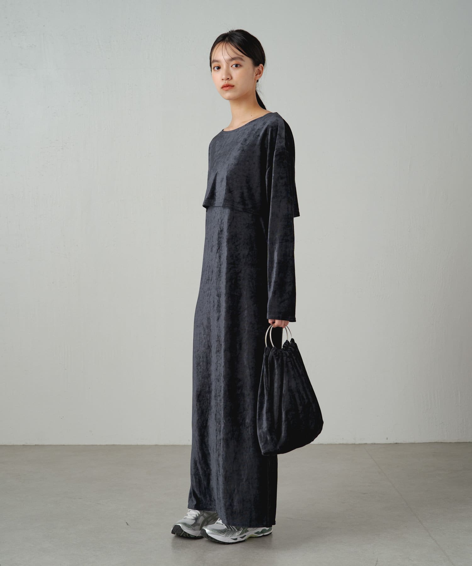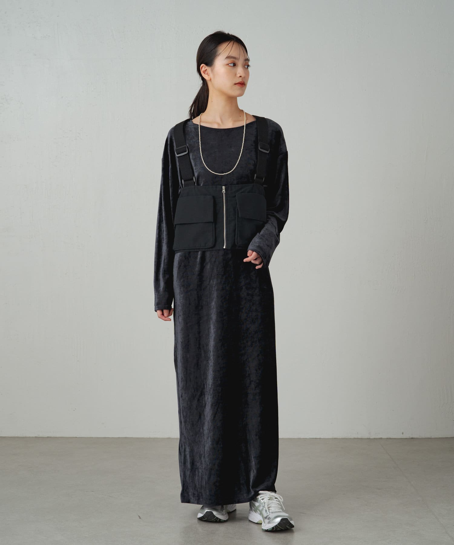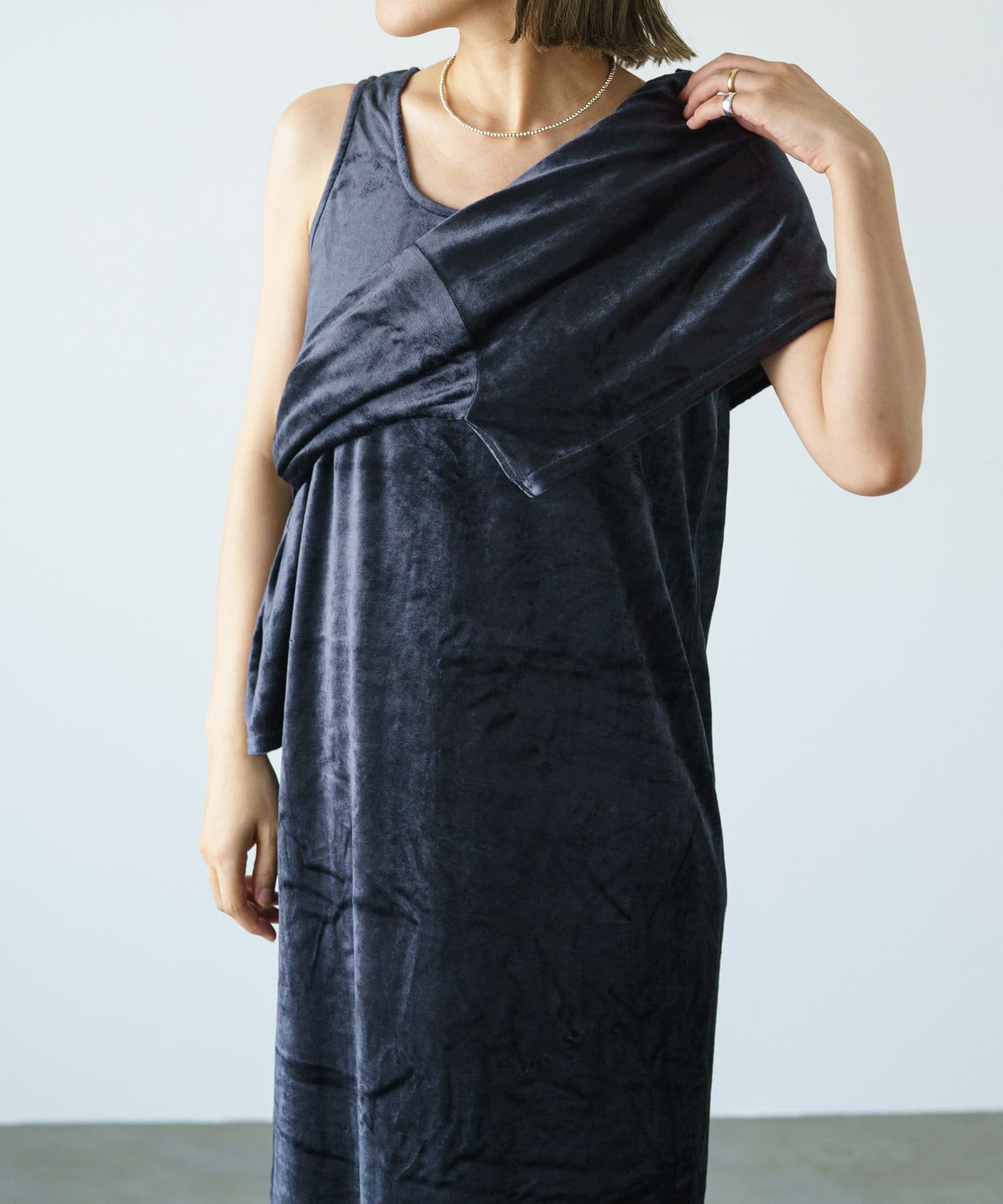 【earthy_】ベロアショートプルオーバータンクワンピセット