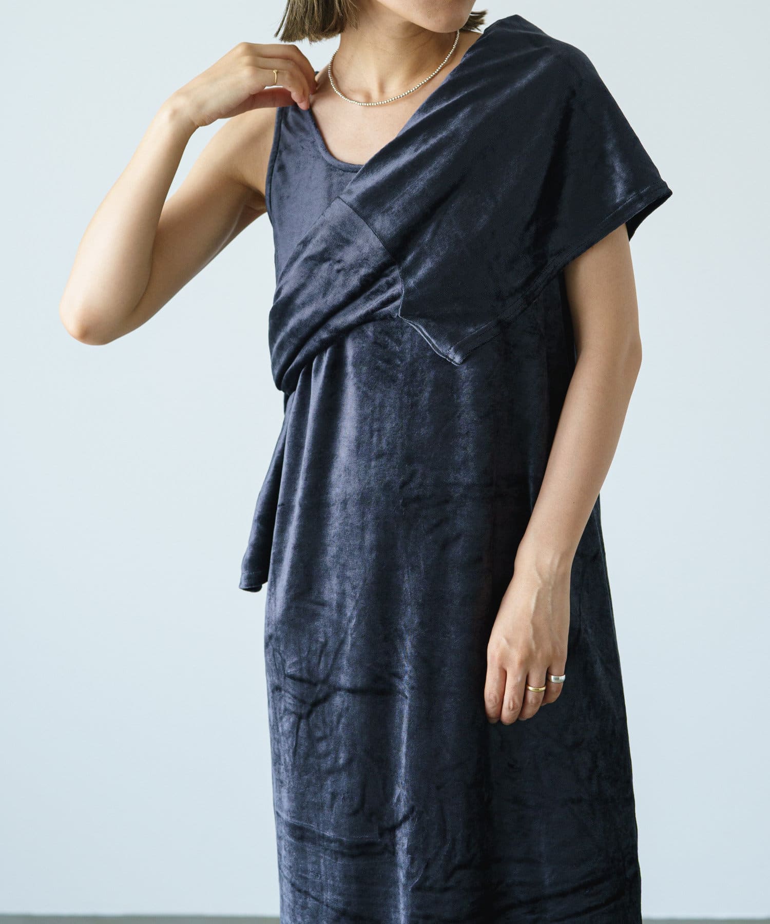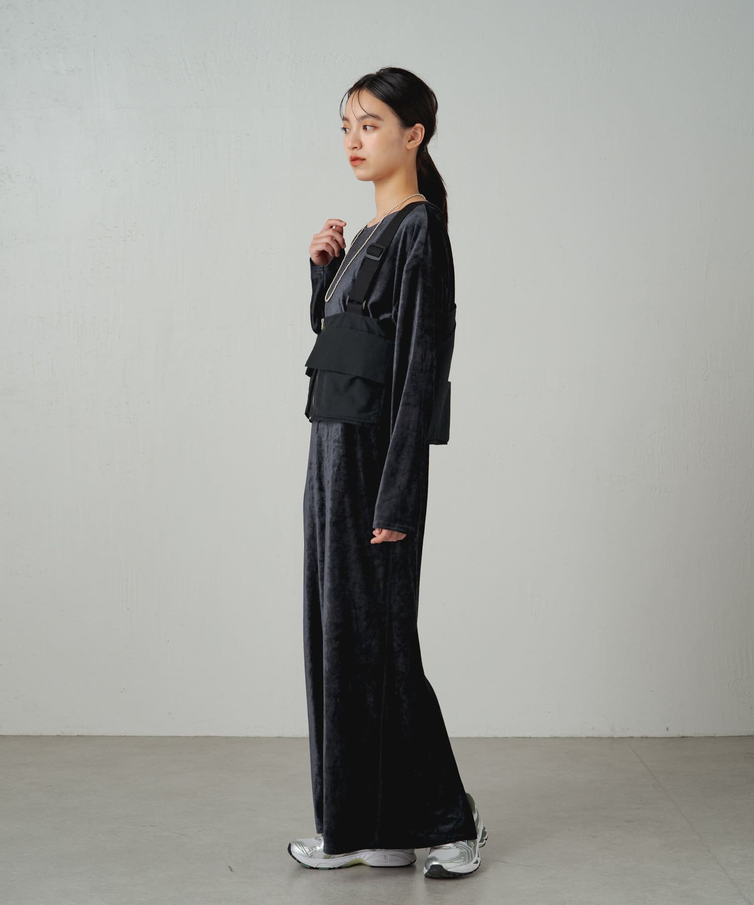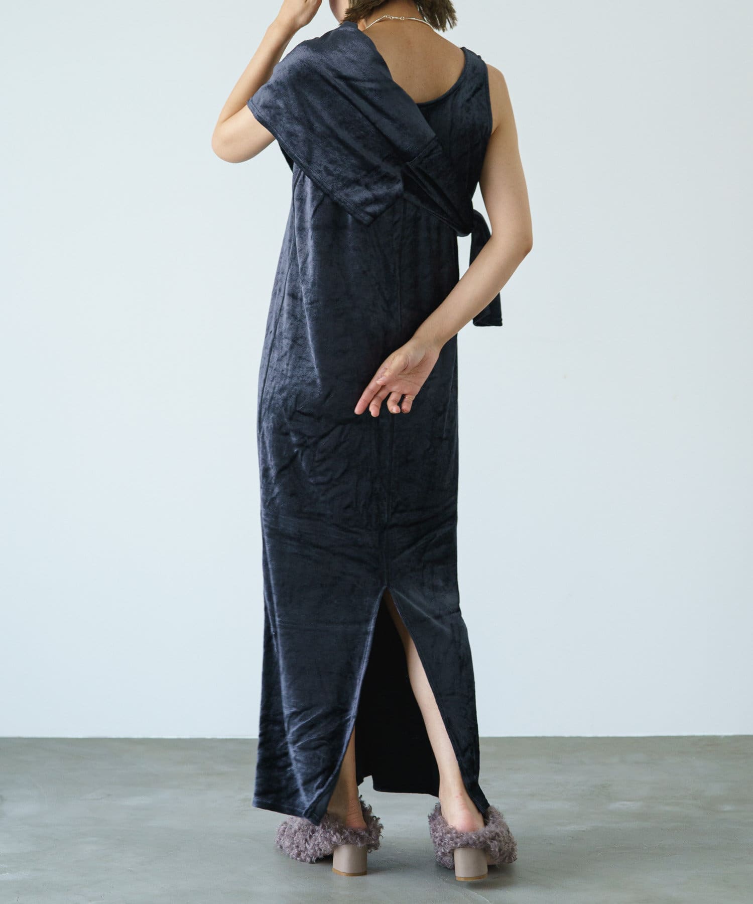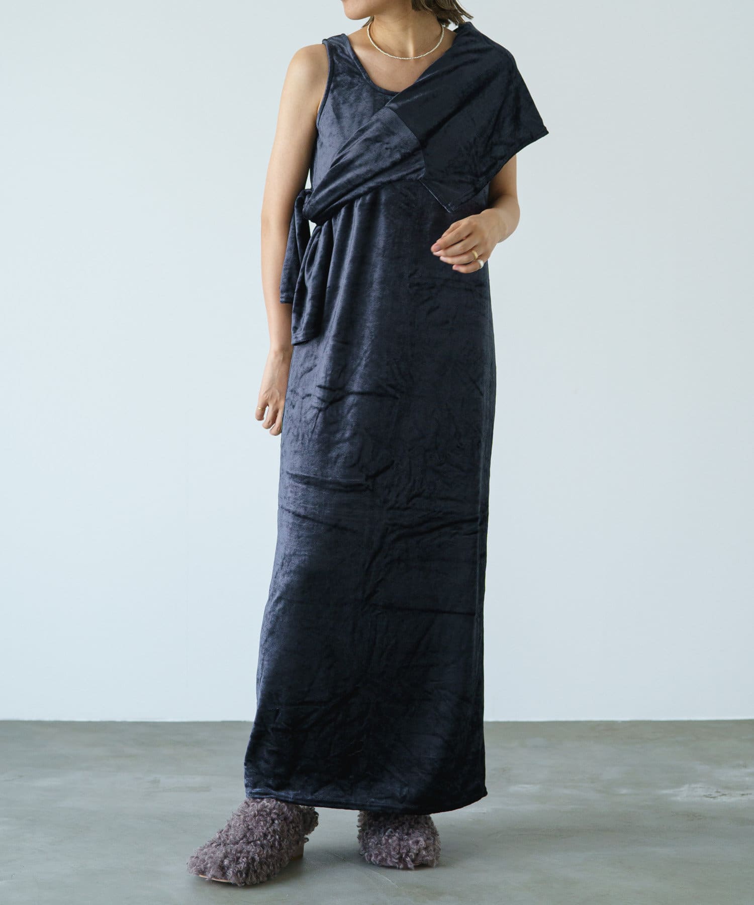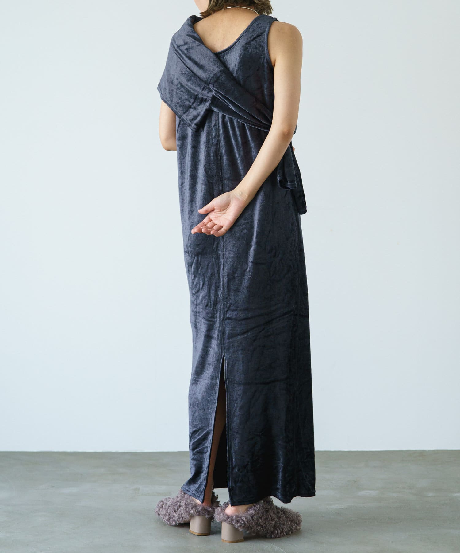 【earthy_】ベロアショートプルオーバータンクワンピセット