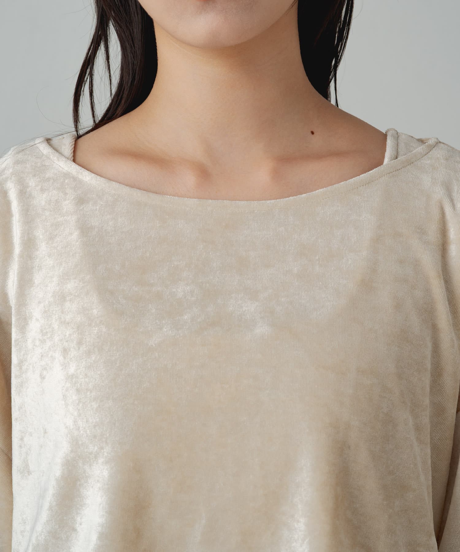 ・柔らかいベロア素材なので、ストレスフリーな着心地です。