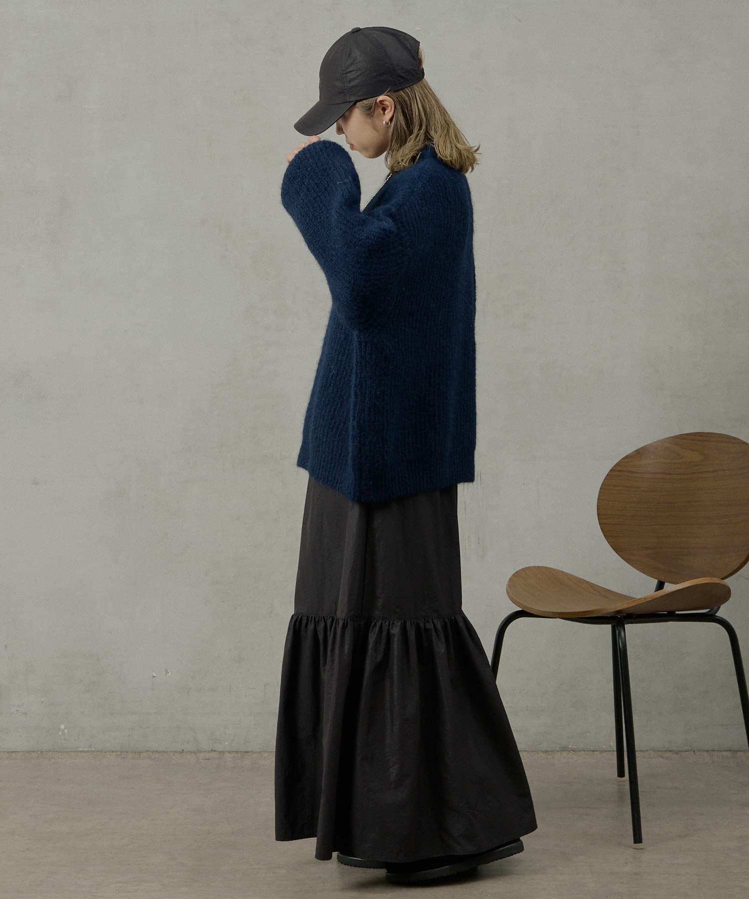 ・ボリュームのあるデザインながら、縦にスッキリ見えるデザインのため、ニットの着膨れが心配な方にもお勧め
