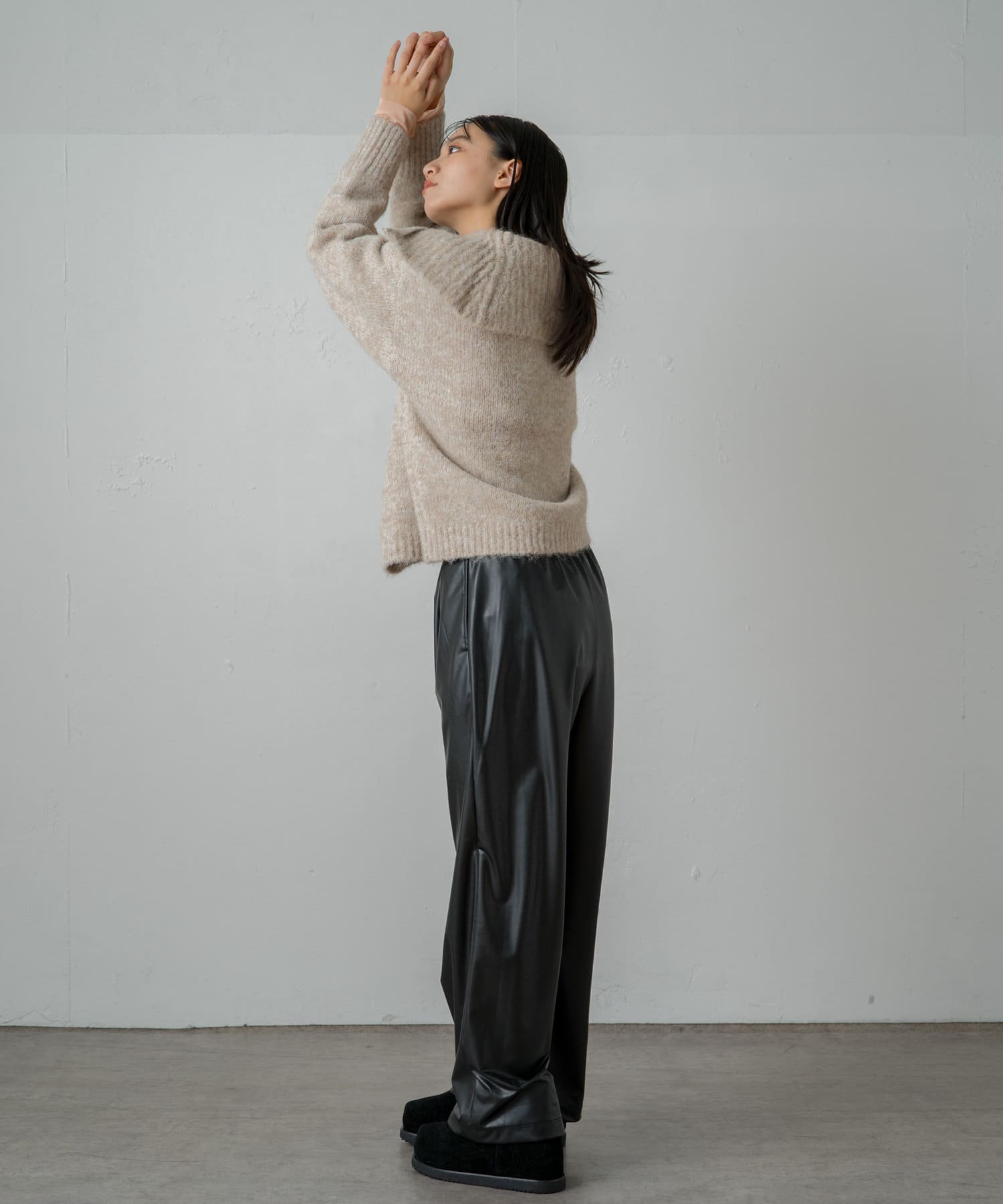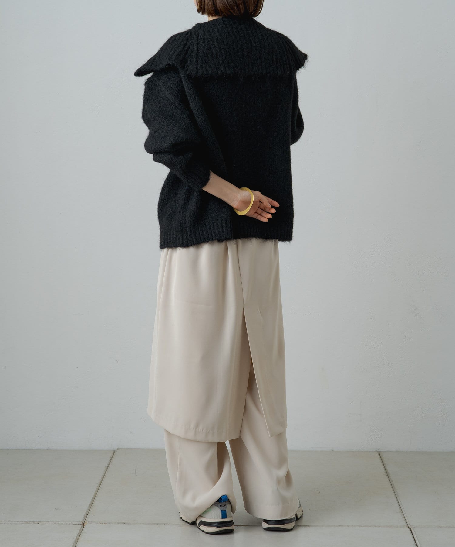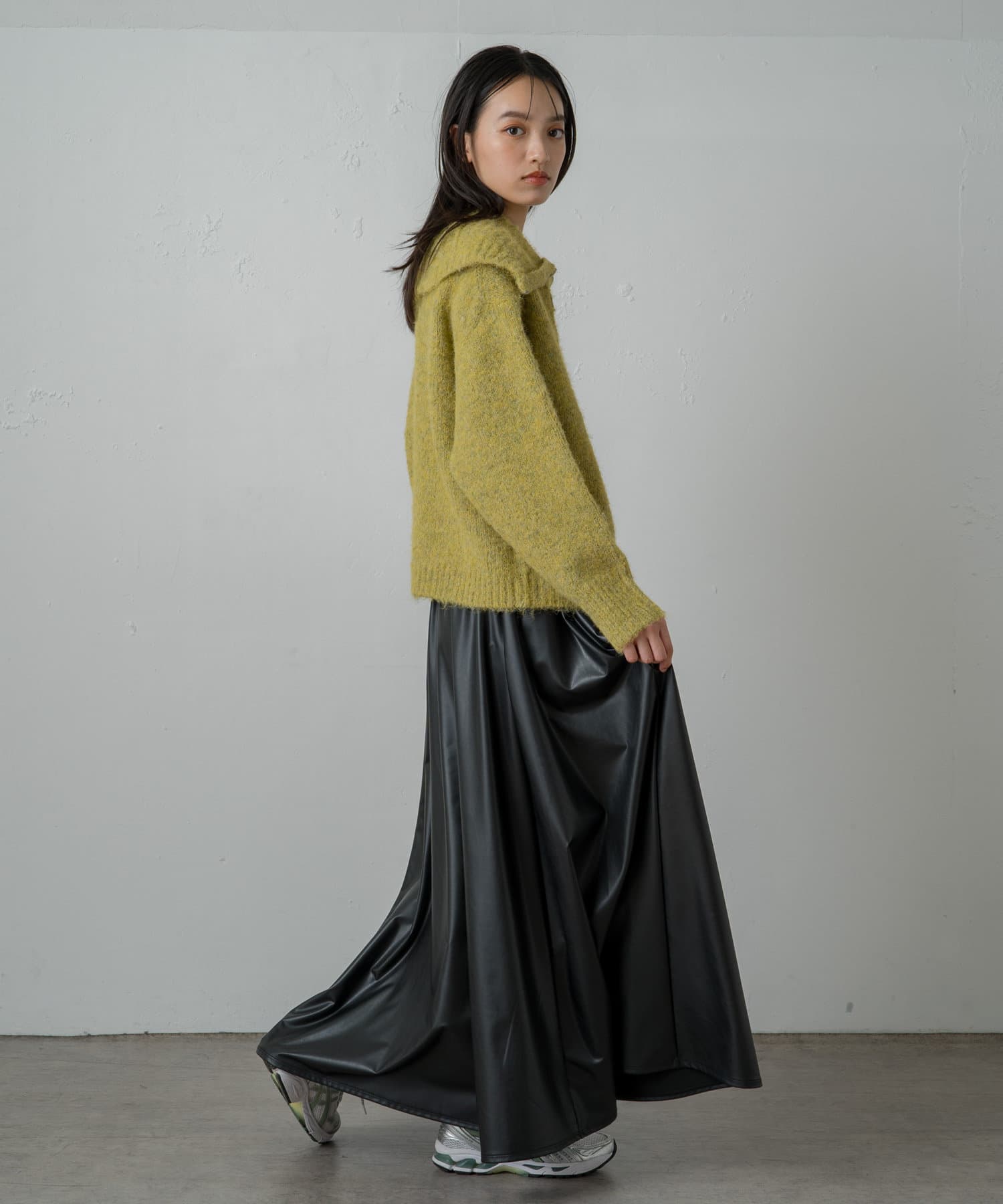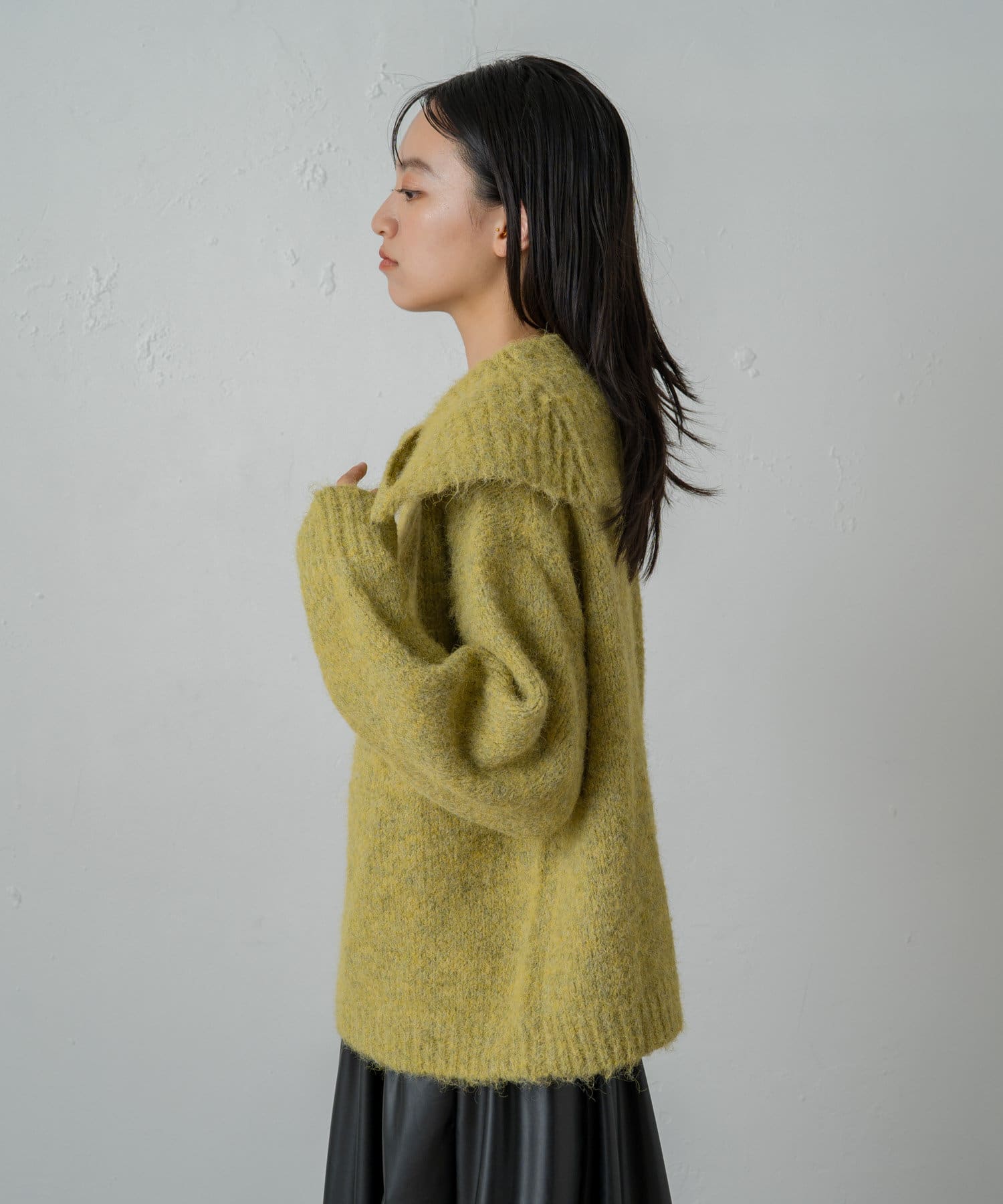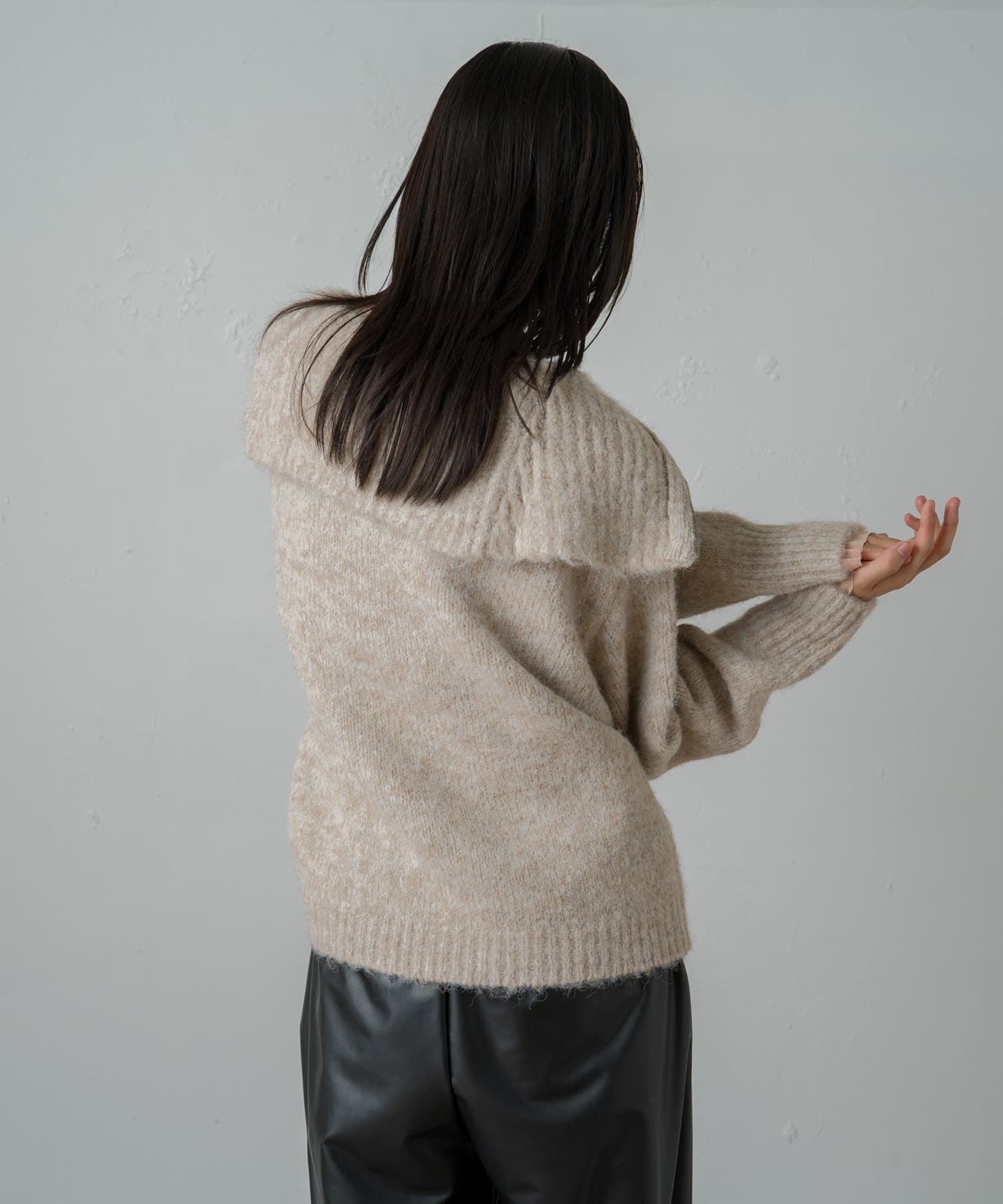 大きめの襟周りは小顔効果を高めてくれるポイント!
