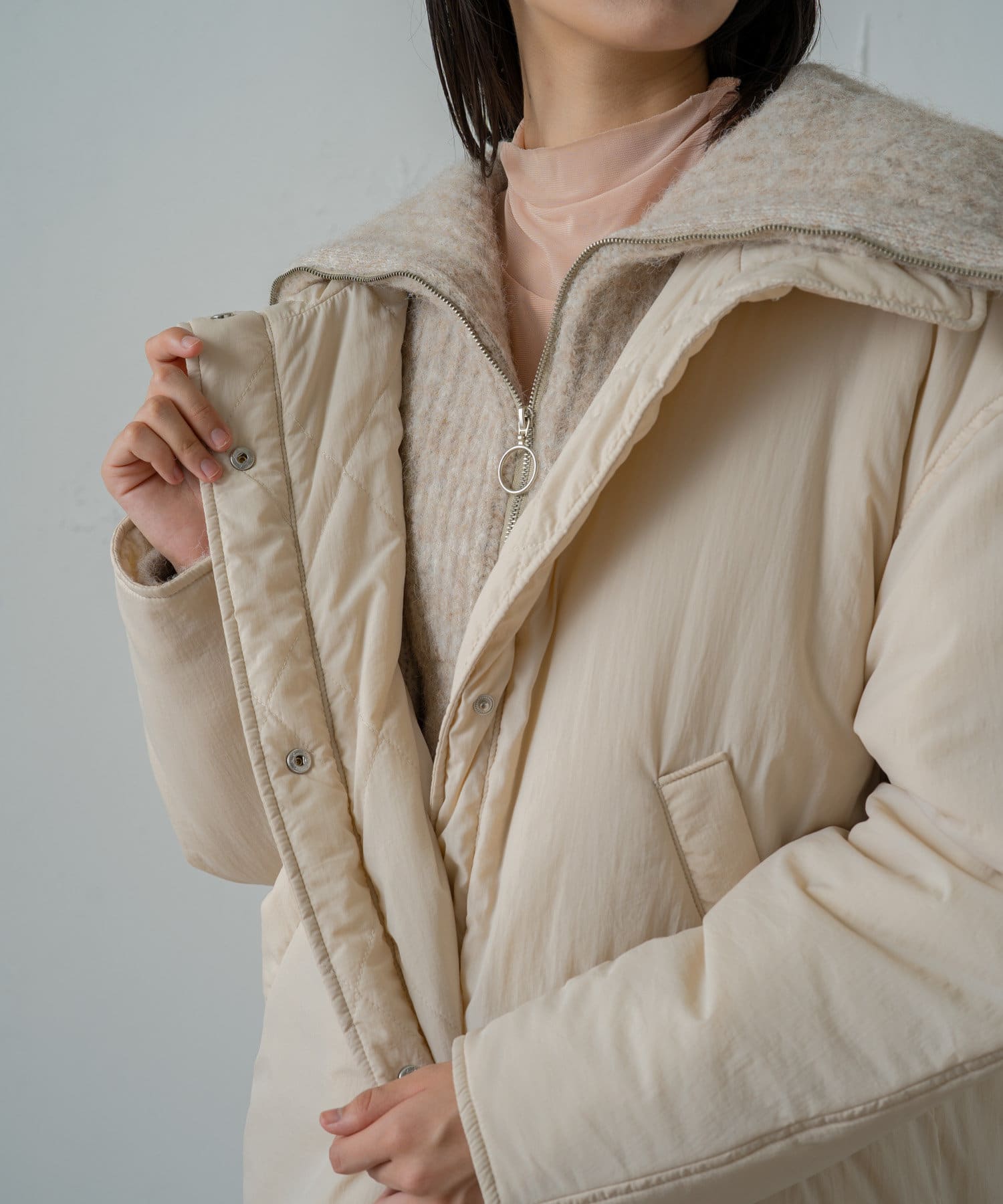 ハーフジップで首もとを上まで閉めたり出来て暖かく着用できます。